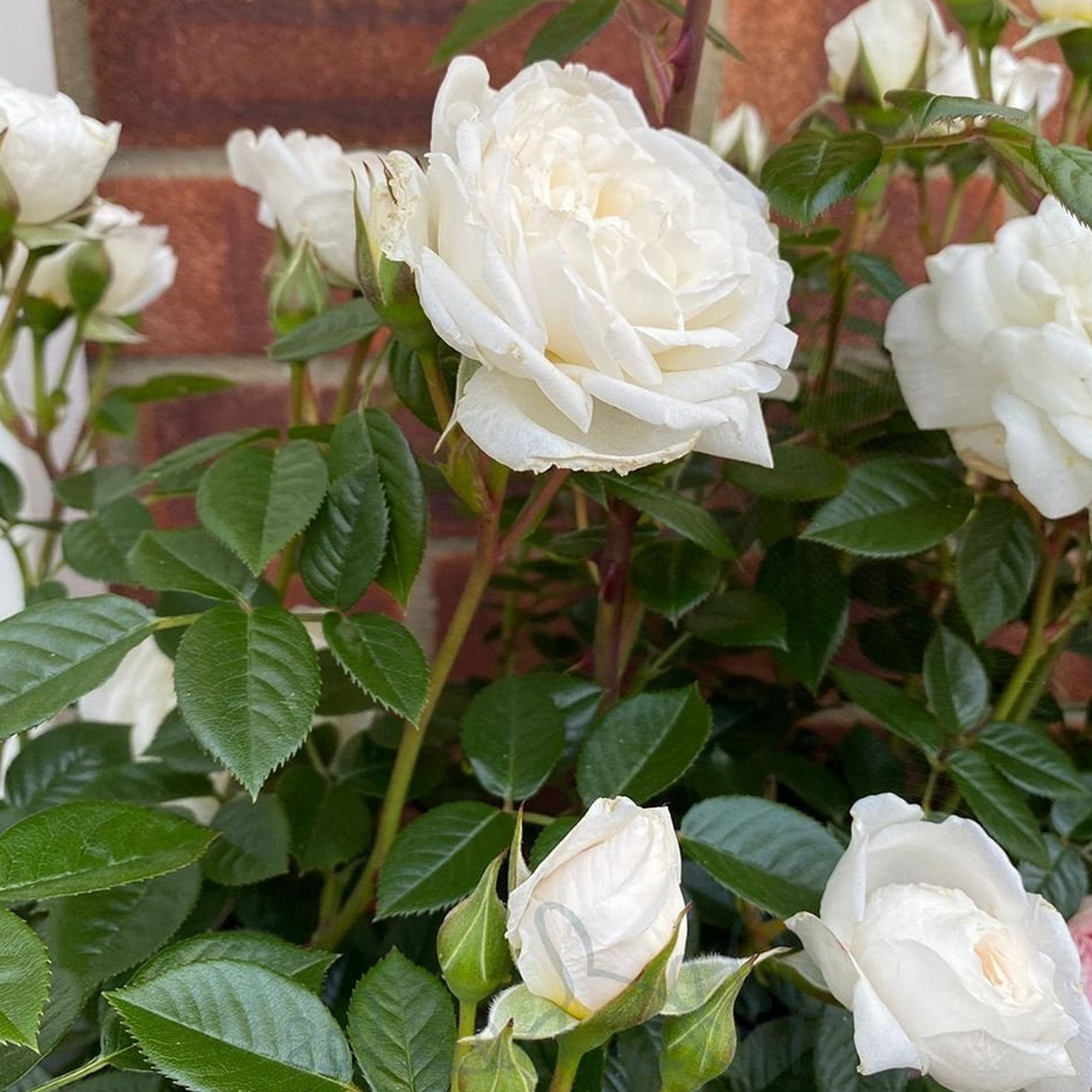 Glossy dark-green leaves emerge in spring, providing the perfect backdrop for the clusters of small double roses that bloom in summer. Appearing as early as June and repeat-flowering into September, the eye-catching white roses are lightly scented and will be the envy of your neighbours all summer long.