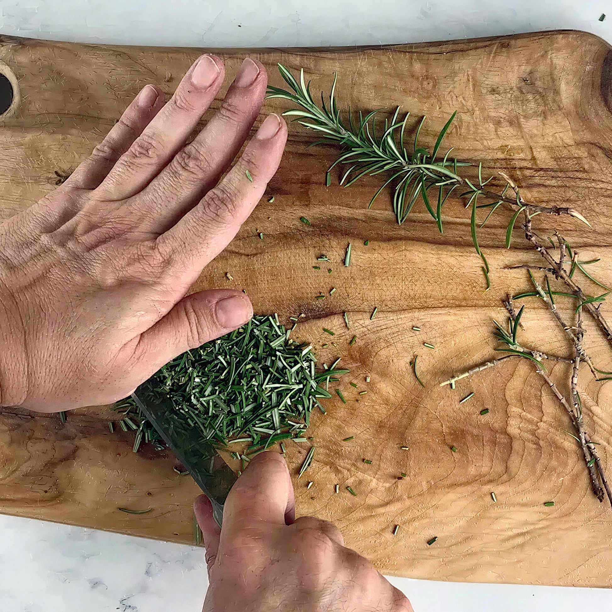 A sun-loving perennial whose scent evokes the Mediterranean, rosemary has needle-like leaves that can be picked all year round. Fresh or dried leaves can be used to flavour meat, soups and many other dishes, while sprigs steeped in olive oil give it a distinctive flavour. Tea made by infusing chopped leaves in boiling water helps digestion.