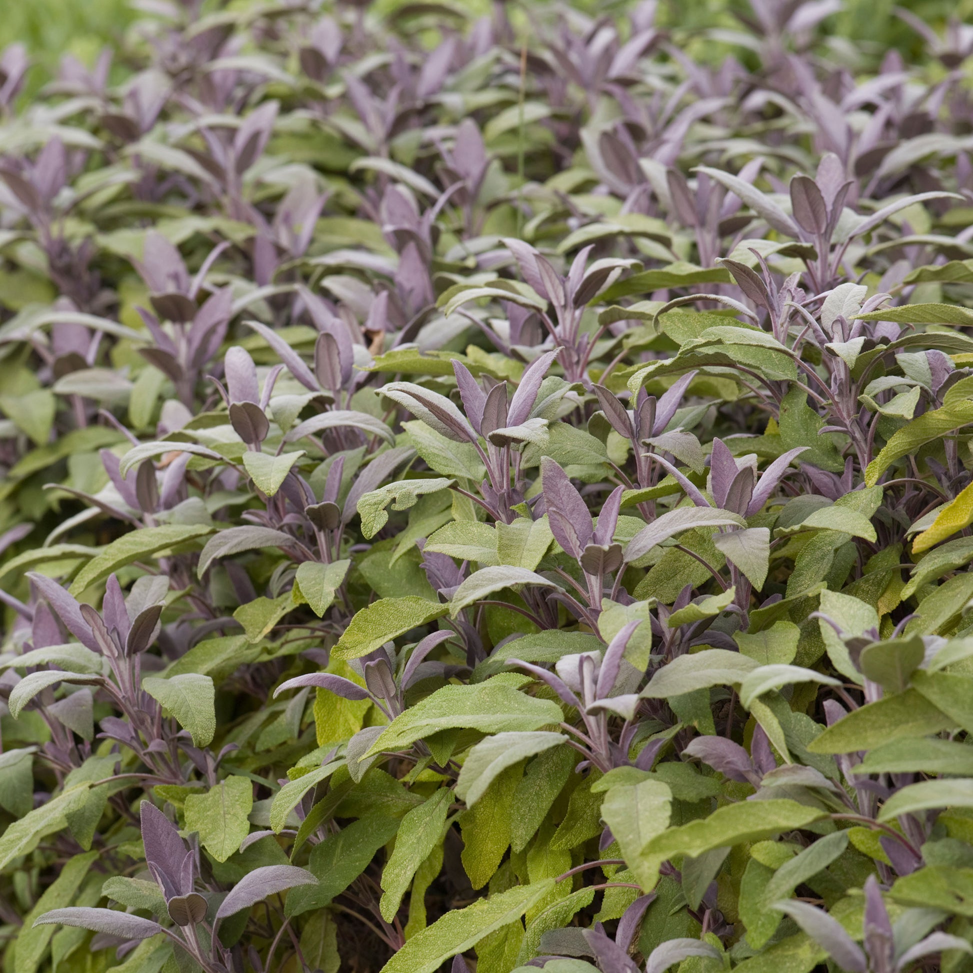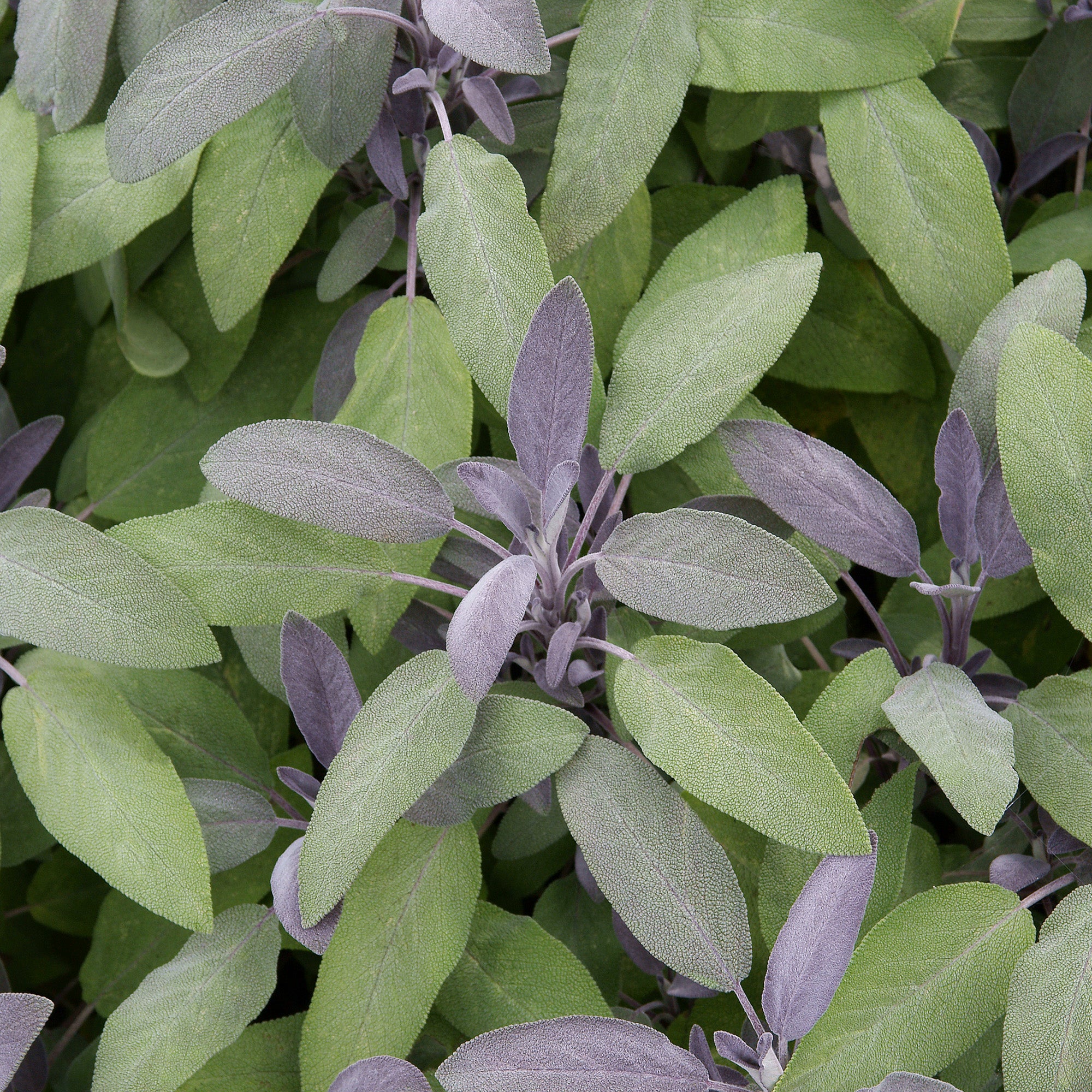Salvia Officinalis Purpurea is a low-maintenance sub shrub boasting aromatic oblong foliage with a fuzzy texture. Young leaves are flushed with purple, turning grey-green as they mature. Terminal racemes of small blue-purple flowers bloom in summer, crowning the plant in colour.