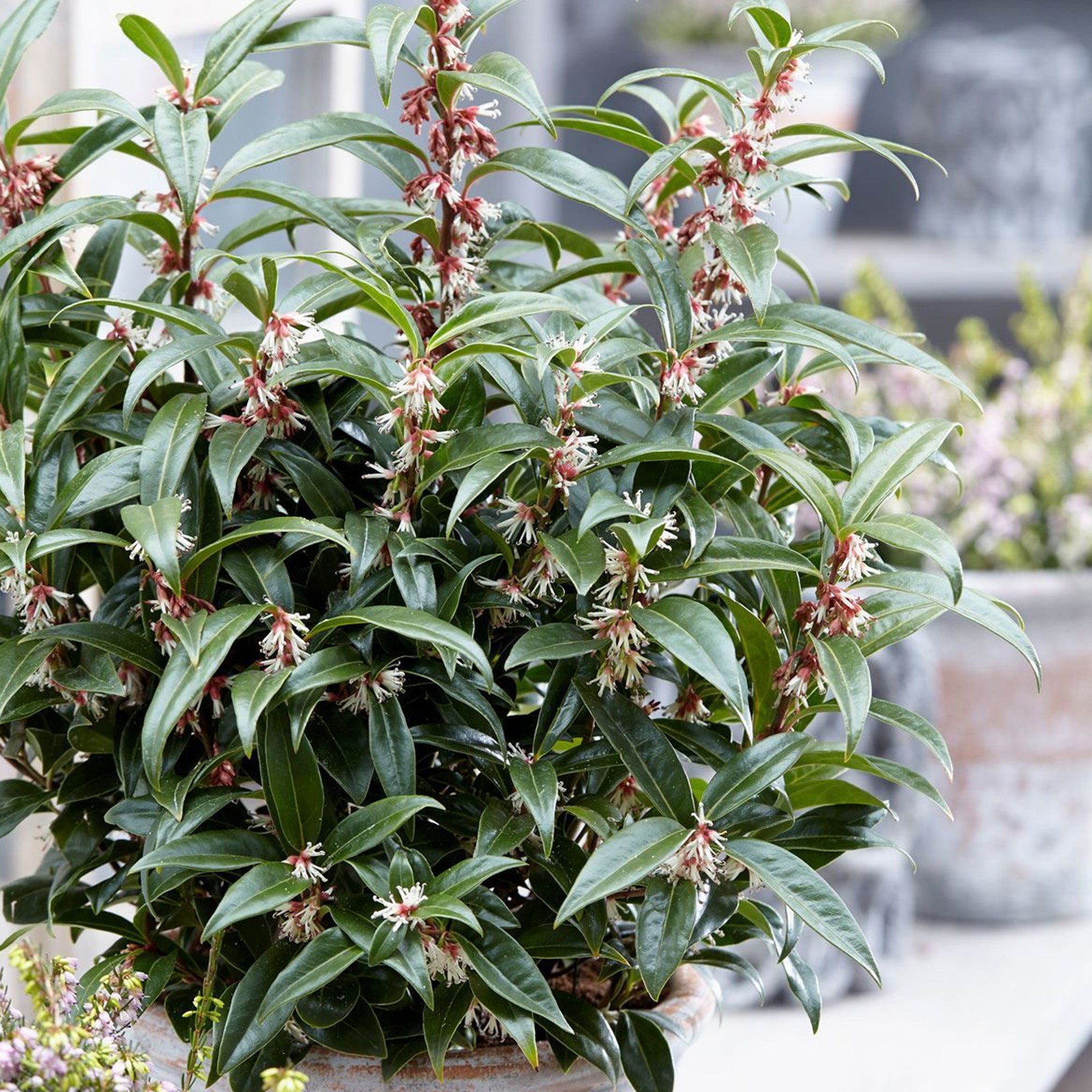 Plant Sarcococca in well-draining, moist soil in a partially shaded or shaded spot. Dig a hole twice as wide as the root ball, place the plant, and cover with soil. Space them 60-90cm apart to allow for spreading.