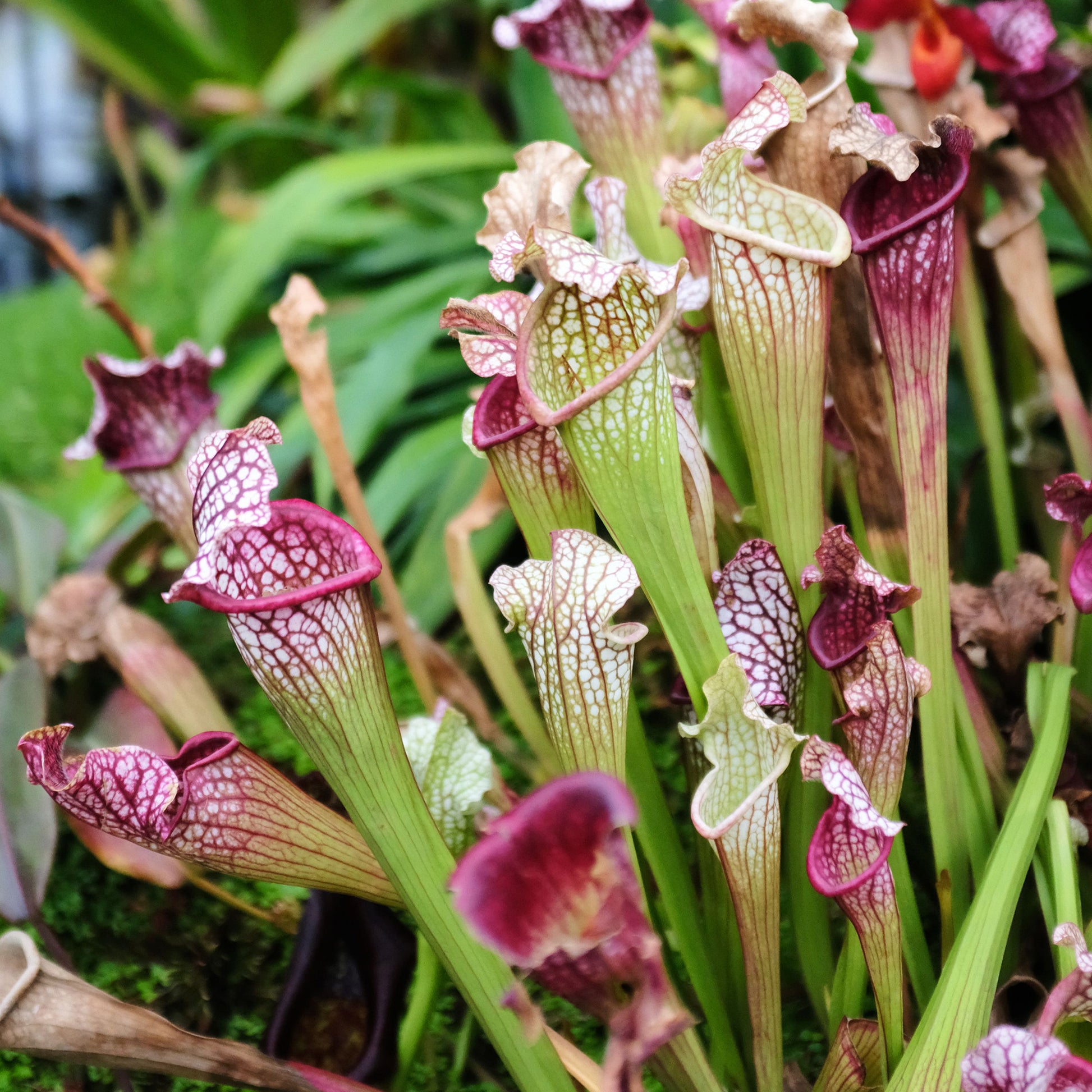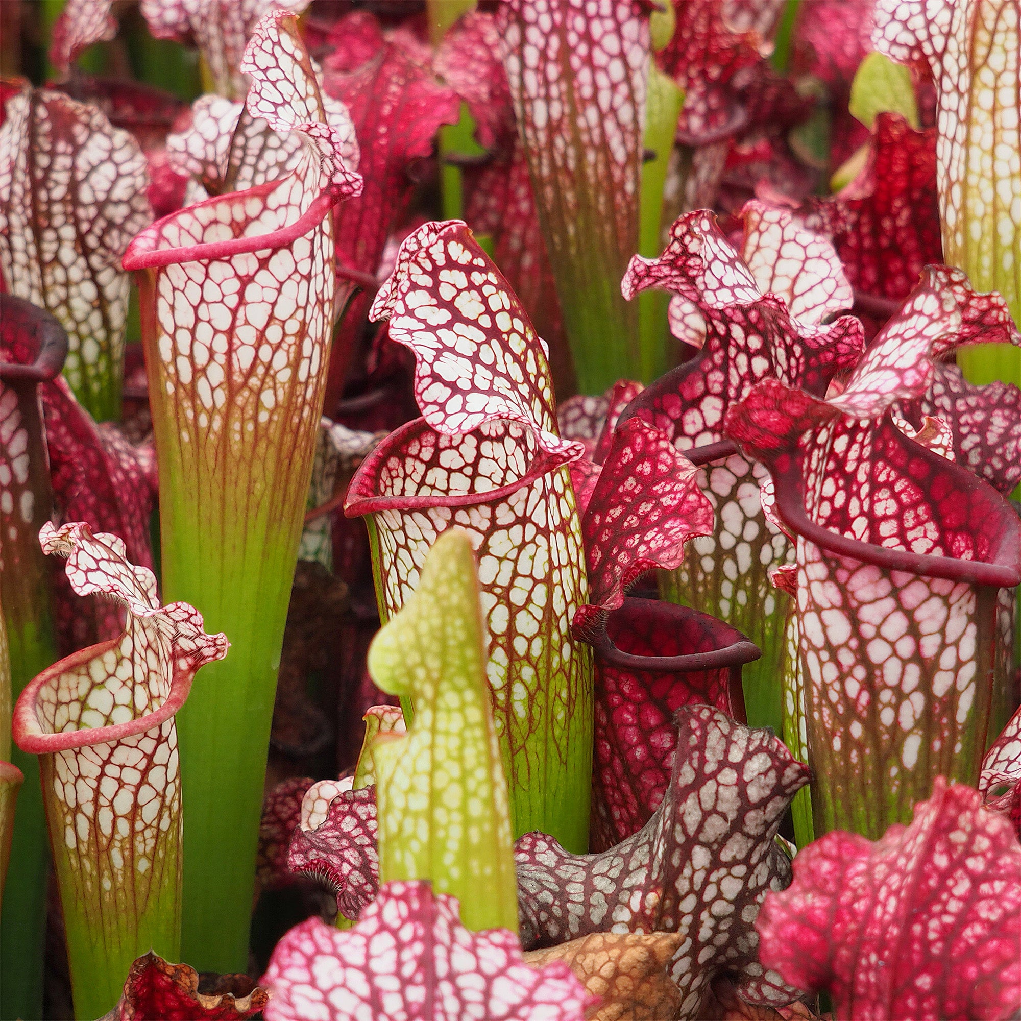 To plant Sarracenia plants, use a pot with good drainage filled with a soil mix of sphagnum moss and sand or perlite to mimic its natural boggy habitat. Avoid using fertilised or nutrient-rich soil, as these plants thrive in nutrient-poor environments. Place the pot in a sunny location, as they require at least 6 hours of direct sunlight daily to thrive. When planting, ensure the rhizome is just above the soil surface, and water thoroughly to settle the soil around the roots.