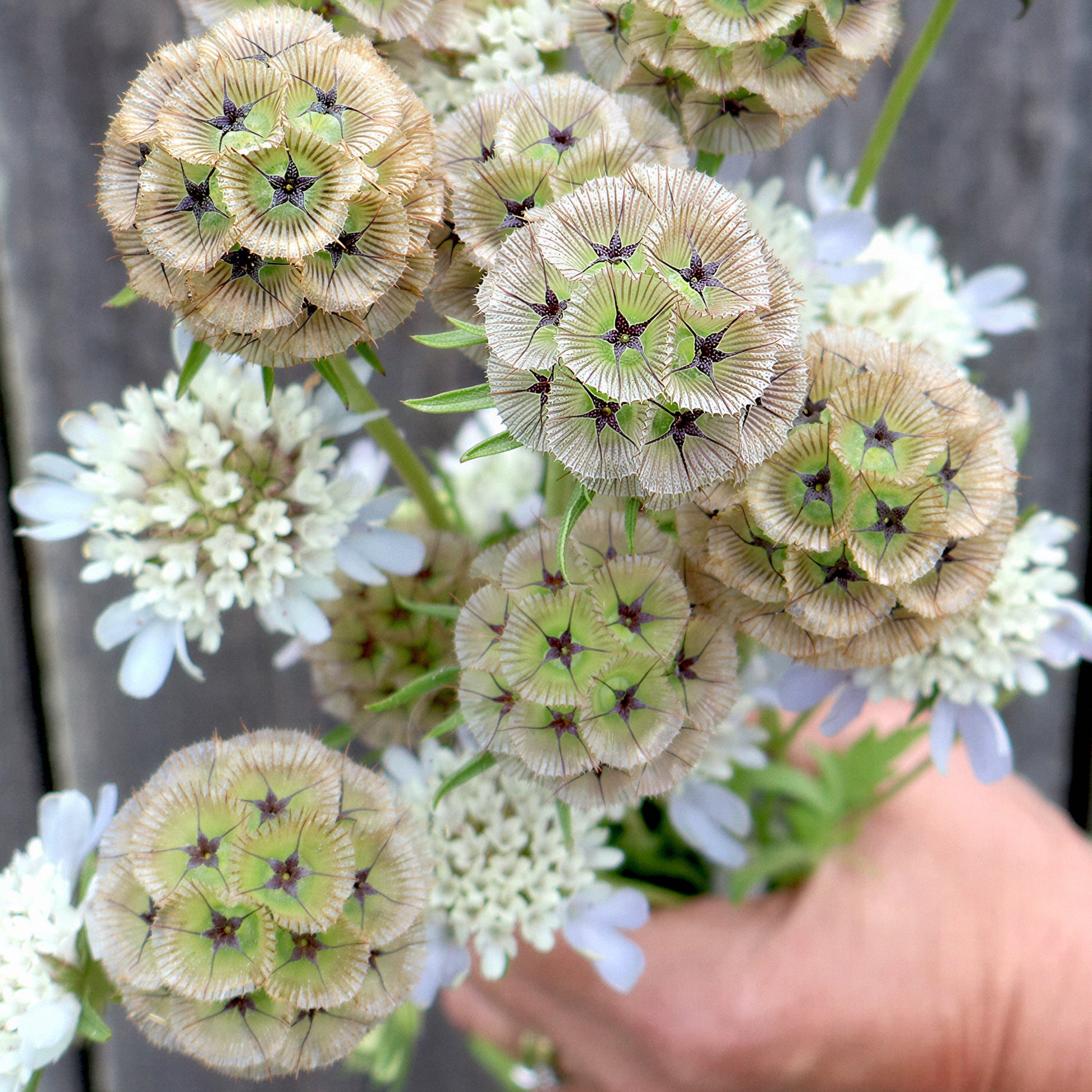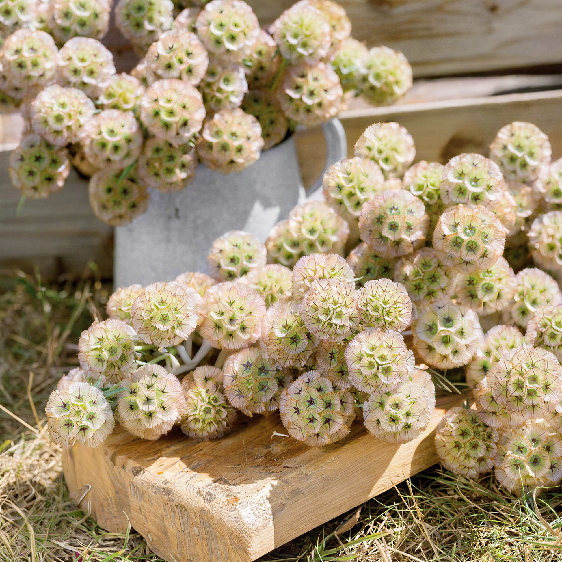 Also known as Starflower Scabious or Drumstick Scabious, Scabiosa 'Ping Pong' brings a touch of whimsy to borders and bouquets with its compact, globe-shaped blooms that bob gently on wiry stems. This charming variety produces a profusion of pale lavender to soft white flower heads, each resembling a miniature ping pong ball - ideal for adding texture and movement to cottage gardens, containers, and floral arrangements.
