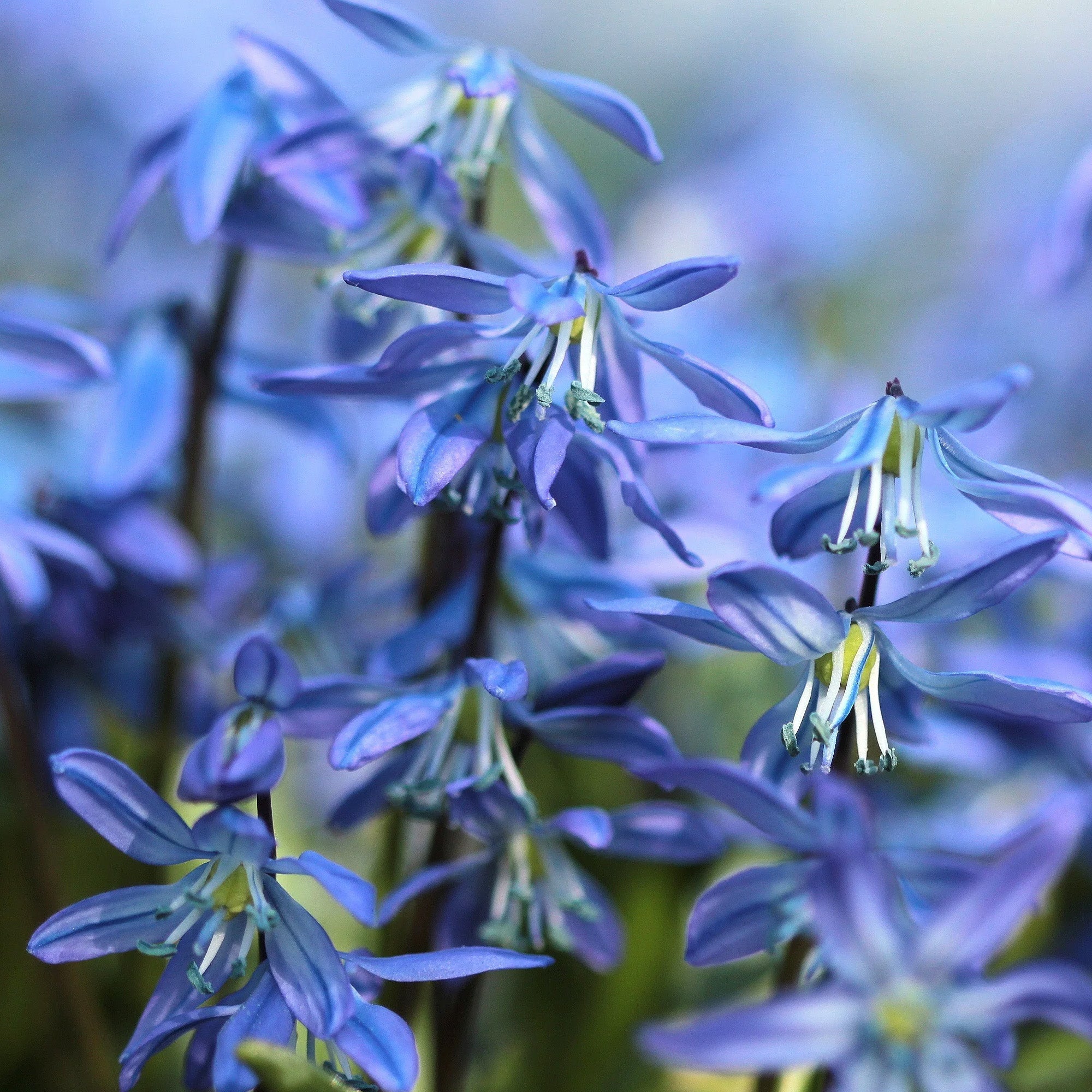 Scilla is a variety of ornamental plant with origins in the Caucasus and Southwestern Russia to Turkey and is a part of the Asparagaceae Family, related to Asparagus. Clump-forming perennial that appreciates well-drained soils. Bell or star-shaped flowers are typically produced in shades of blue, with some varietals exhibiting more violet, white or pink colours.