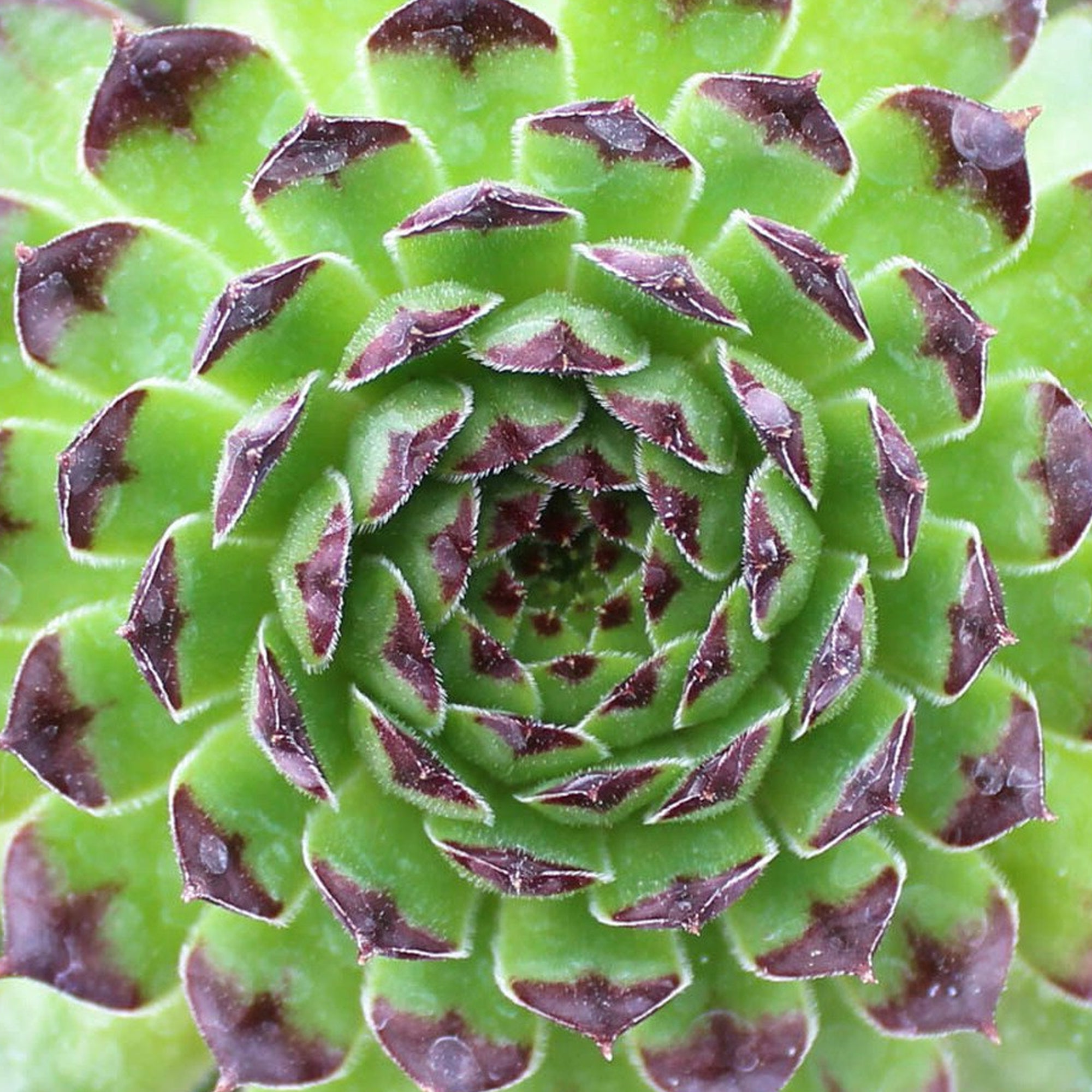A very hardy evergreen succulent with a compact, mat-forming habit, the Sempervivum ‘Appletini’ from Chick Charms ® also known as ‘Hens & Chicks’, consists of small, rounded rosette shapes of waxy, fleshy, light green leaves with deep purple-black tips throughout the year. They are a highly resilient variety and will thrive in almost any location no matter the season. A great option for rockeries or areas with generally poor-quality soil.