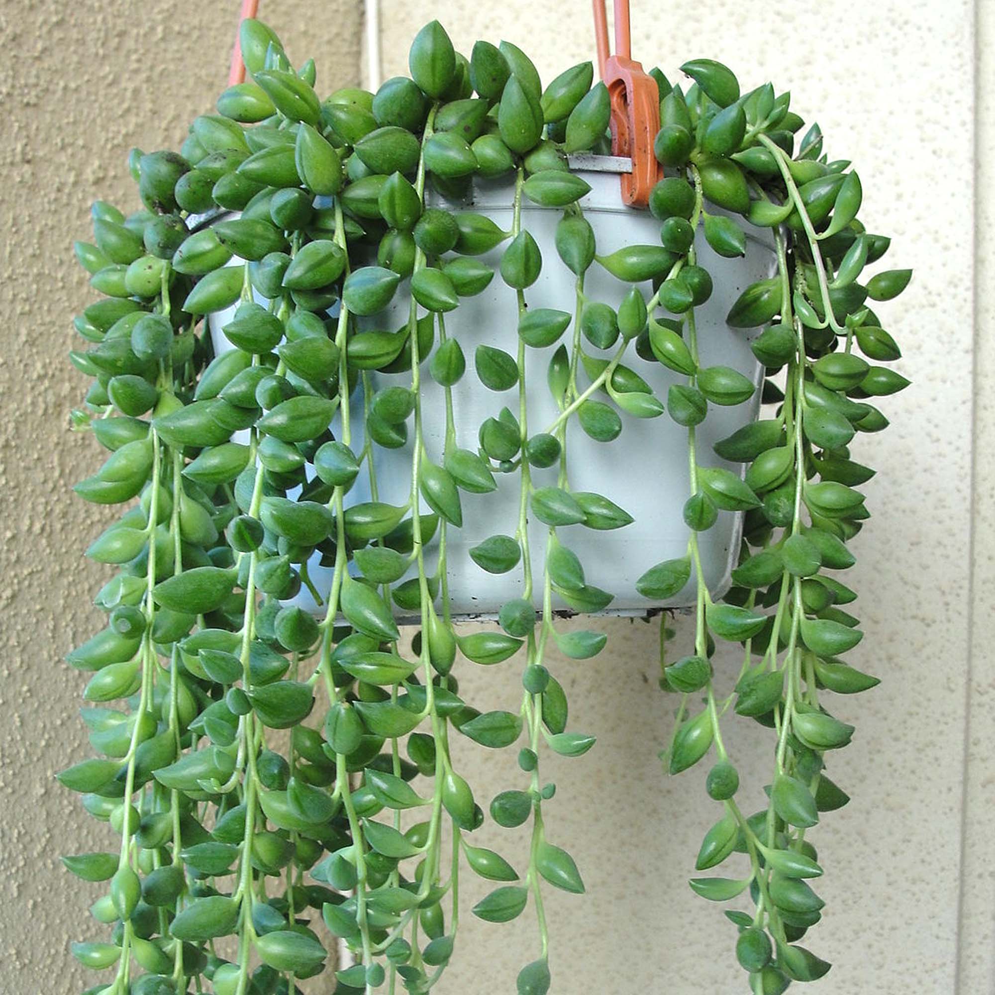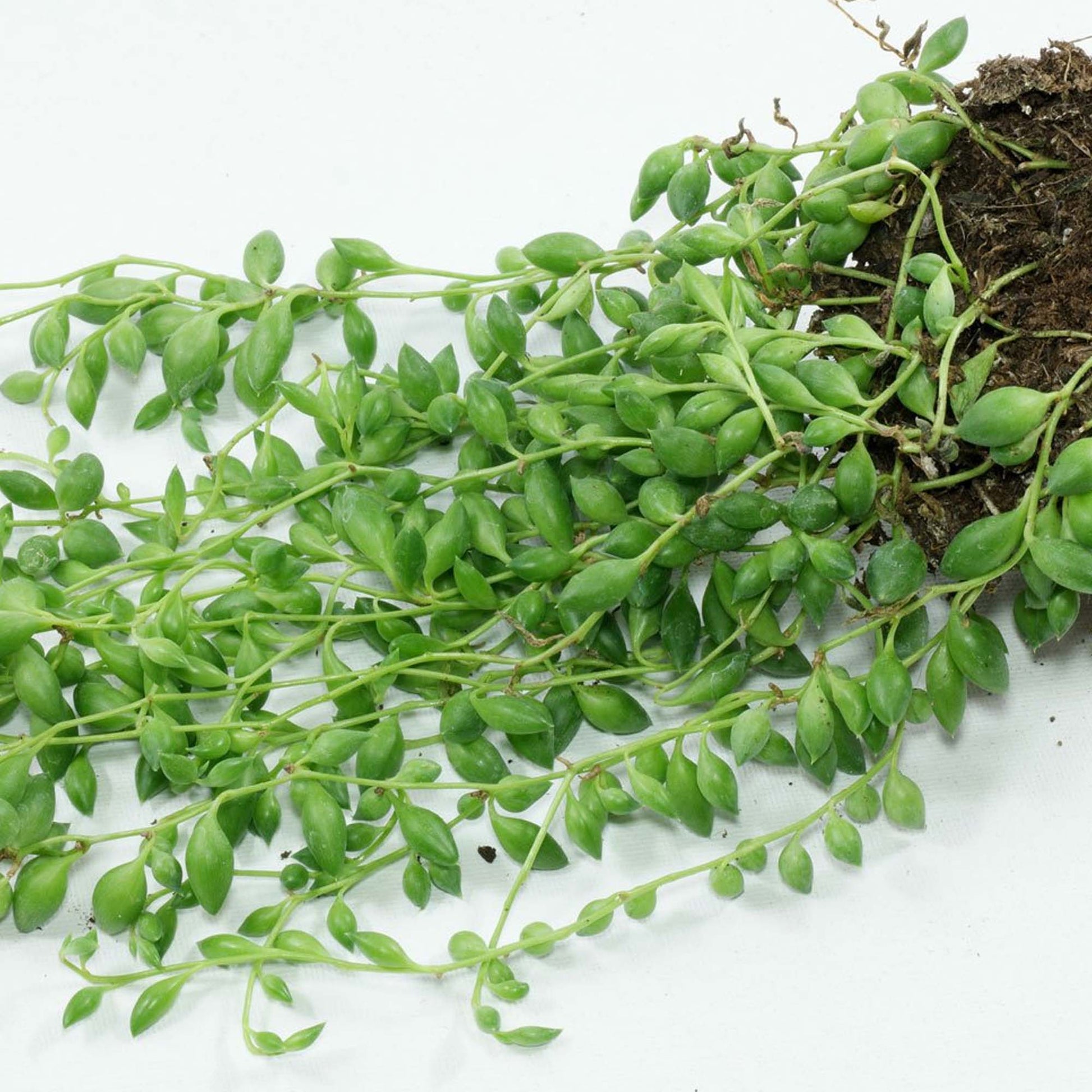 Our Senecio herreianus is an indoor succulent plant. Commonly known as String of Beads, this evergreen plant bears clusters of bright green foliage that droop down from the pot to highlight its trailing habit. Small, white flowers will also appear, giving it another eye-catching feature. Hallways, conservatories, offices, window sills and shelves are ideal, as long as they can provide bright, indirect light and good humidity levels. The soil should be sand or loam based, whilst watering is only necessary when the soil is dry to touch due to its drought tolerant nature.