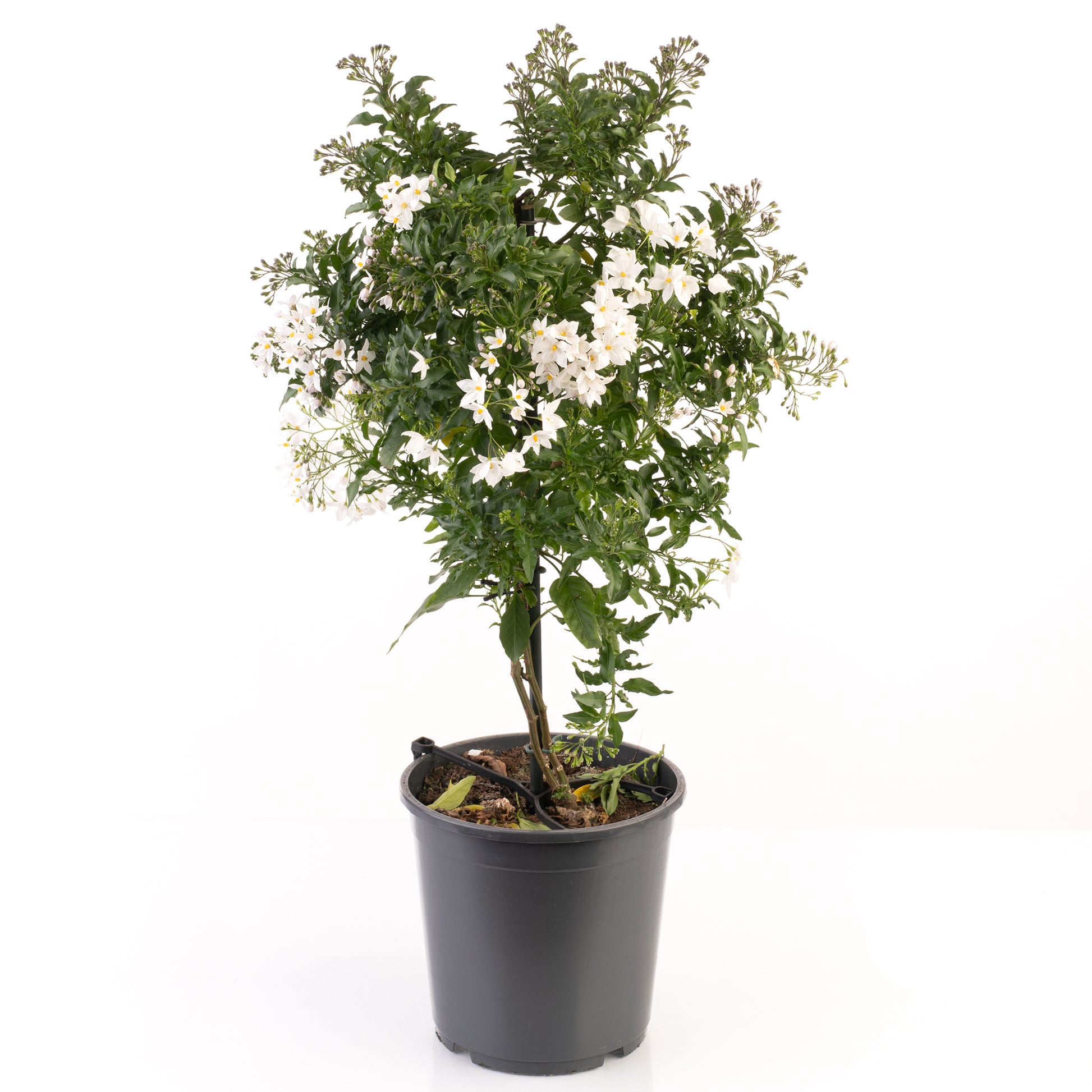 Prune Solanum in early spring to remove dead or damaged branches and encourage fresh, vigorous growth. For climbing varieties, tie new shoots to supports as they grow and trim back overgrown stems to maintain a neat shape. Regular pruning will also help to promote more flowers and keep the plant manageable. Solanum thrives when given the right support and care, making it a stunning addition to any outdoor garden.