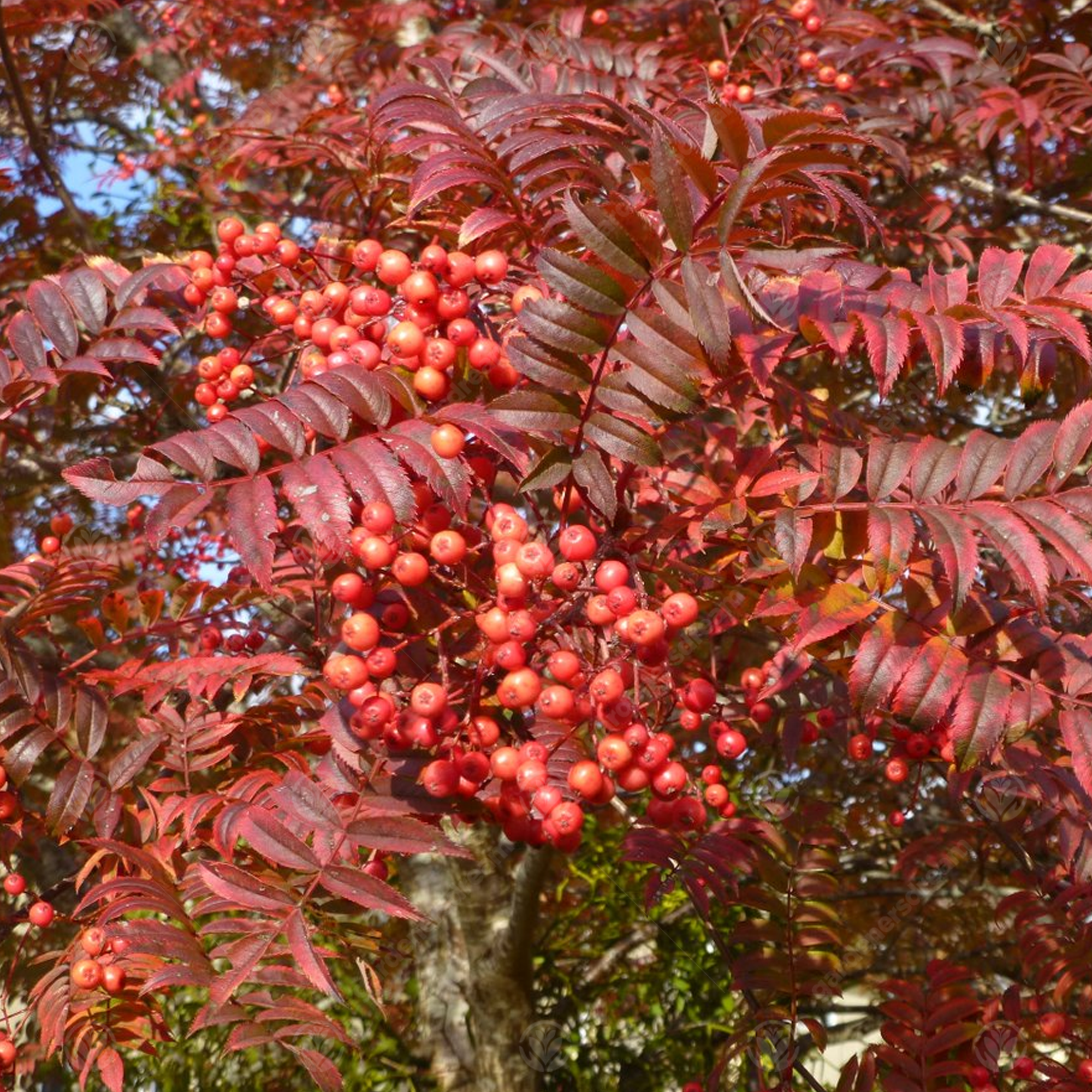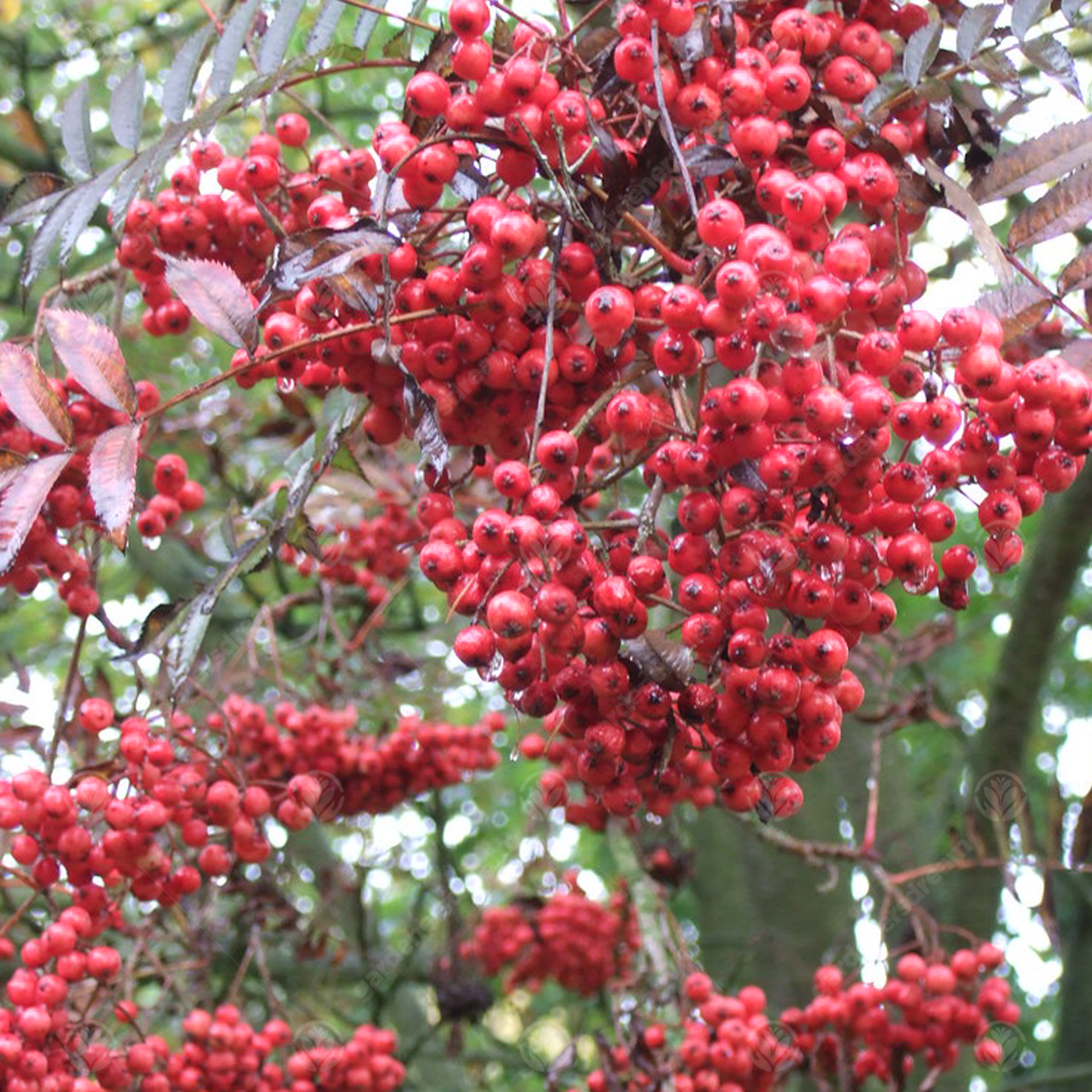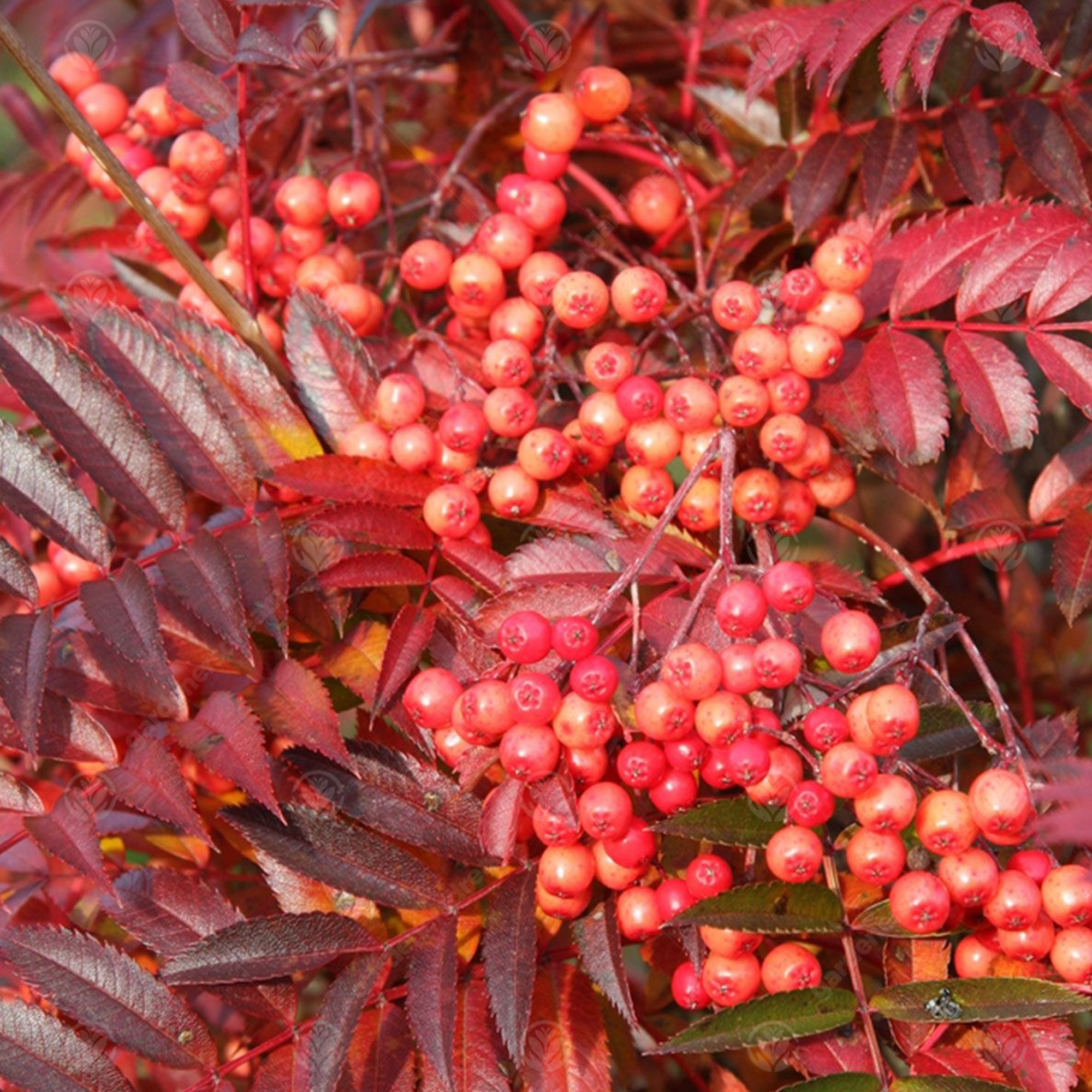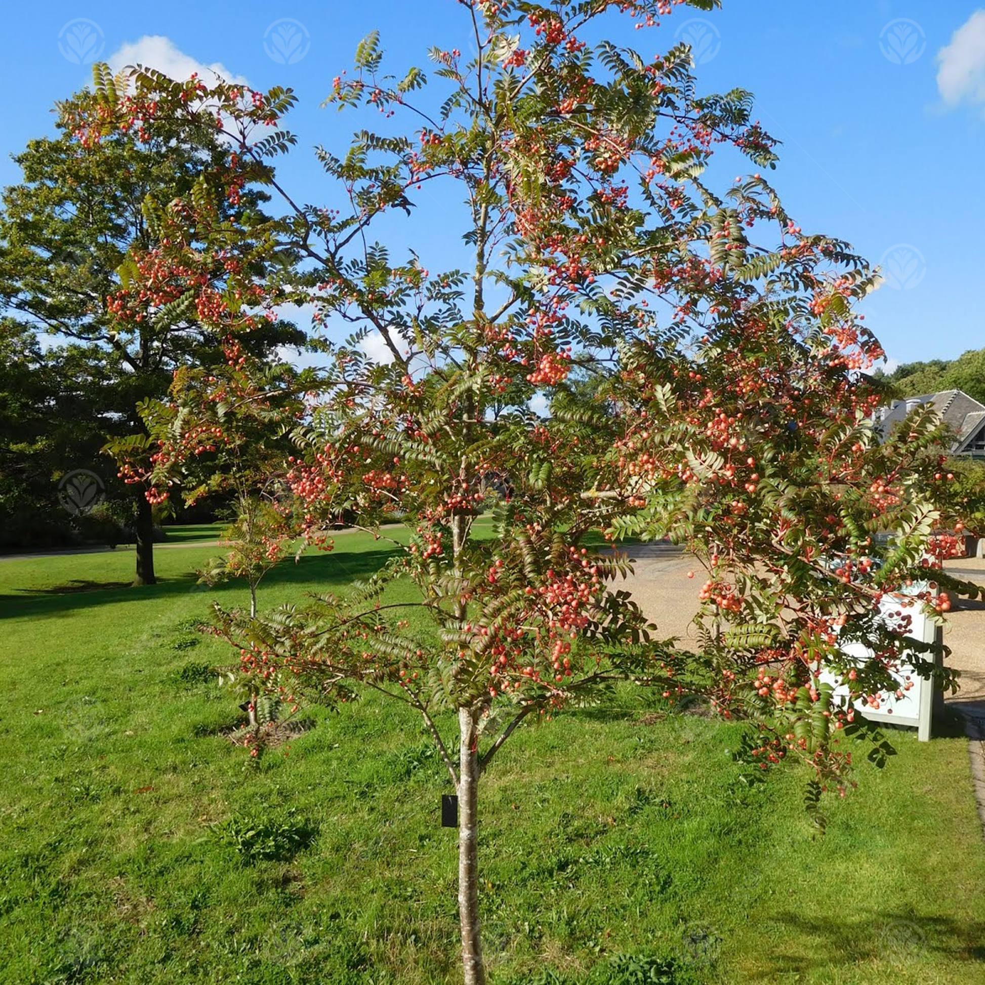 The Sorbus ‘Eastern Promise’ is deciduous tree more commonly known as the Mountain Ash ‘Eastern Promise’. This variety has light green pinnate leaves that turn orange-red in the Autumn. Small white flowers appear in the Spring followed by pink berries in Autumn. The Sorbus ‘Eastern Promise’ has a bushy habit; this variety is hardy and will thrive in most soil types. The Mountain Ash ‘Eastern Promise’ is best planted in a full sun or partially shaded location.