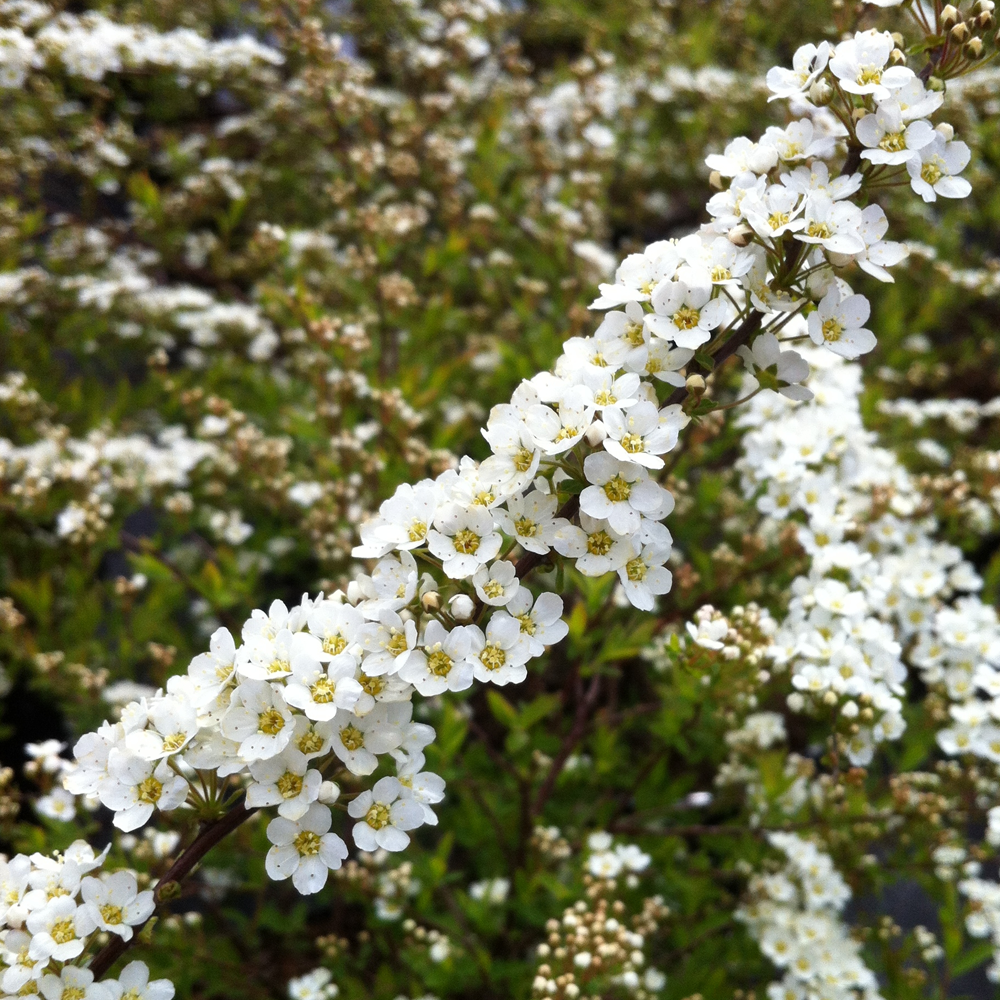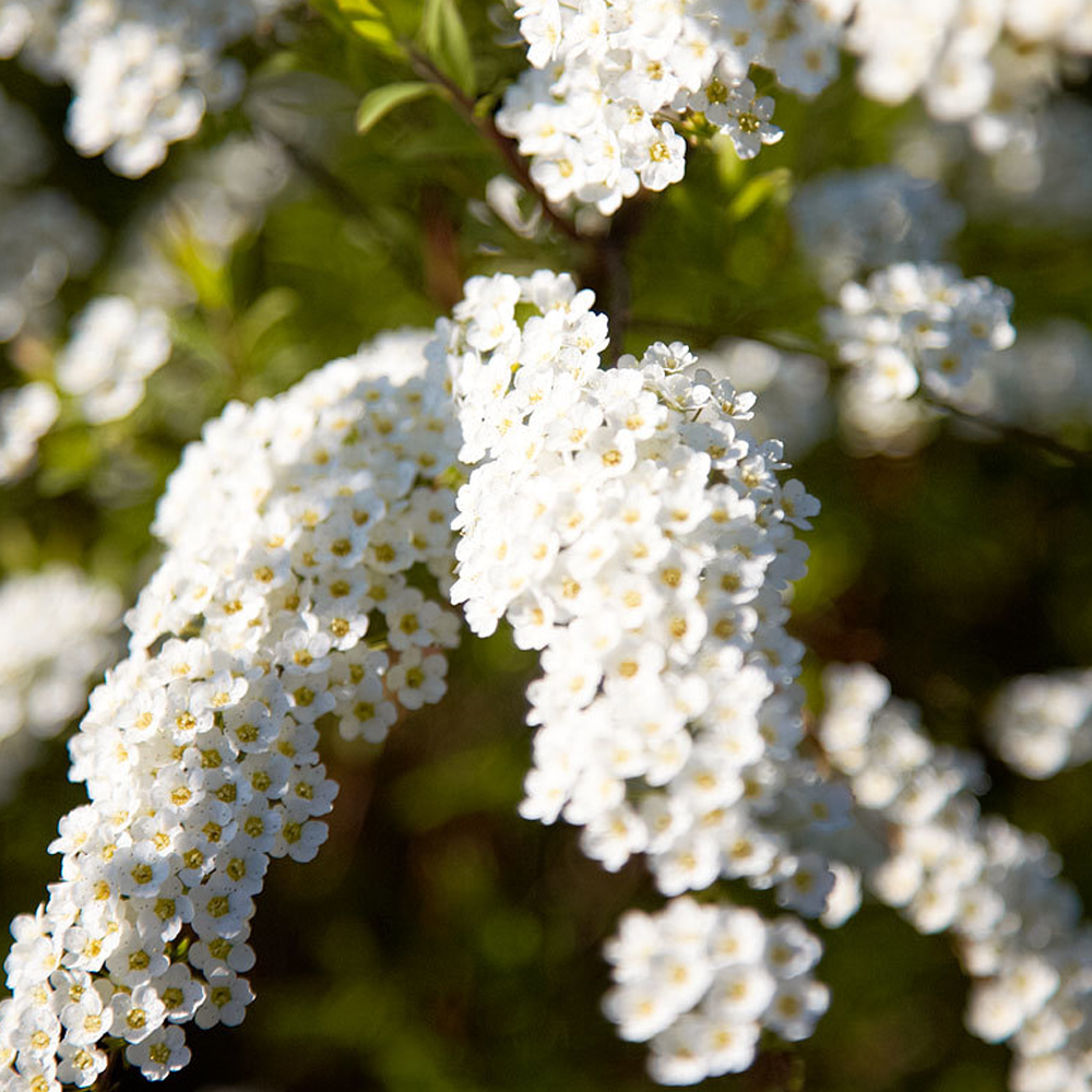 Spirea x cinera 'Grefsheim' is a compact deciduous shrub. This variety can develop large arching branches that carry small long greyish leaves that will last throughout spring and summer, these are commonly coupled with an abundance of white flowers that are roughly 8mm wide, these will generally develop in clusters along the branches giving off a nice effect. An extremely hardy variety, 'Grefsheim' will generally thrive in most types of soil, provided it is well-drained, they prefer fully sunny positions in the garden but will do just fine in partially shaded areas.