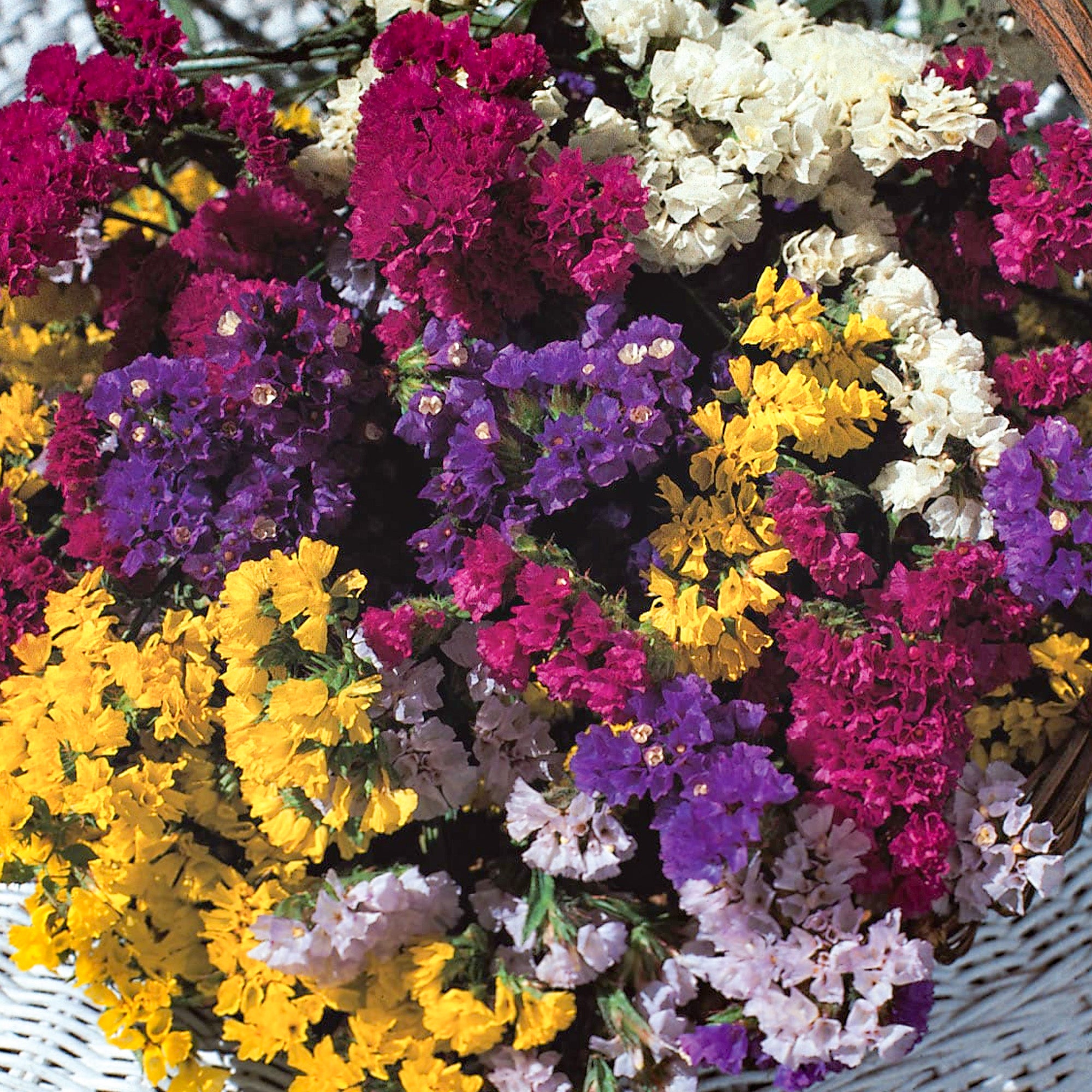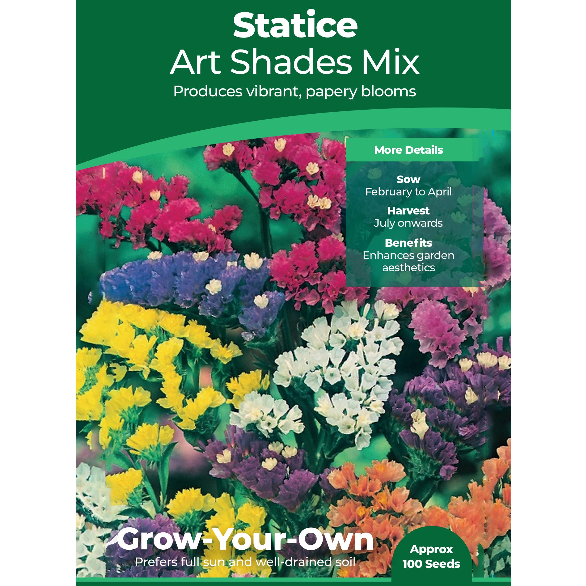 Statice 'Art Shades Mixed' is a versatile and colourful variety that produces an abundance of vibrant blooms in shades of pink, purple, and white. These flowers are perfect for adding a splash of colour to your garden and are equally suitable for fresh or dried flower arrangements. The long-lasting blooms retain their colour and structure even when dried, making them a popular choice for bouquets and craft projects. This hardy annual is easy to grow and thrives in sunny, well-drained locations, providing a reliable display of colour throughout the summer.