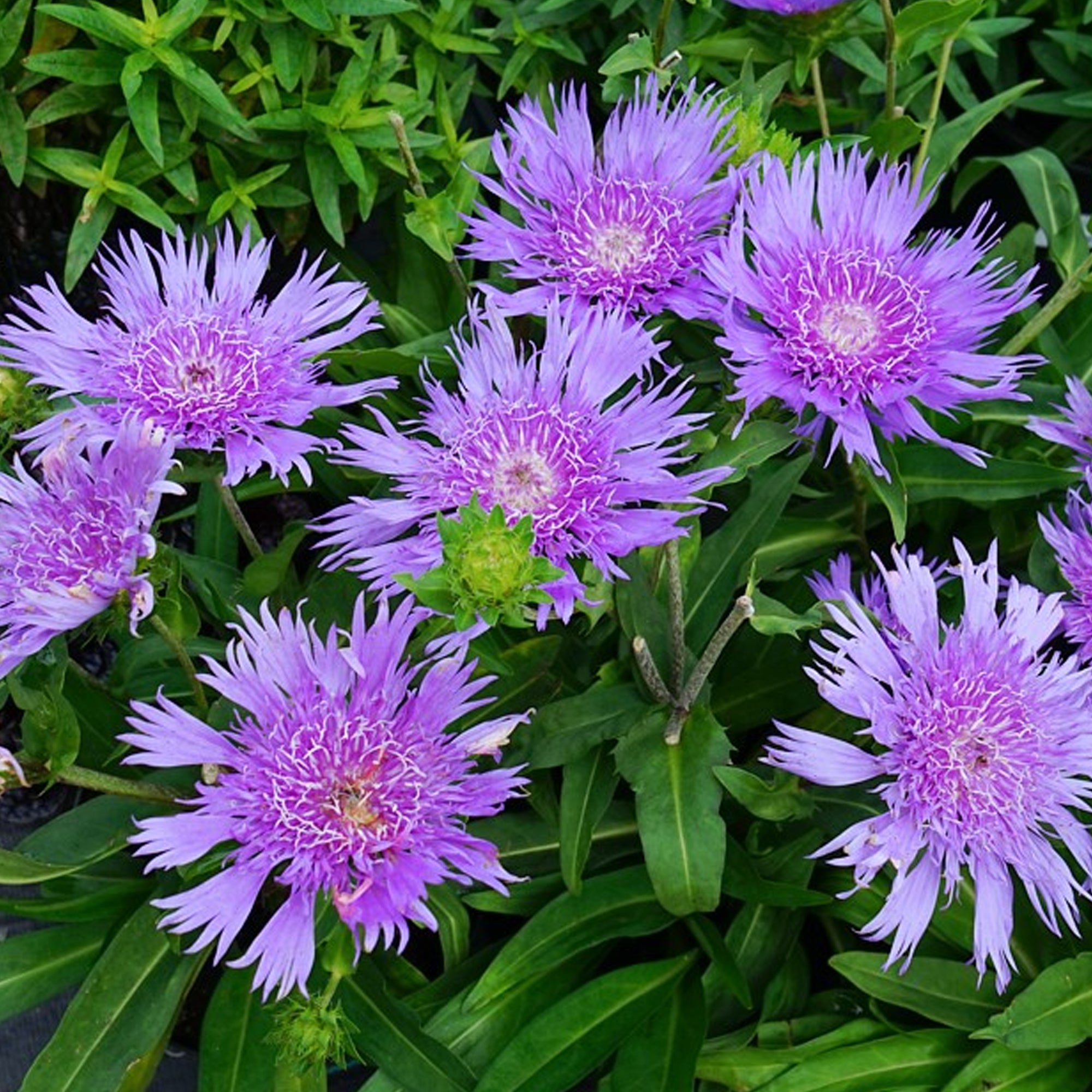 Water Stokesia regularly, especially during dry spells, to keep the soil evenly moist. Once established, they are somewhat drought-tolerant but benefit from occasional deep watering. Avoid soggy soil to prevent root rot.