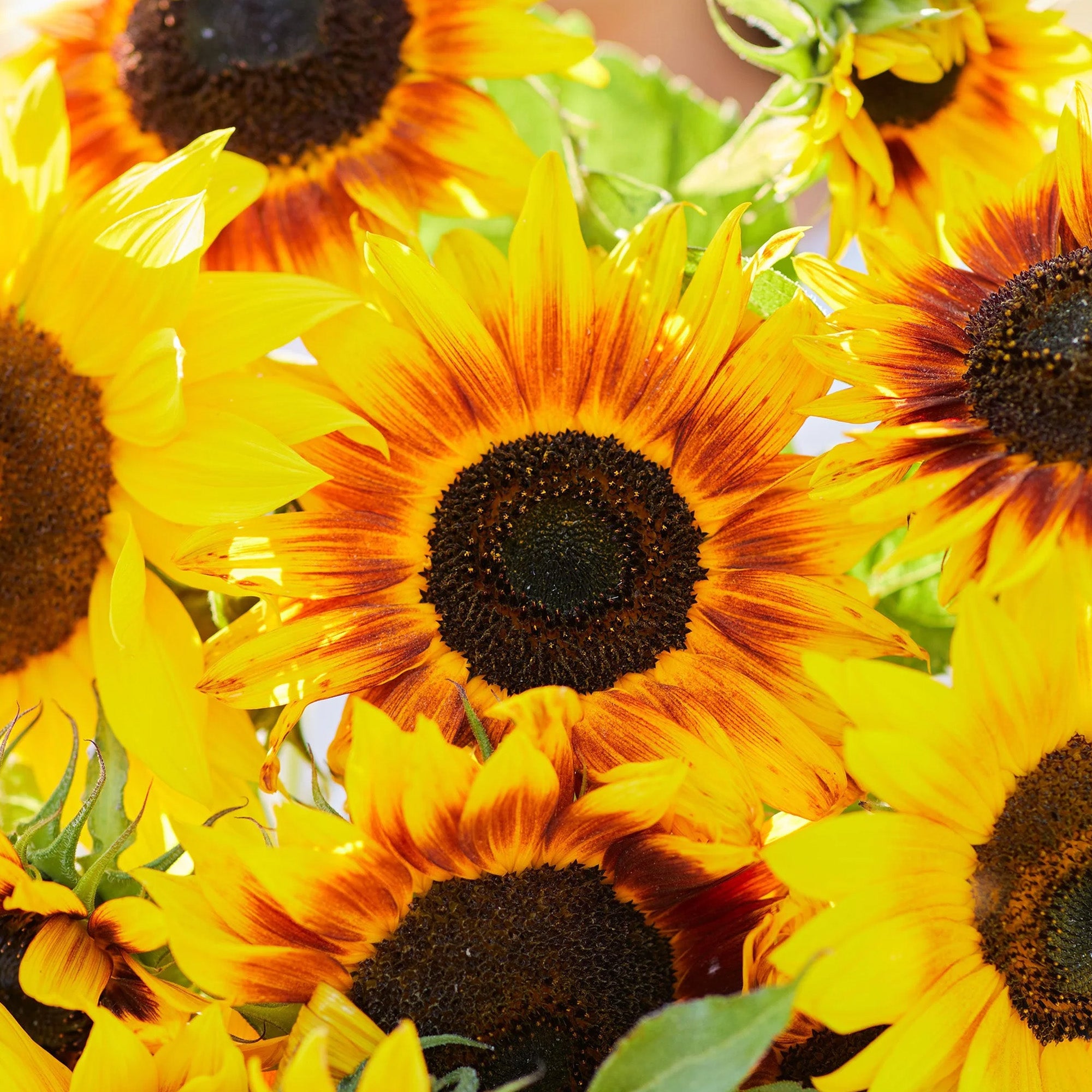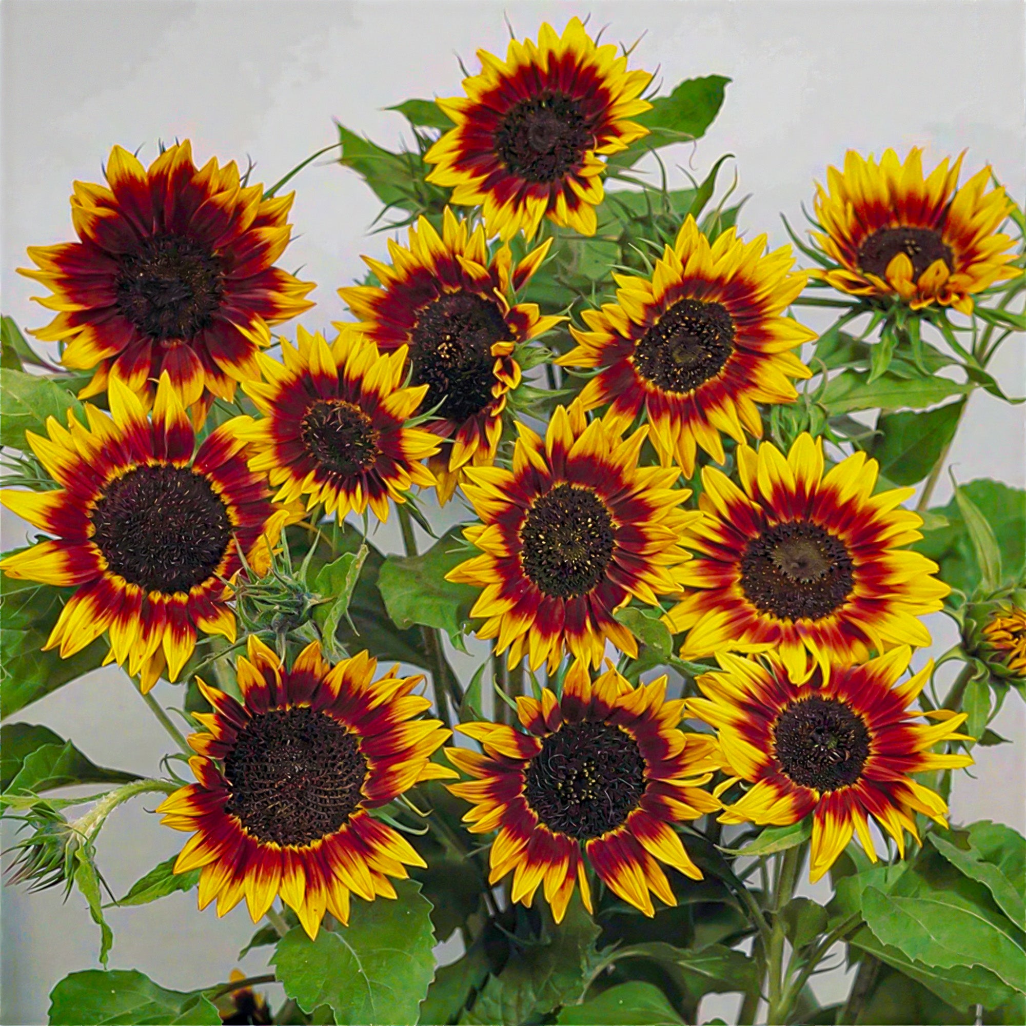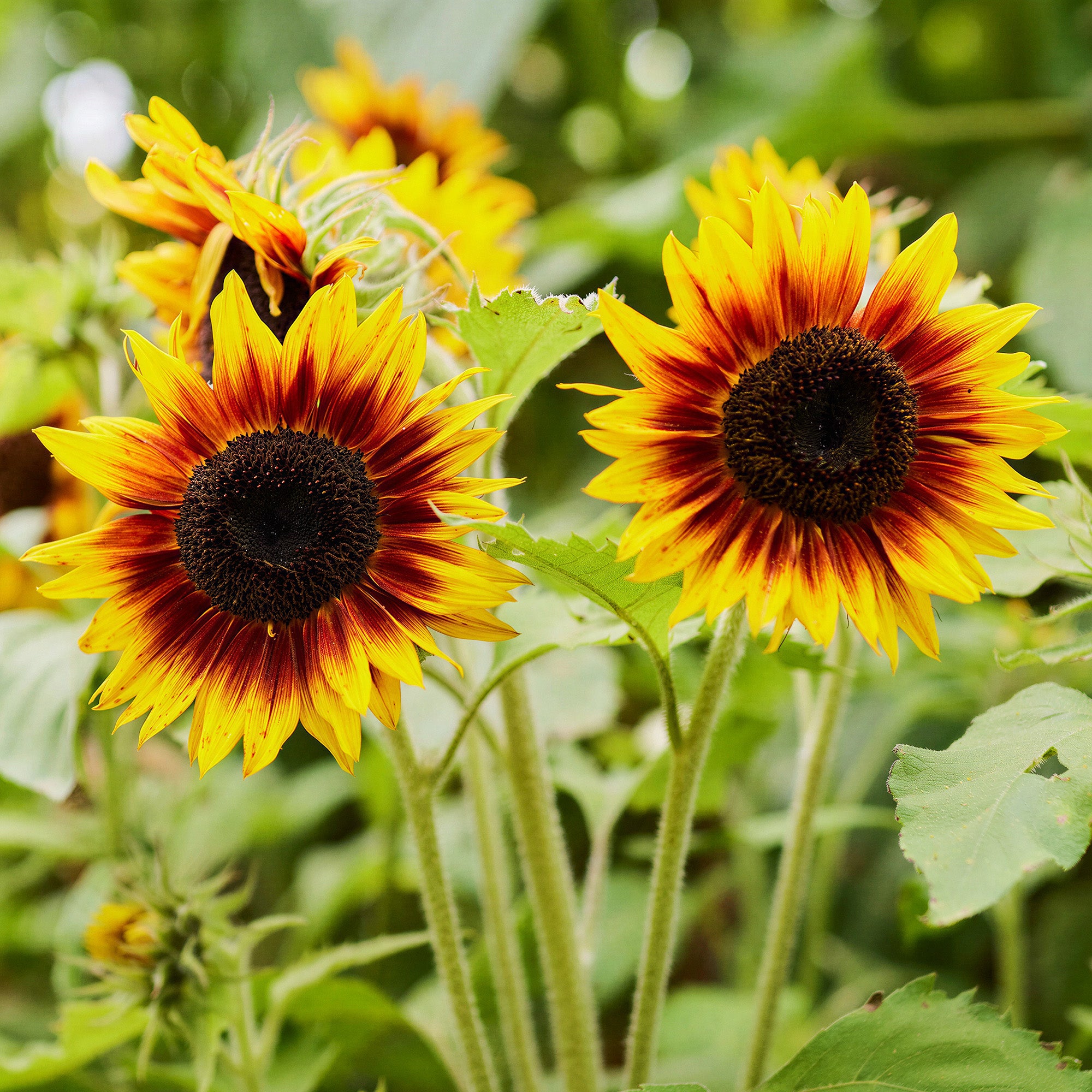 Sunflower ‘Ring of Fire’ is a fiery showstopper that adds bold colour and drama to summer borders. Boasting deep red centres surrounded by golden-yellow tips, each bloom resembles a glowing flame and is perfect for creating eye-catching displays. Growing up to 1.2 metres tall, this variety is ideal for the middle or back of borders and makes a striking addition to cutting gardens and wildlife-friendly spaces.