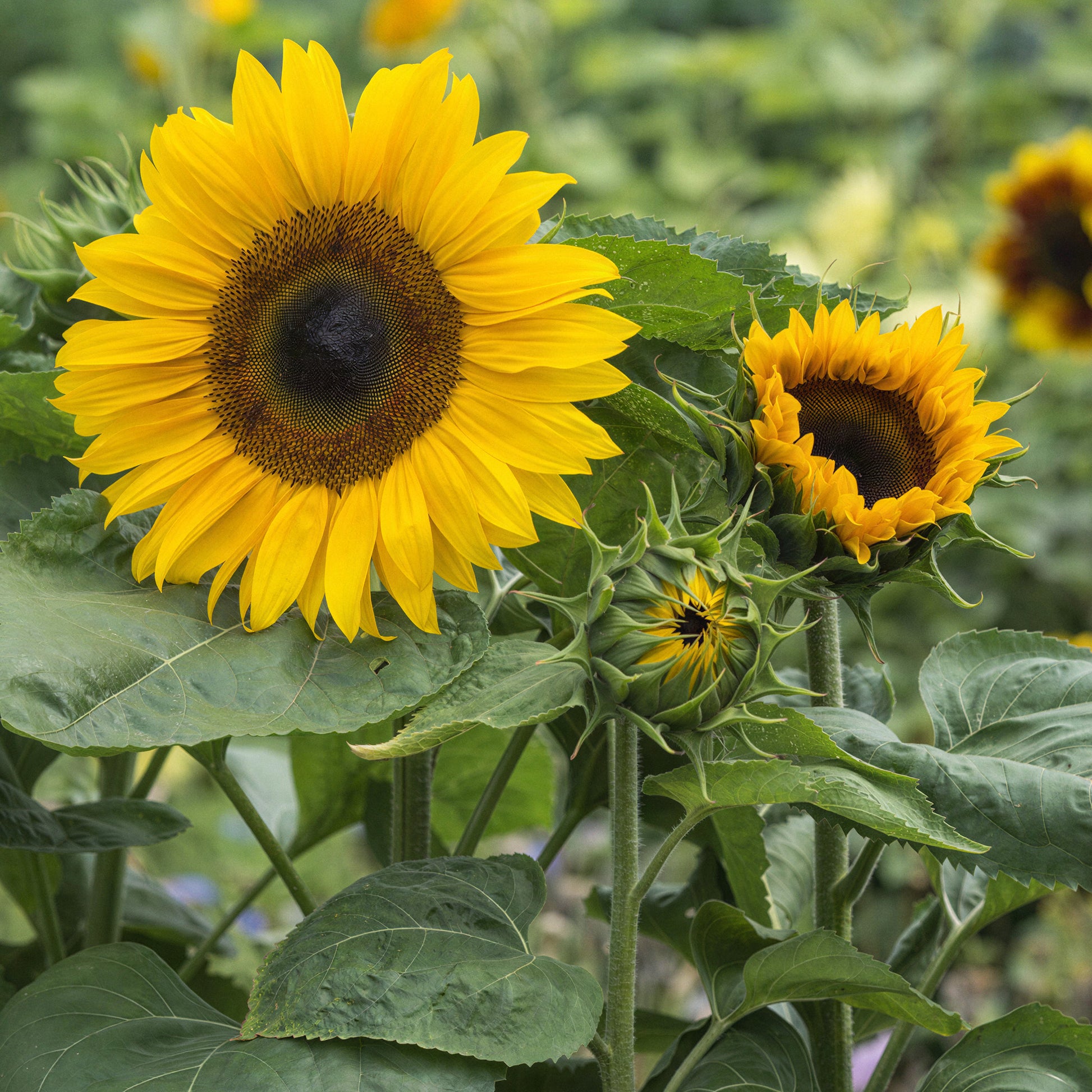 Sunflower ‘Ronnie Orange’ is a vibrant variety that brings yellow-orange blooms to borders, beds, and containers. With a tidy, bushy habit and cheerful colour, this sunflower reaches up to 1.7 metres tall, making it ideal for planting at the back of borders. Its vivid petals and dark centres make it a standout choice for cutting and a magnet for pollinators.