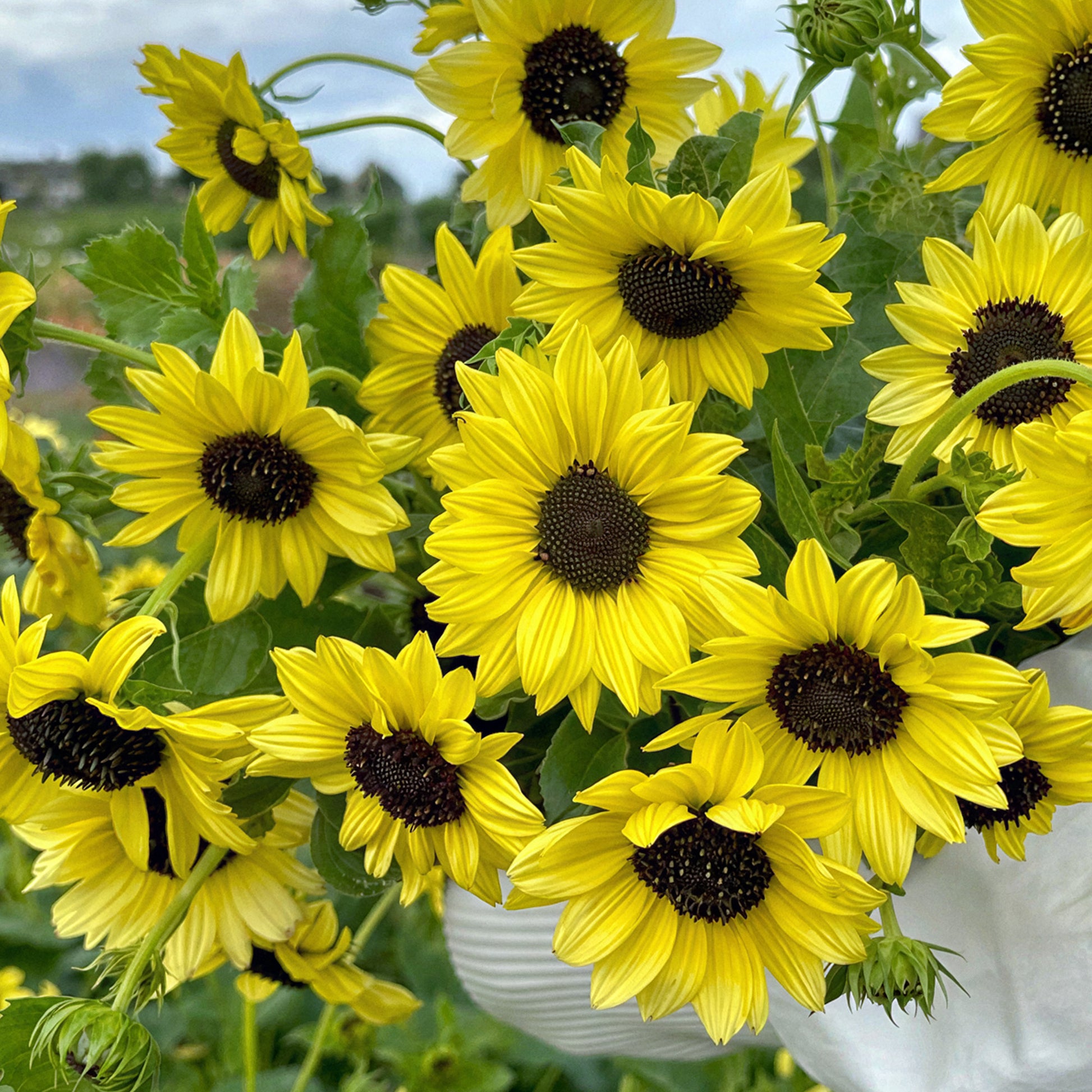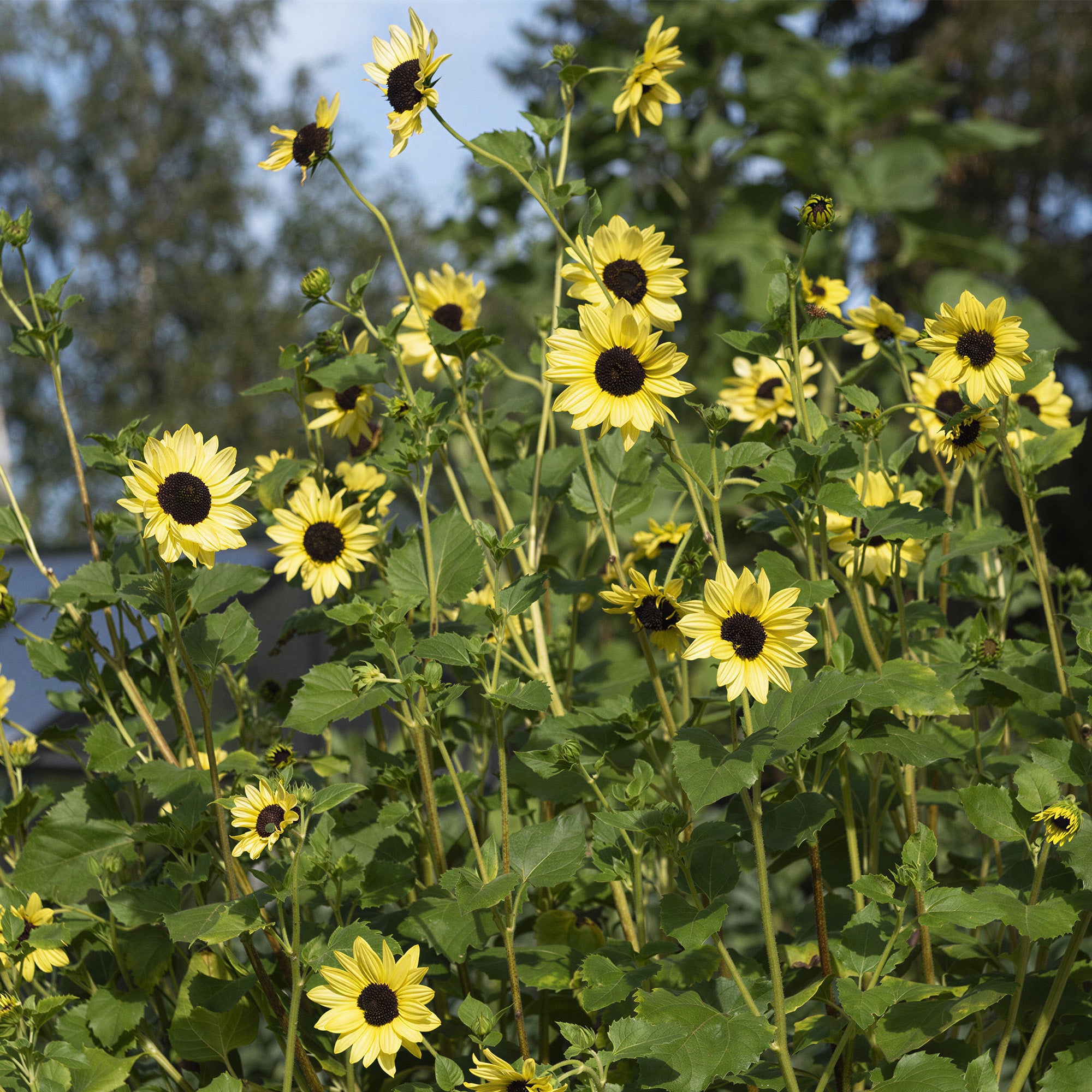 Sunflower ‘Saluna Lemon’ is an elegant variety that brings soft lemon-yellow blooms to borders, beds, and containers. With a neat, bushy habit and pale petals surrounding a dark centre, this eye-catching Sunflower reaches up to 1.2 meters tall, making it ideal for back-of-border planting. Its gentle colouring adds a calming touch to summer displays and is loved by pollinators.