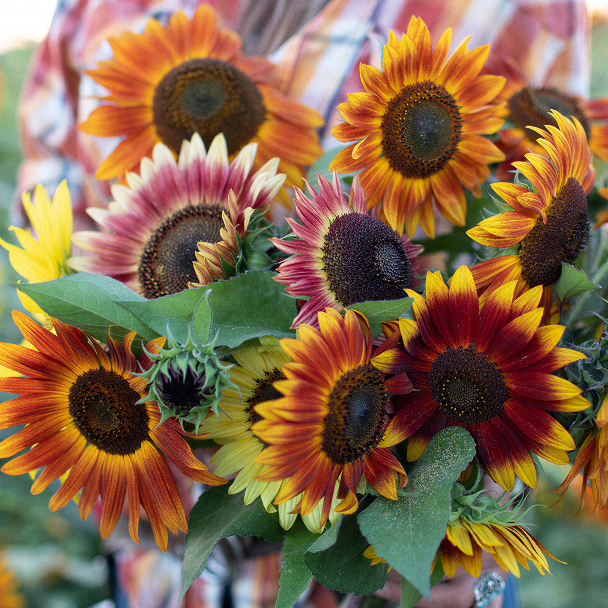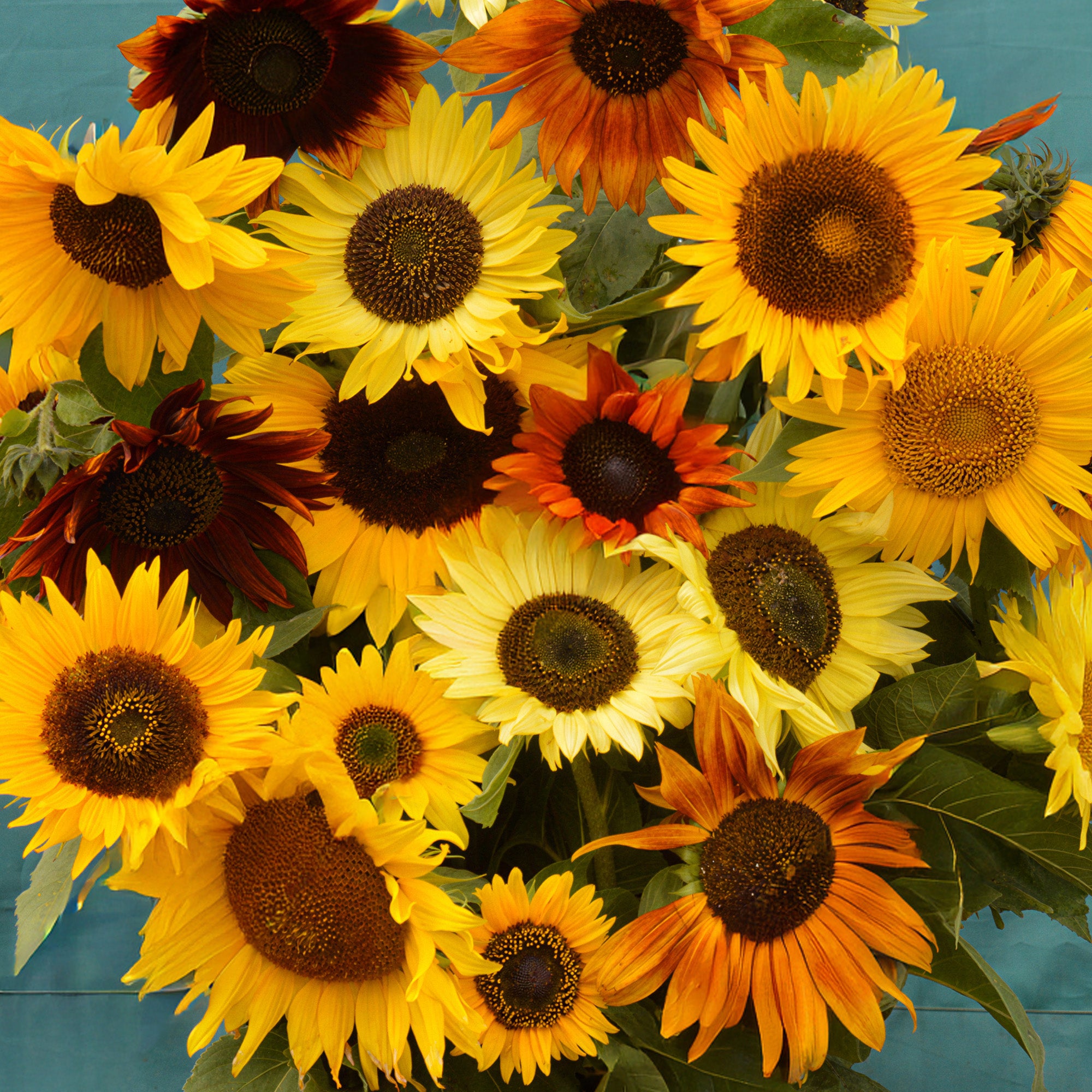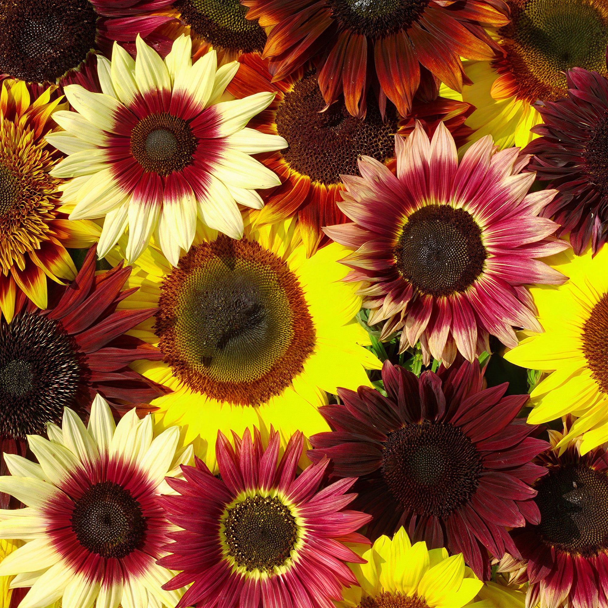 Sunflower ‘Tall Cutting Mix’ is a vibrant blend of multicoloured, medium-sized single blooms, perfect for creating cheerful summer borders and cut flower arrangements. With heights ranging from 100–150cm, this hardy annual mix offers a variety of shapes and colours, making it ideal for pick-your-own sunflower patches or lively garden displays. The colourful flowers resemble large daisies and are loved by pollinators and children alike.
