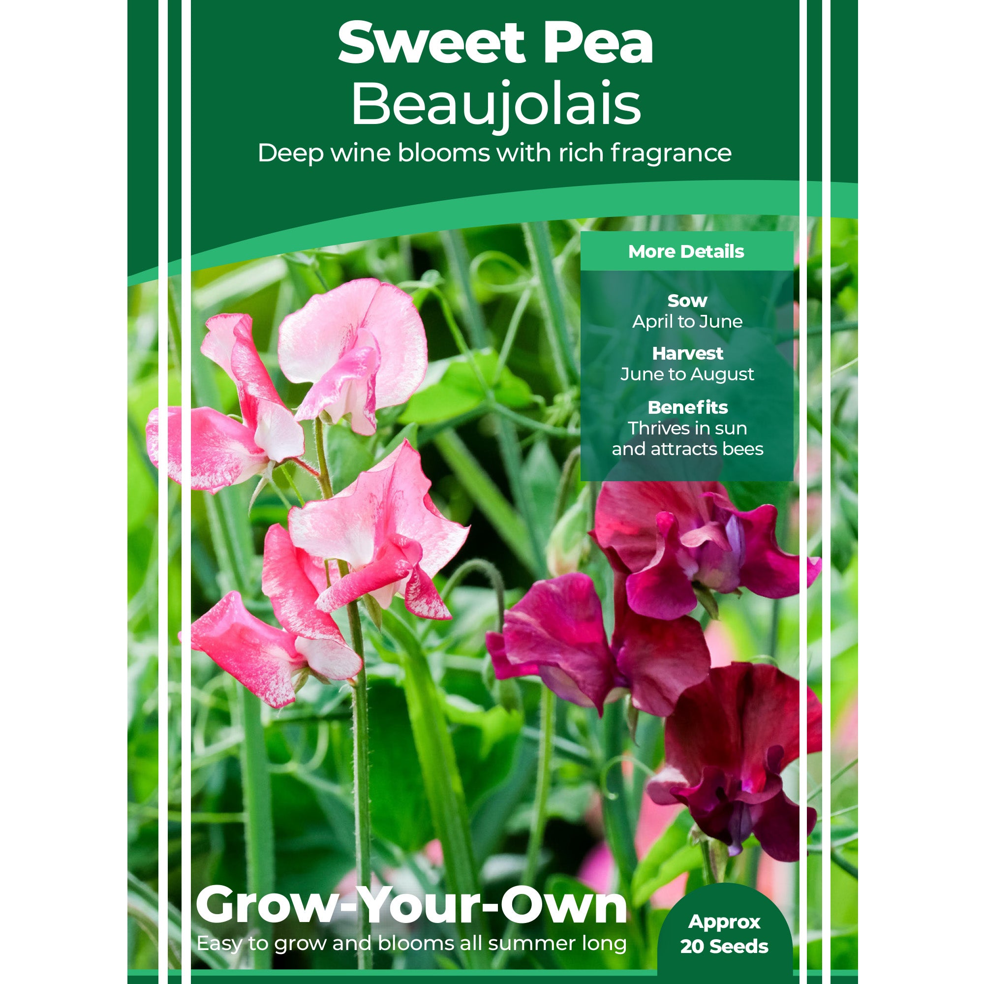 These Beaujolais Sweet Pea seeds produce attractive climbing plants covered with rich, dark purple-burgundy summer flowers. These blooms are highly scented and make excellent cut flowers to bring indoors.