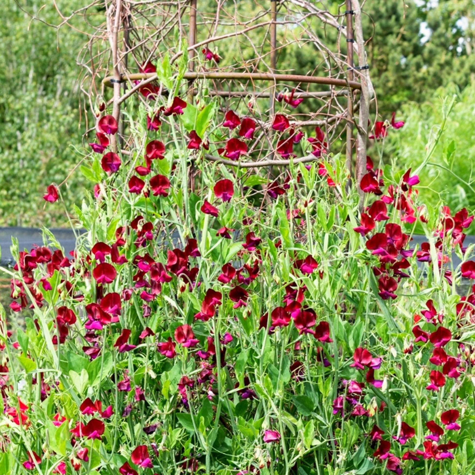 Grow Beaujolais Sweet Peas in full sun or partial shade in moderately fertile, moist but well-draining soil. Providing a support helps prevent Sweet Pea plants from drooping, especially in wet weather when the flower heads can become heavy. Deadhead spent blooms regularly to prolong the flowering period and promote fresh new growth.