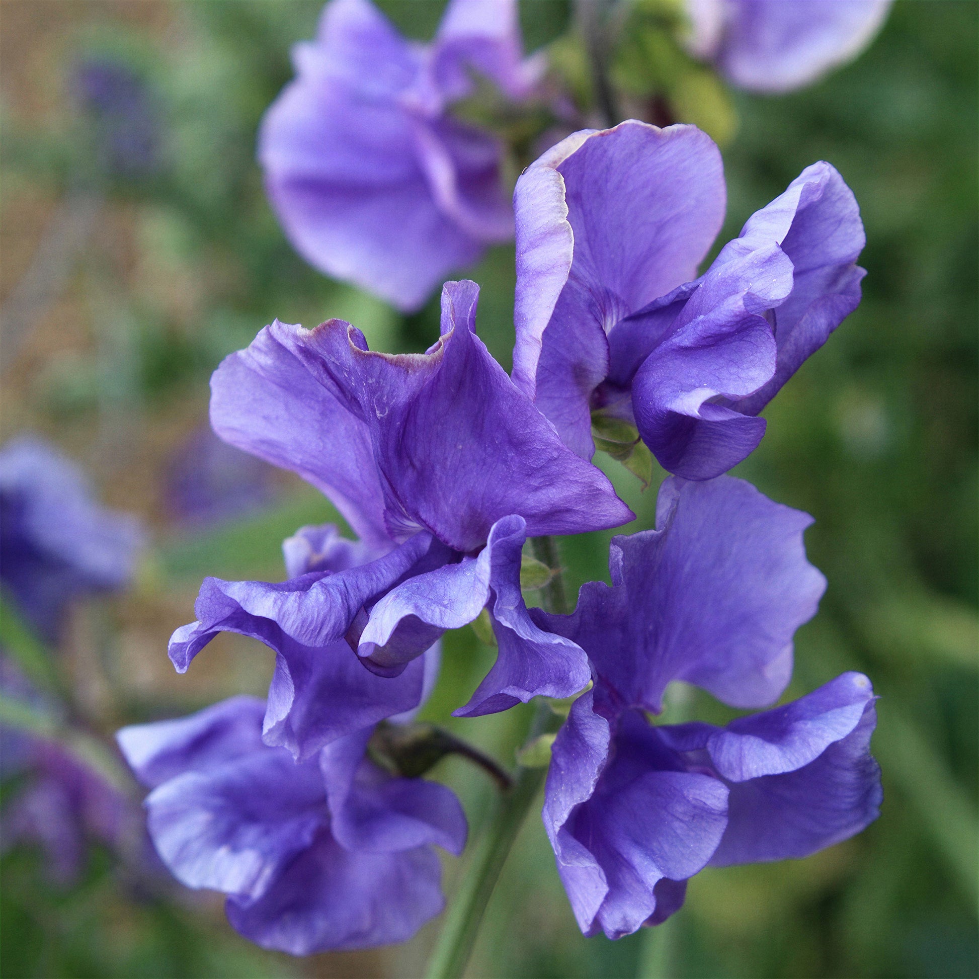 This classic Sweet Pea 'Blue Velvet' variety is brimming with traditional cottage garden charm and is ideal for growing up trellises, fences, and obelisks. Its climbing vines give way to a profusion of deep, velvety, violet-blue flowers, prized for their powerful and delightful fragrance. These beautiful blooms are a magnet for pollinators, enticing bees and butterflies into your garden.