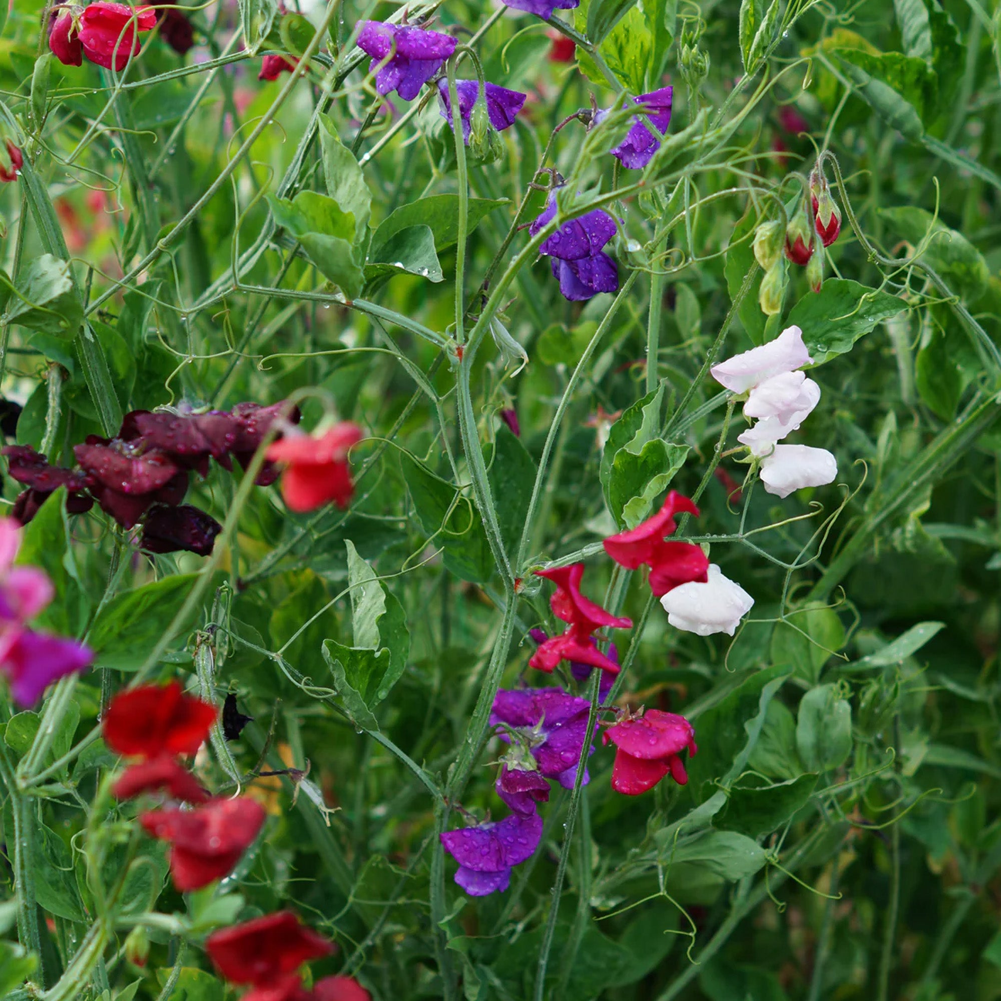 Grow Sweet Peas in full sun or partial shade in moderately fertile, moist but well-draining soil. Deadhead spent blooms regularly to prolong the flowering period and promote fresh new growth.