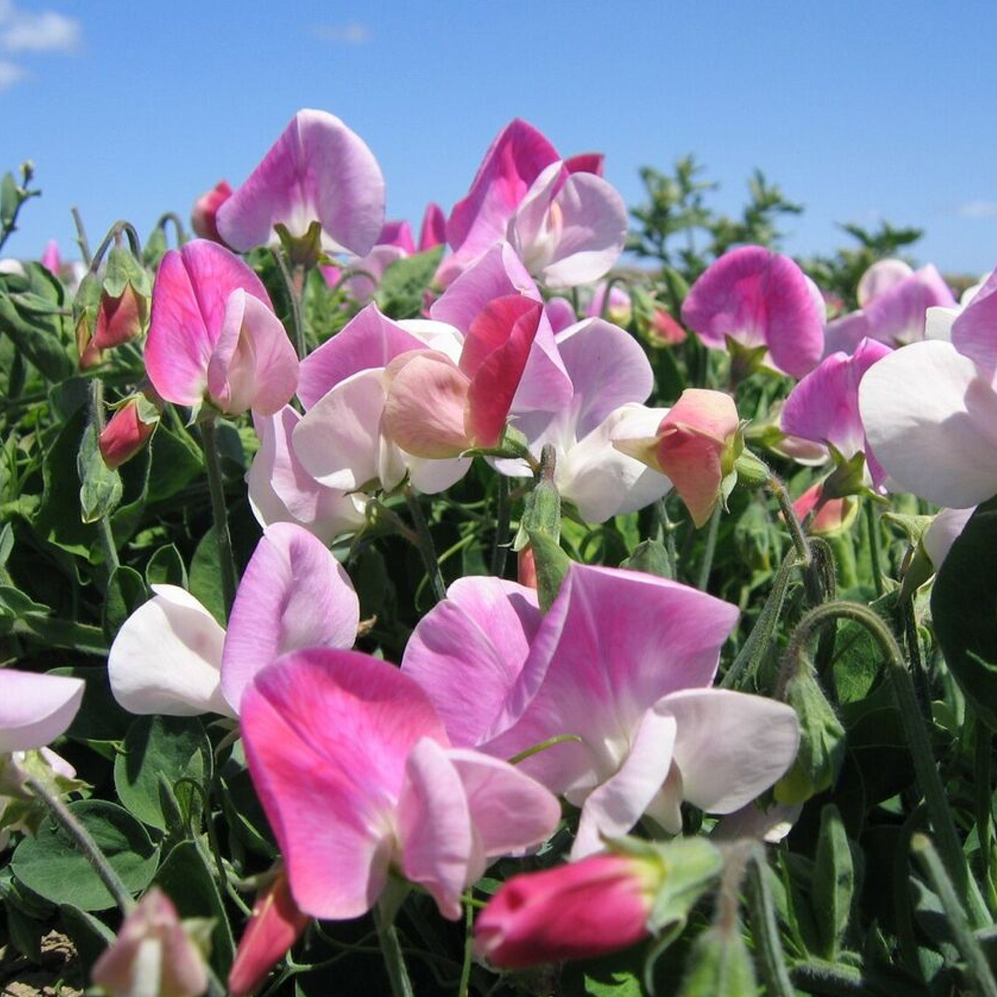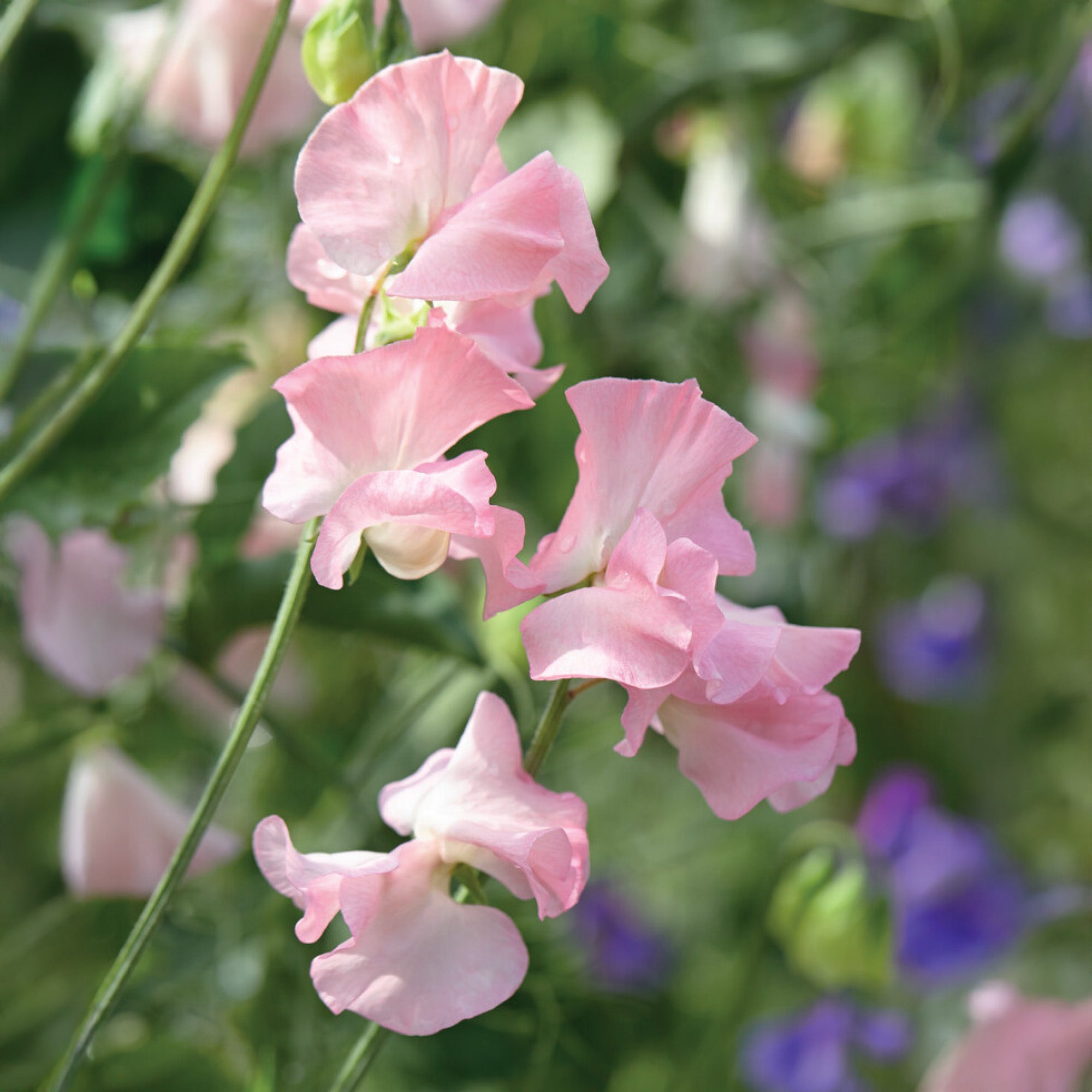 Grow Sweet Peas in full sun or partial shade in moderately fertile, moist but well-draining soil. Deadhead spent blooms regularly to prolong the flowering period and promote fresh new growth.