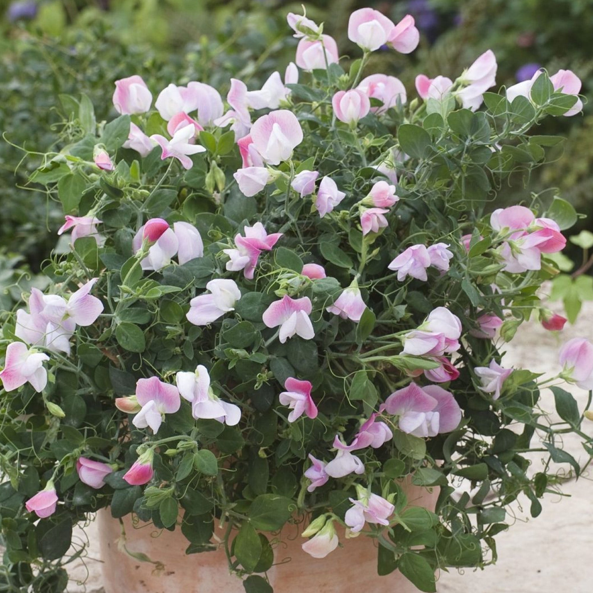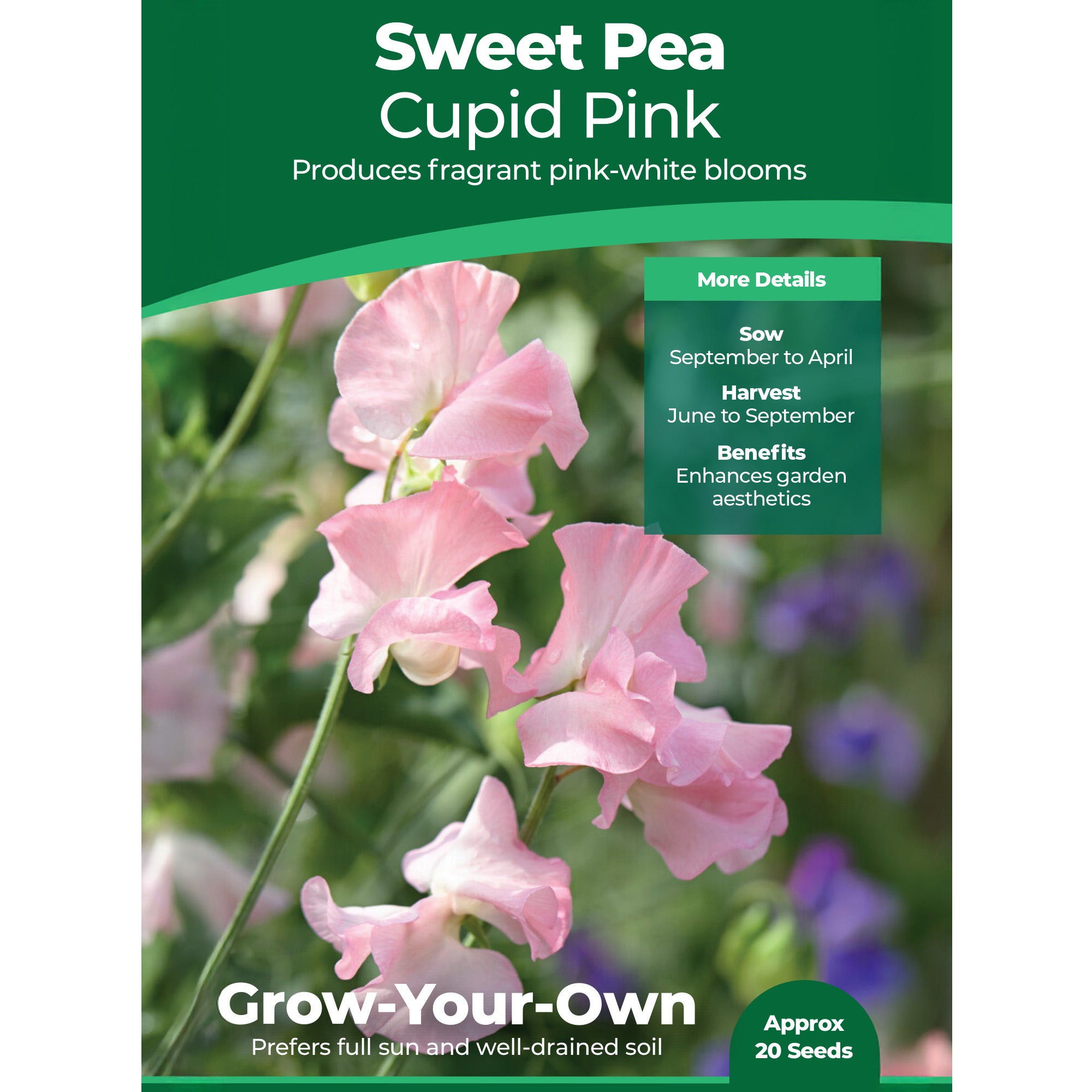 These Cupid Sweet Pea seeds produce an attractive summer display of dwarf Sweet Peas. The blooms are highly fragrant and are ideal for planting up beds, baskets, planters, and pots. Sweet Pea seeds are easy to grow and are fabulous for adding summer colour to the garden or patio.