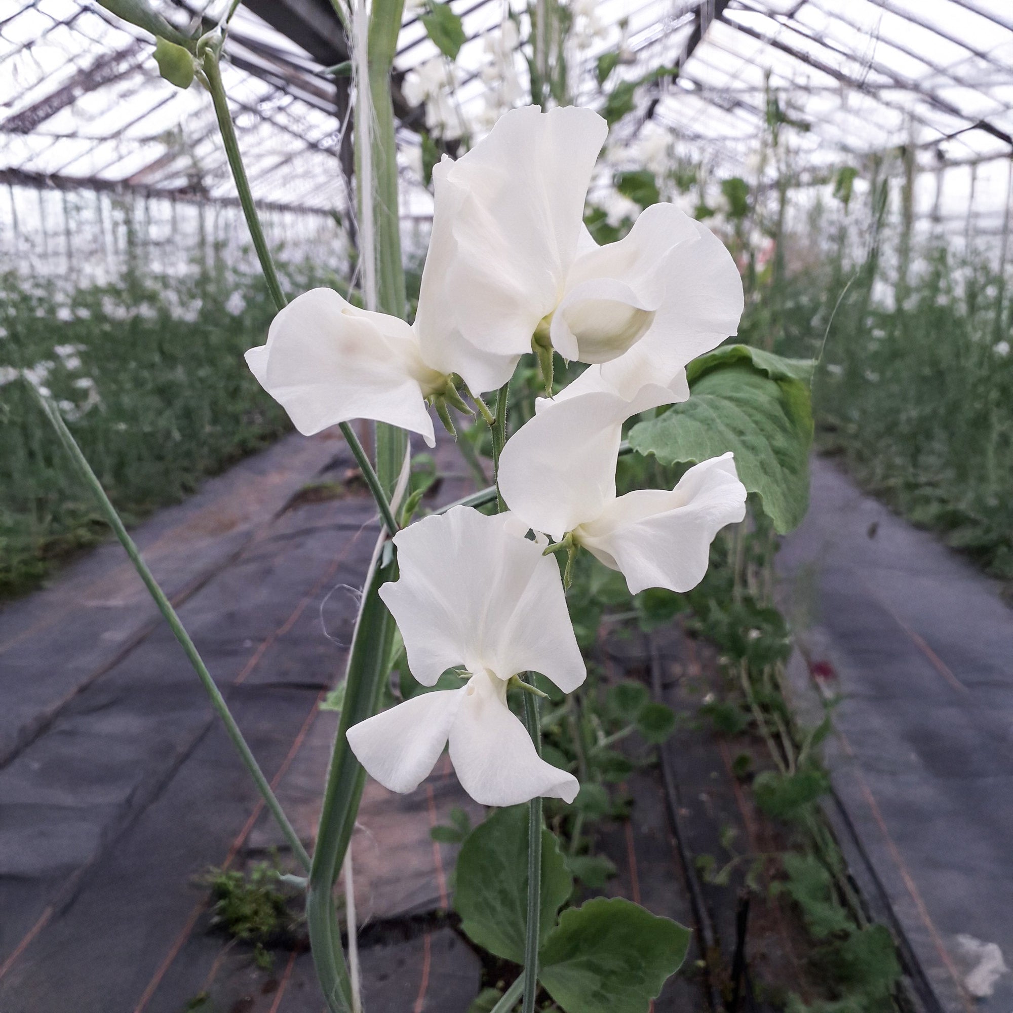 White Ensign is an elegant Spencer type Sweet Pea boasting large, ruffled flowers of striking pure white. Flowering from May to September, these Sweet Peas are highly fragrant, with a strong, heady scent. They are ideal for cut flower arrangements, lasting up to 5 days in a vase indoors.