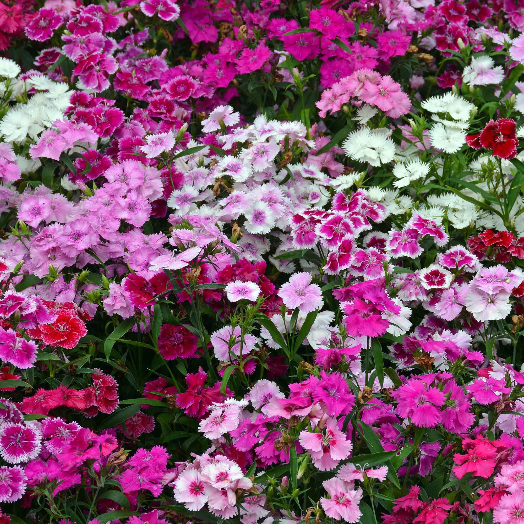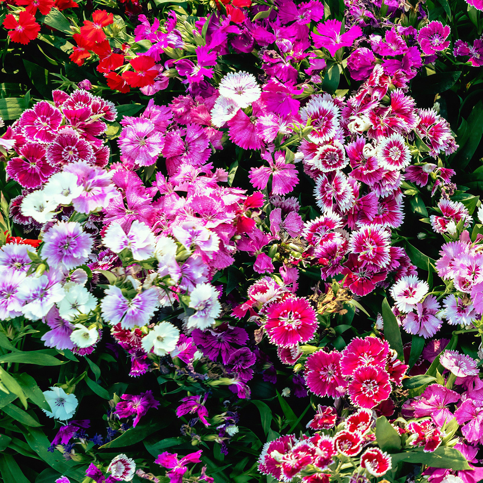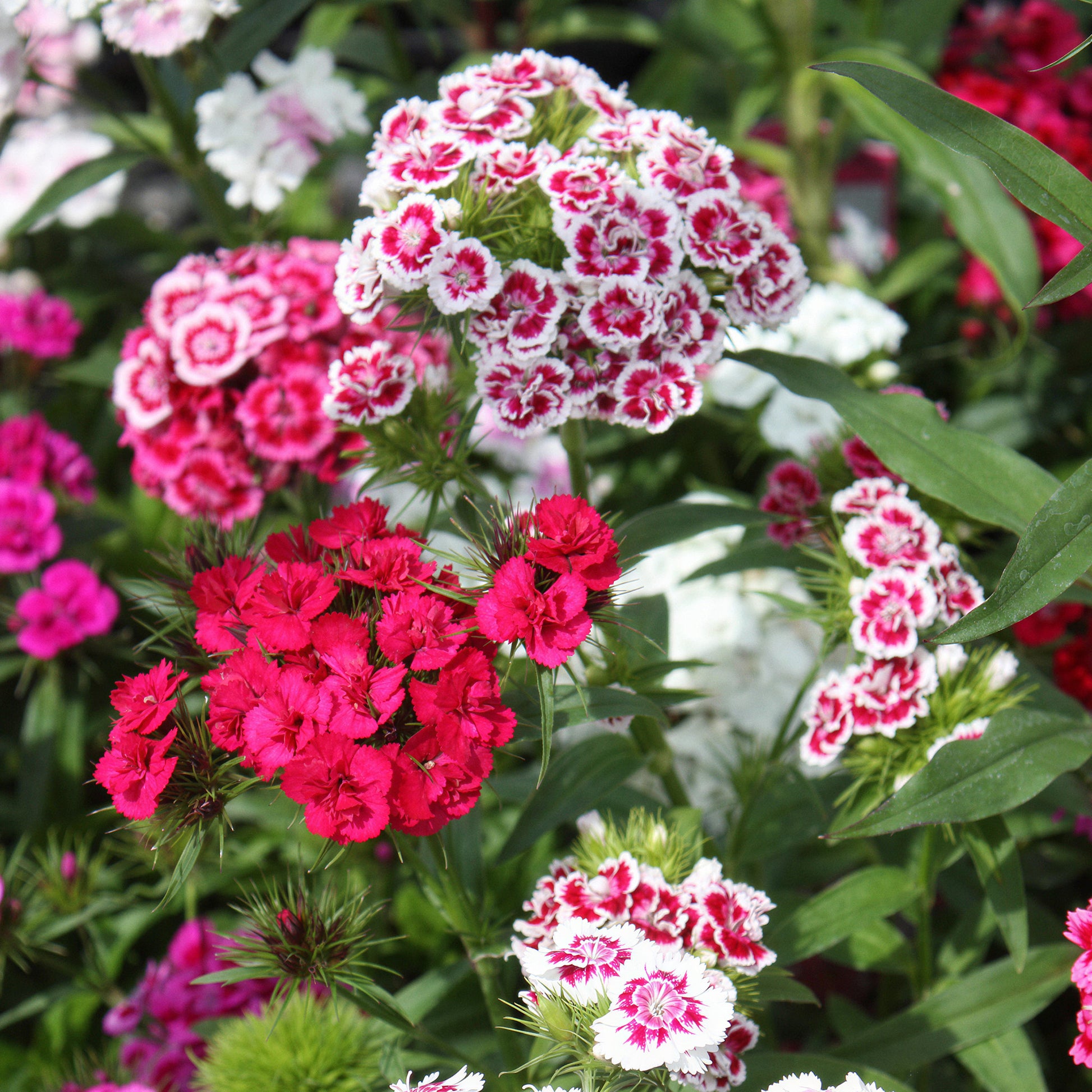 This classic Sweet William 'Indian Carpet' is a dwarf variety, perfect for creating a rich carpet of colour at the front of borders, along paths, or in containers. Its low-growing, spreading habit becomes covered in dense clusters of fragrant, clove-scented flowers. The blooms come in a wide range of jewel-like colours, often with beautiful contrasting eyes, and are a magnet for pollinators like bees and butterflies.
