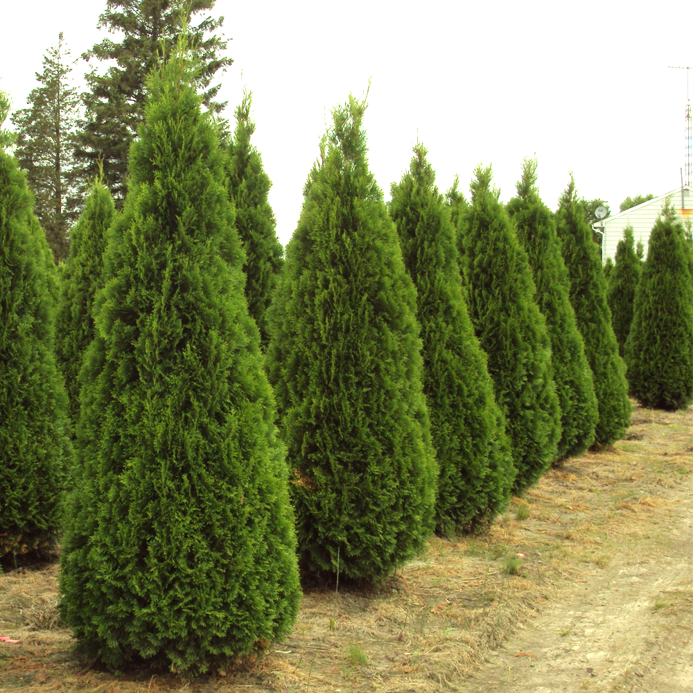 Thuja Smaragd is a brightly coloured evergreen conifer that has a neat, upright and conical shape. It develops dense, vibrant emerald green aromatic foliage that is tipped with a deep bronze colour, giving off almost a golden glow in winter, a few of these planted in a row will eventually grow to make a fine inter-locking screen hedge.