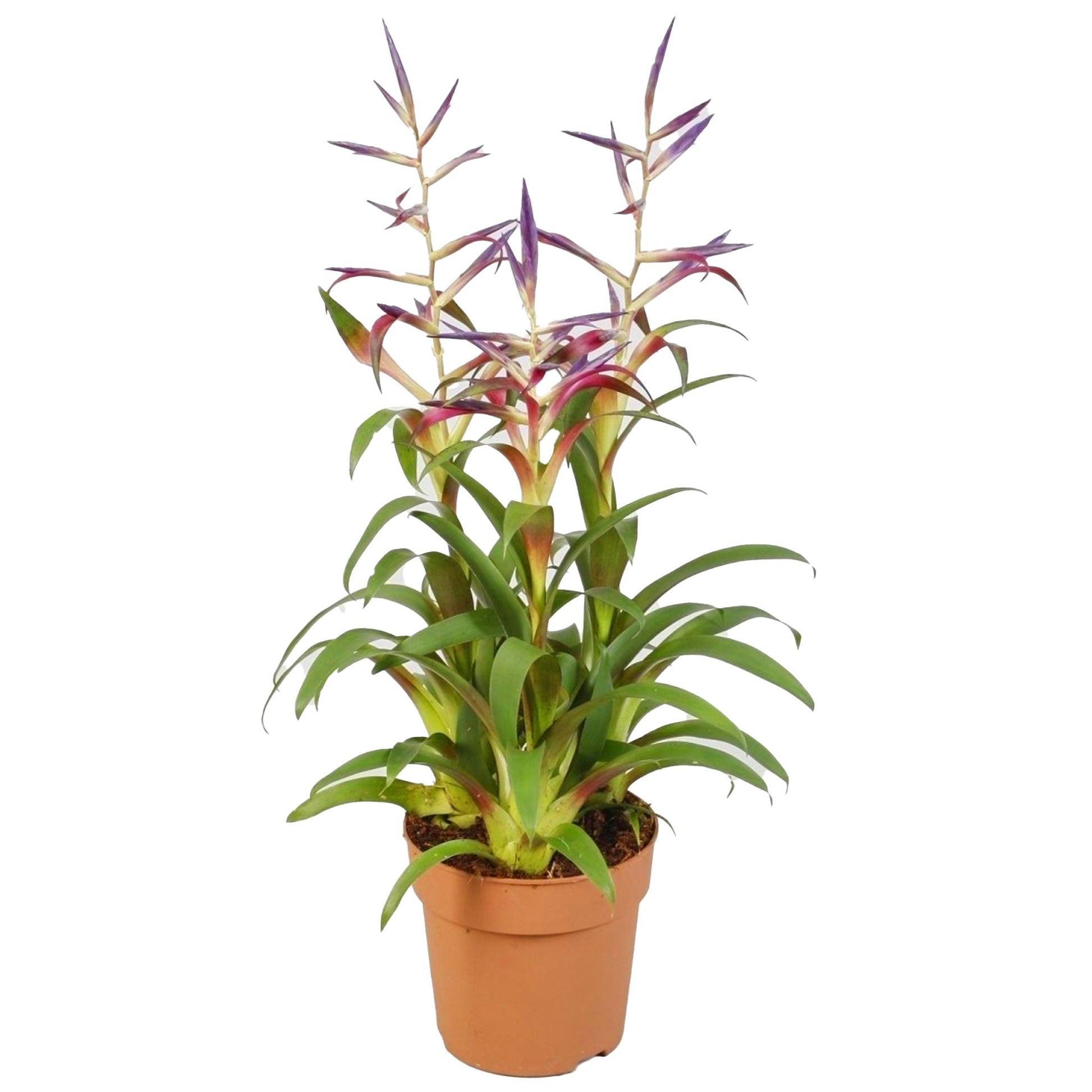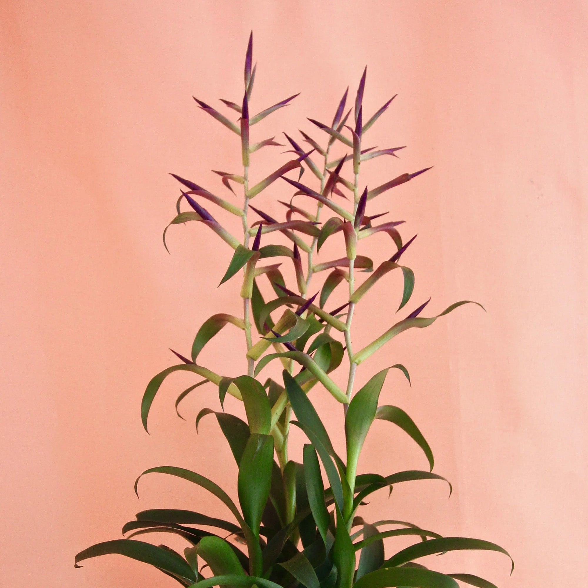 Tillandsia leiboldiana Mora is a perennial cultivar of the Bromeliaceae plant family. This houseplant brings evergreen, year-round foliage and effective flowering to guarantee a standout addition to any home or office. Each leaf is upright and arches outwards at the peak, alongside a central stem that bears small purple flowers and lengthy purple bracts in Summer. This variety will also reach an ultimate height of 0.6m and spread of 0.4m.