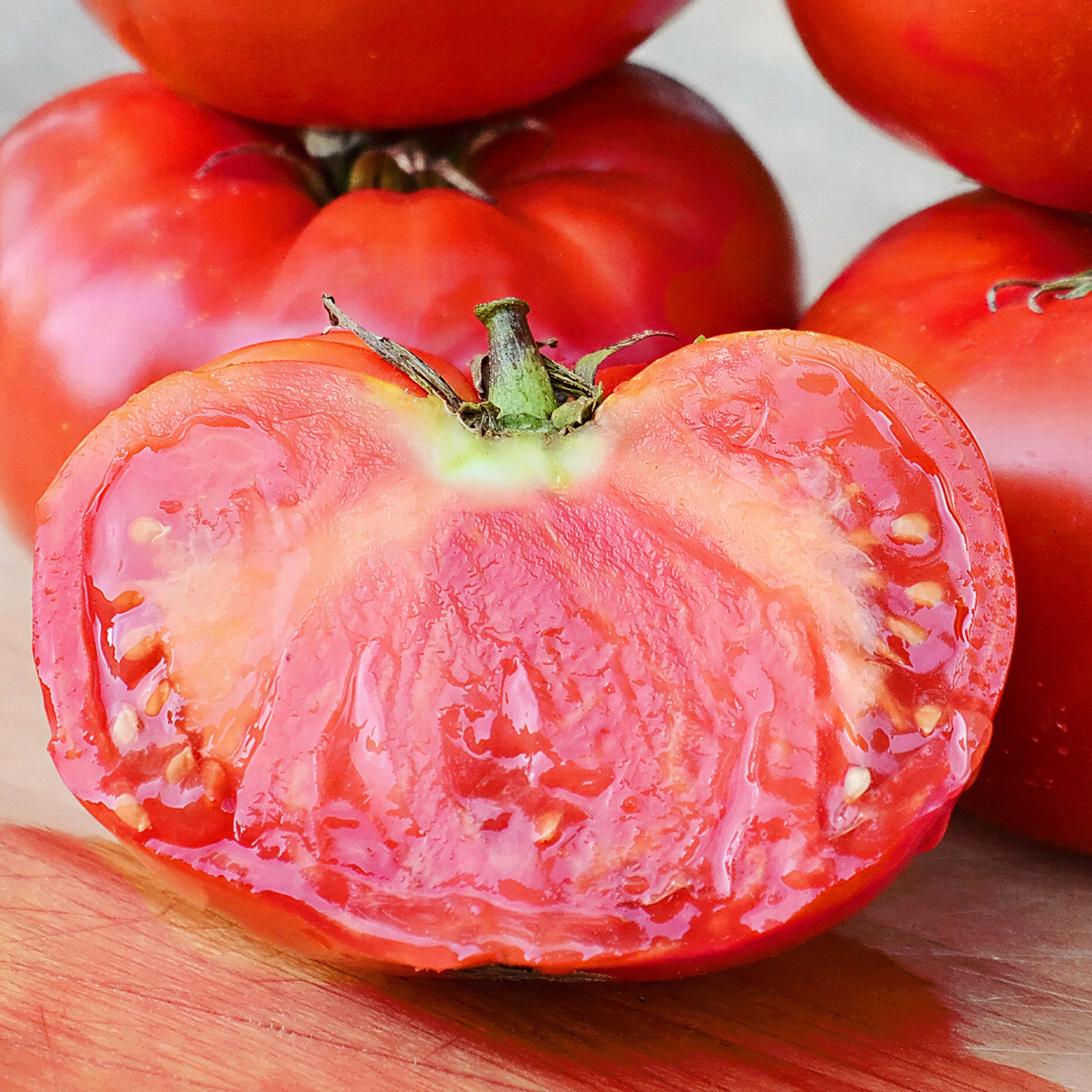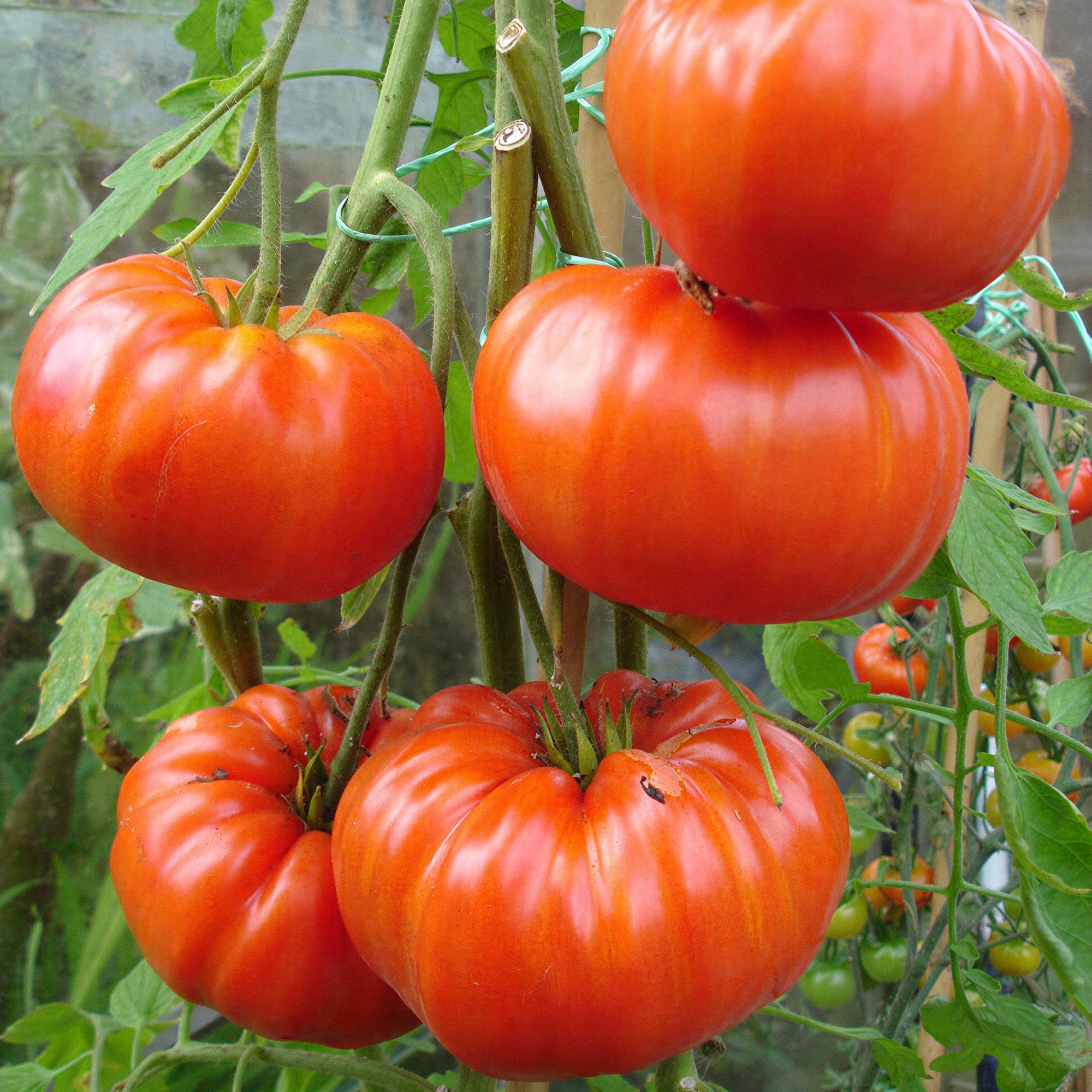 Tomato 'Buffalosteak' is a high-performing F1 hybrid beefsteak variety, renowned for producing huge, meaty fruits with an excellent flavour and very few seeds. This productive cordon variety grows as a tall vine, yielding large, deep red tomatoes that are perfect for slicing for sandwiches and burgers. Its good disease resistance makes it a reliable choice for growing in a greenhouse or a warm, sheltered spot, promising a truly impressive harvest.