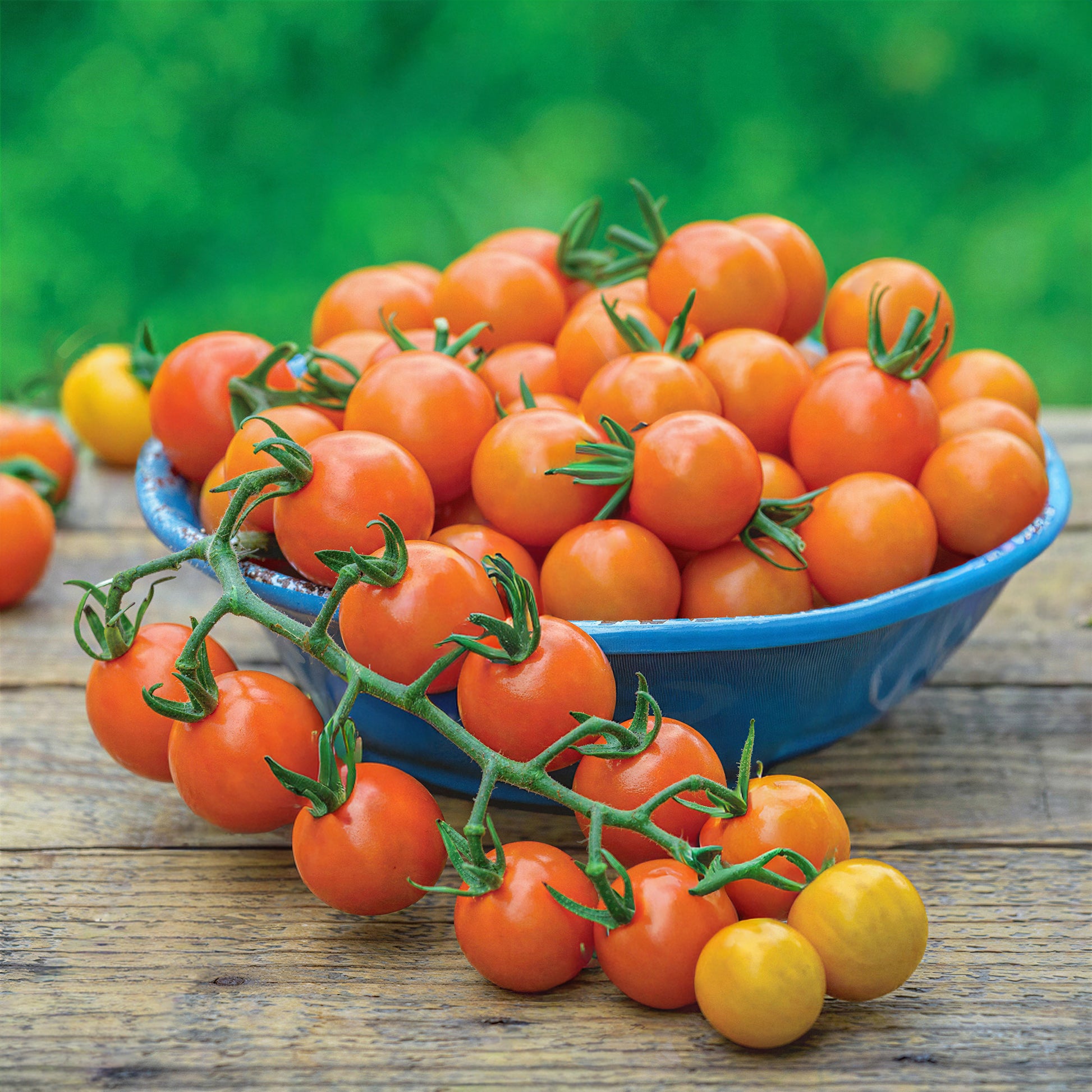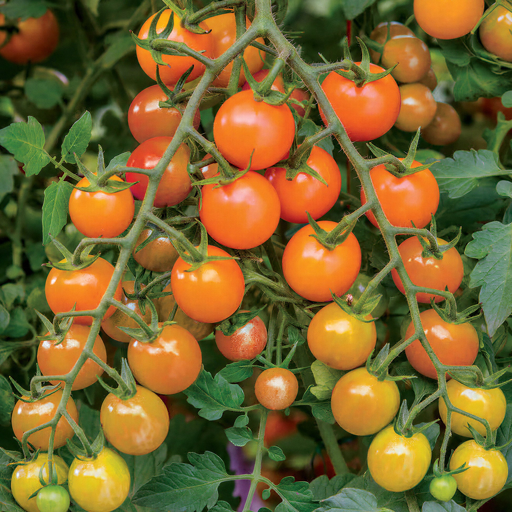 Tomato 'Honeycomb' is an exceptional F1 hybrid cherry tomato, celebrated for its unique colour and intensely sweet flavour. This productive cordon variety grows as a tall vine, yielding long, cascading trusses of beautiful, golden-orange fruits. The tomatoes have a delicious honey-like sweetness and a crisp texture, making this award-winning variety a superb choice for a greenhouse or warm, sheltered spot for a gourmet harvest.