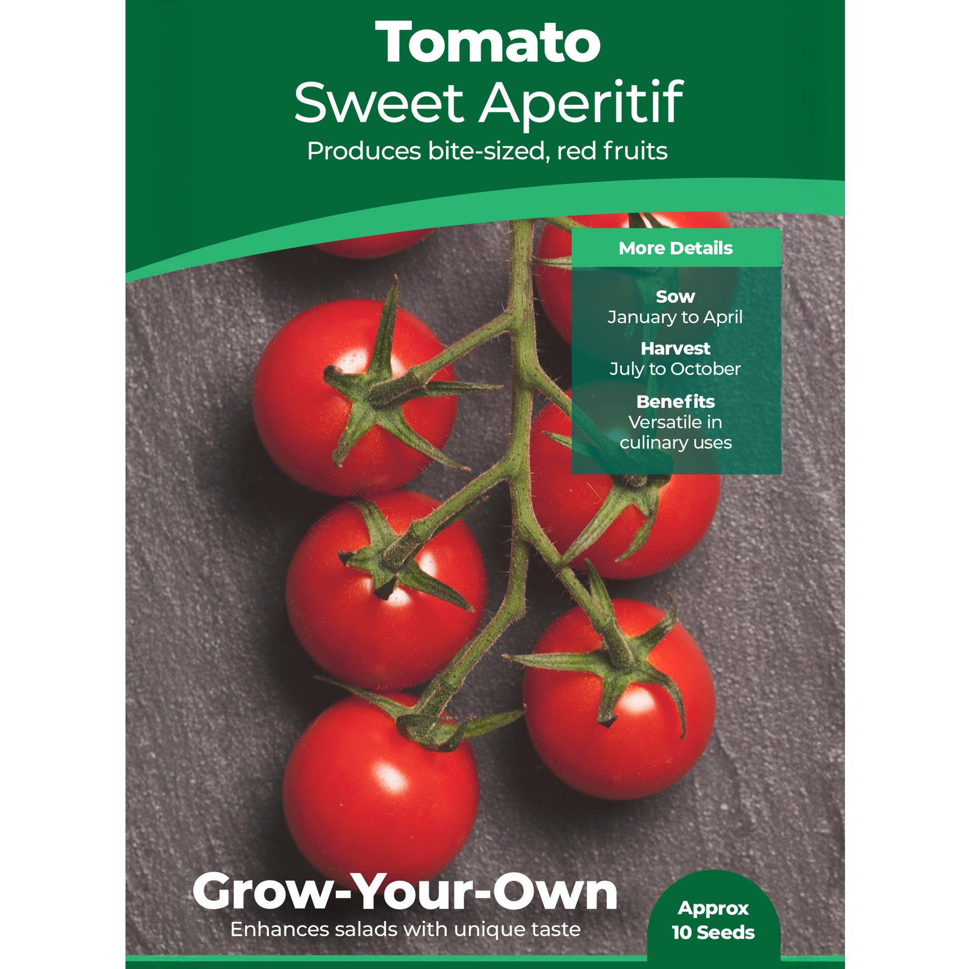 Tomato 'Sweet Aperitif' is a highly sought-after cherry tomato variety known for its incredibly sweet flavour and juicy texture. This variety produces small, vibrant red fruits that are perfect for adding a burst of flavour to salads, snacks, or as a garnish. 'Sweet Aperitif' is a high-yielding variety, making it an excellent choice for both home gardeners and those looking to grow vegetables in the UK. The plants are vigorous and can be grown successfully in both outdoor garden beds and greenhouses, providing a continuous harvest throughout the summer months.