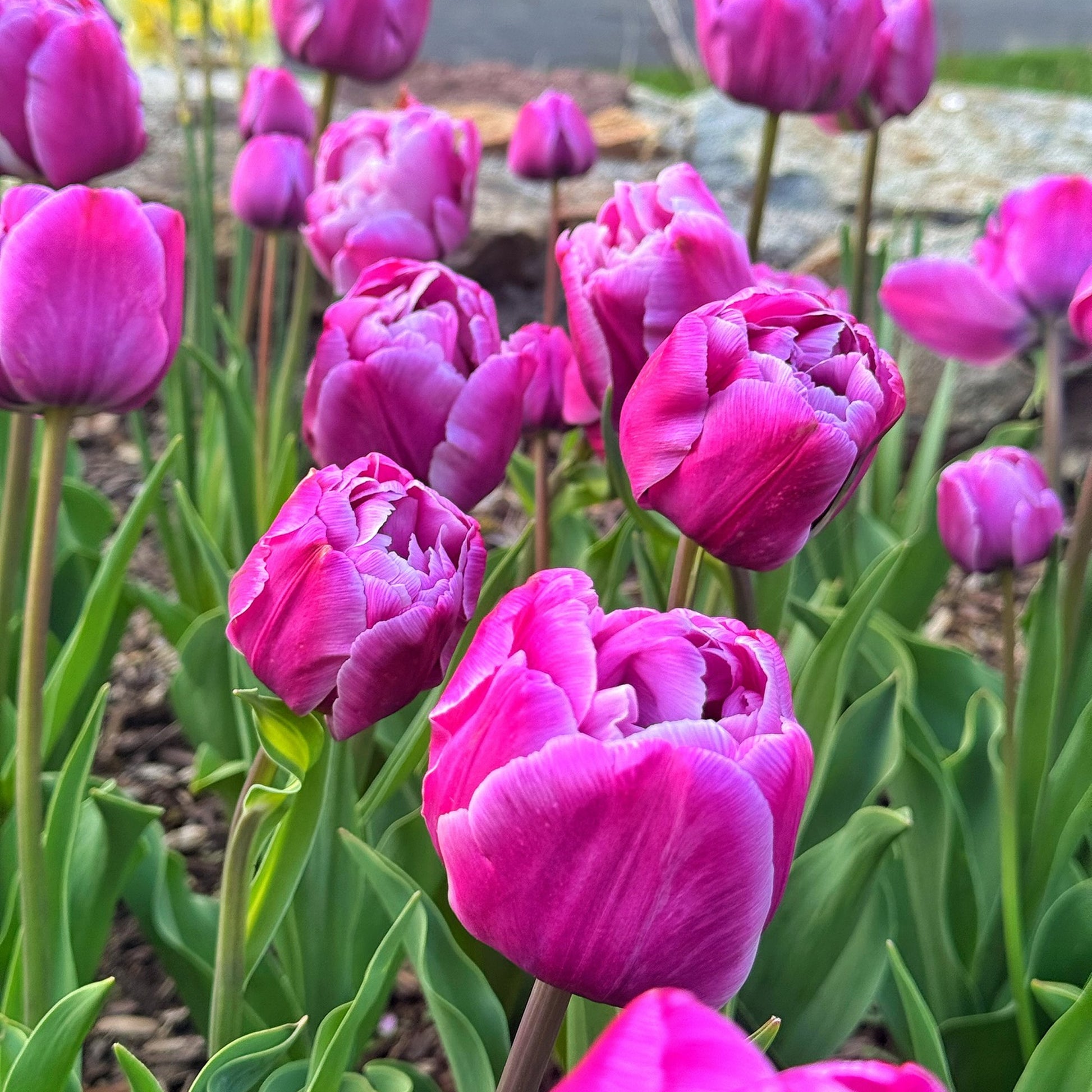 To extend bloom time, deadhead tulips after flowering and let the foliage die back naturally to nourish the bulbs for next year.