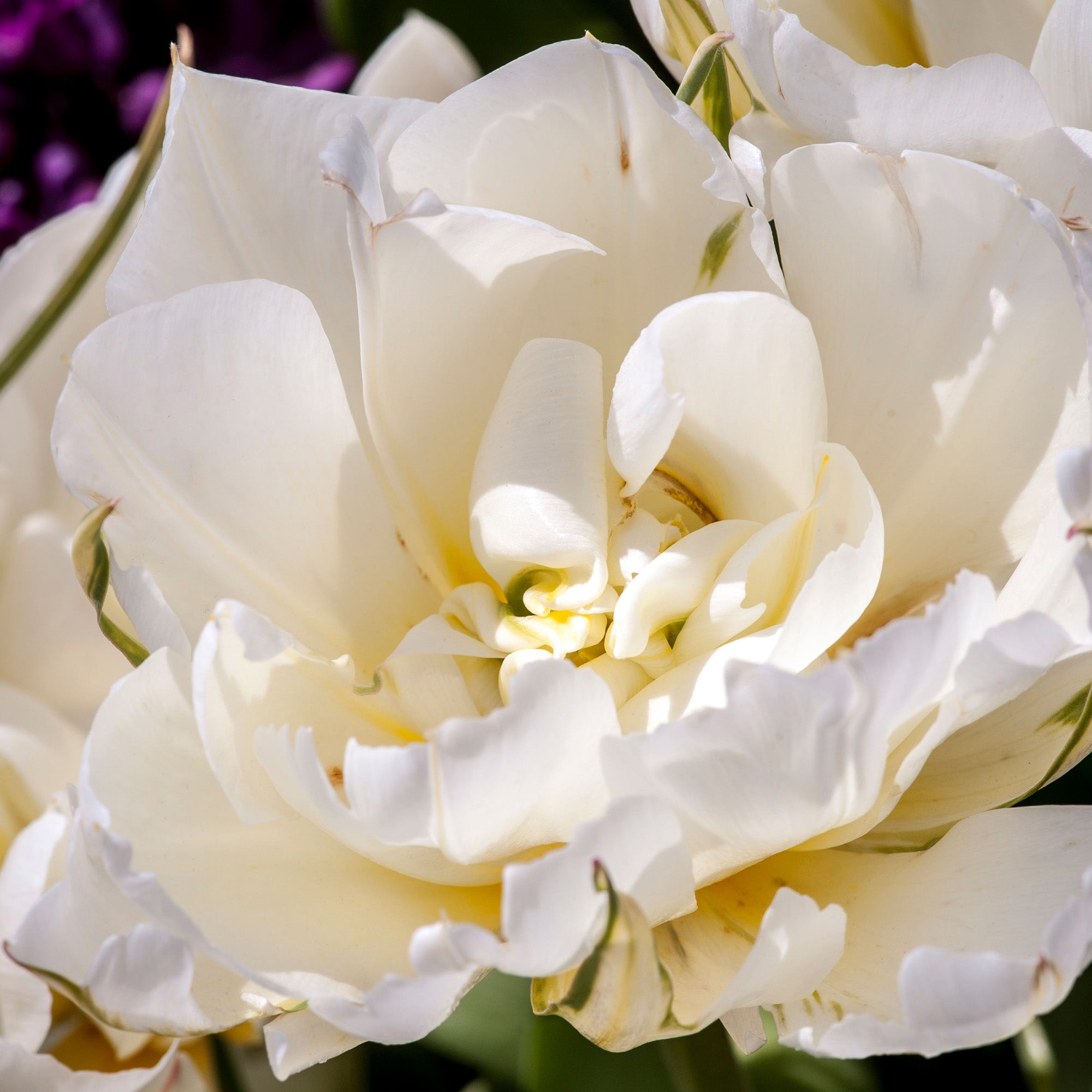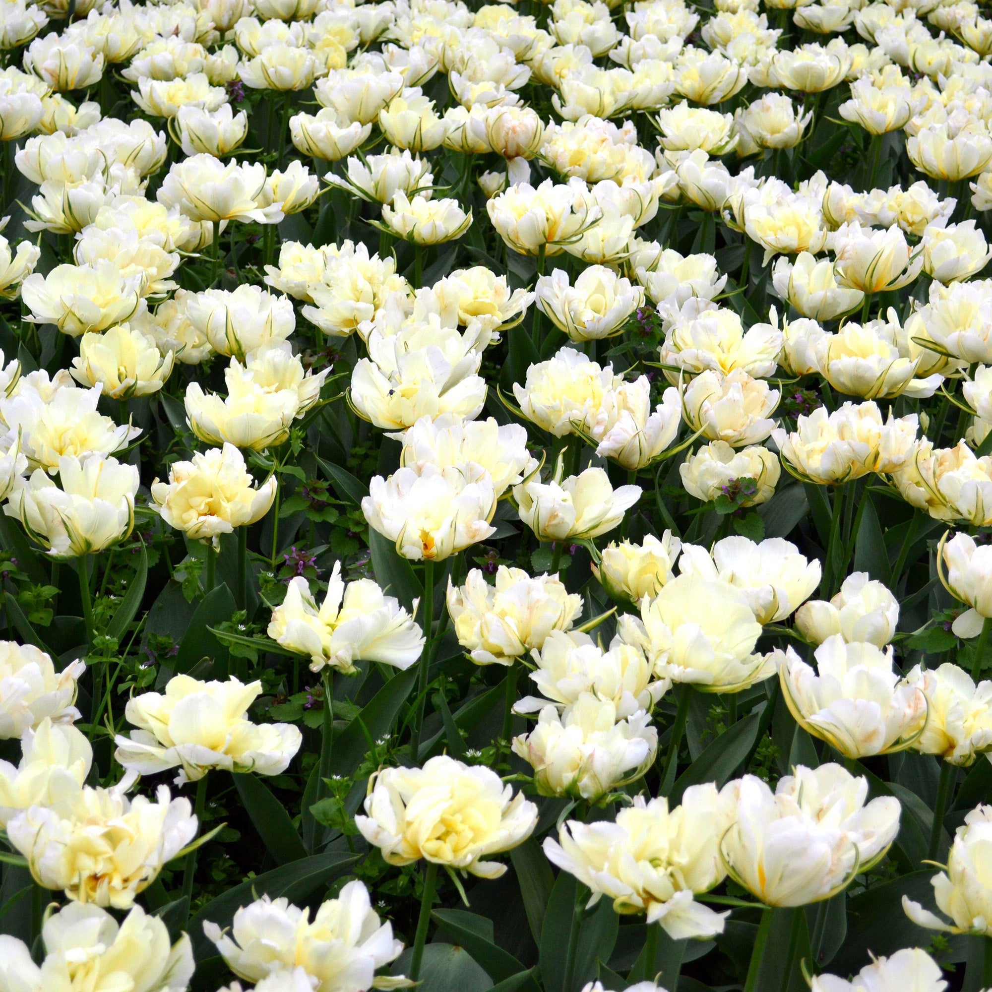 Boasting fully double flowers with lots of ruffled petals, these Mount Tacoma Tulip bulbs produce an attractive show of elegant blooms. They are perfect for beds and borders but also grow well in patio pots, where the creamy-white flowers will be the envy of your neighbours. The long-lasting blooms open out from pink and green buds, flowering from April to May. The flowers are similar in appearance to Peonies and grow upright on stems above a bed of lanceolate grey-green foliage.