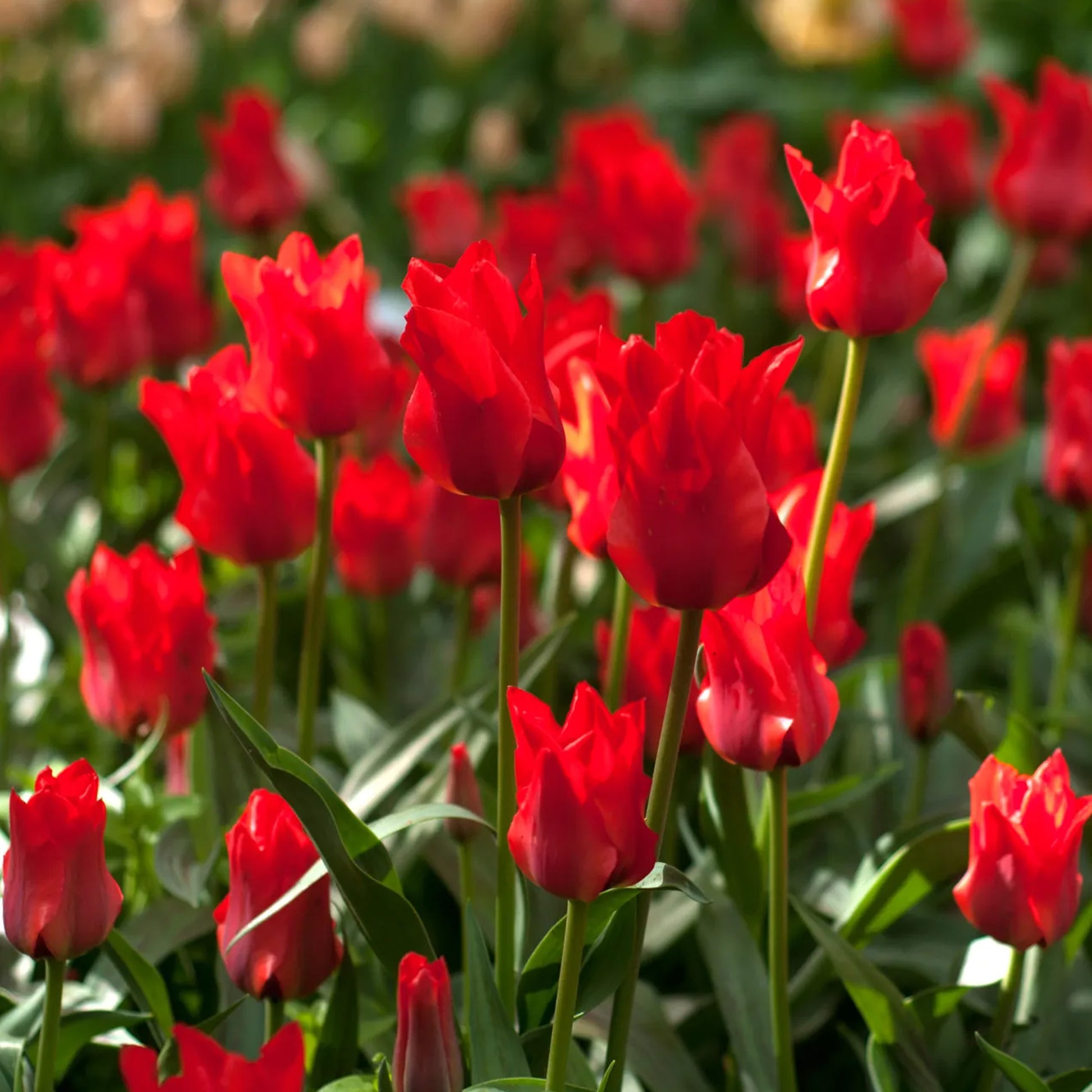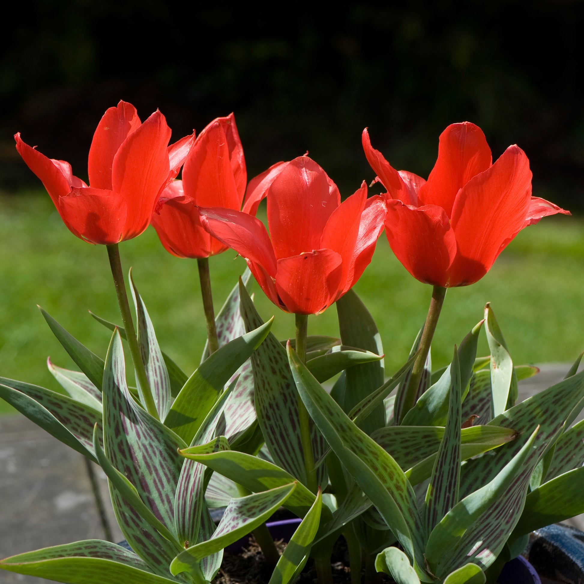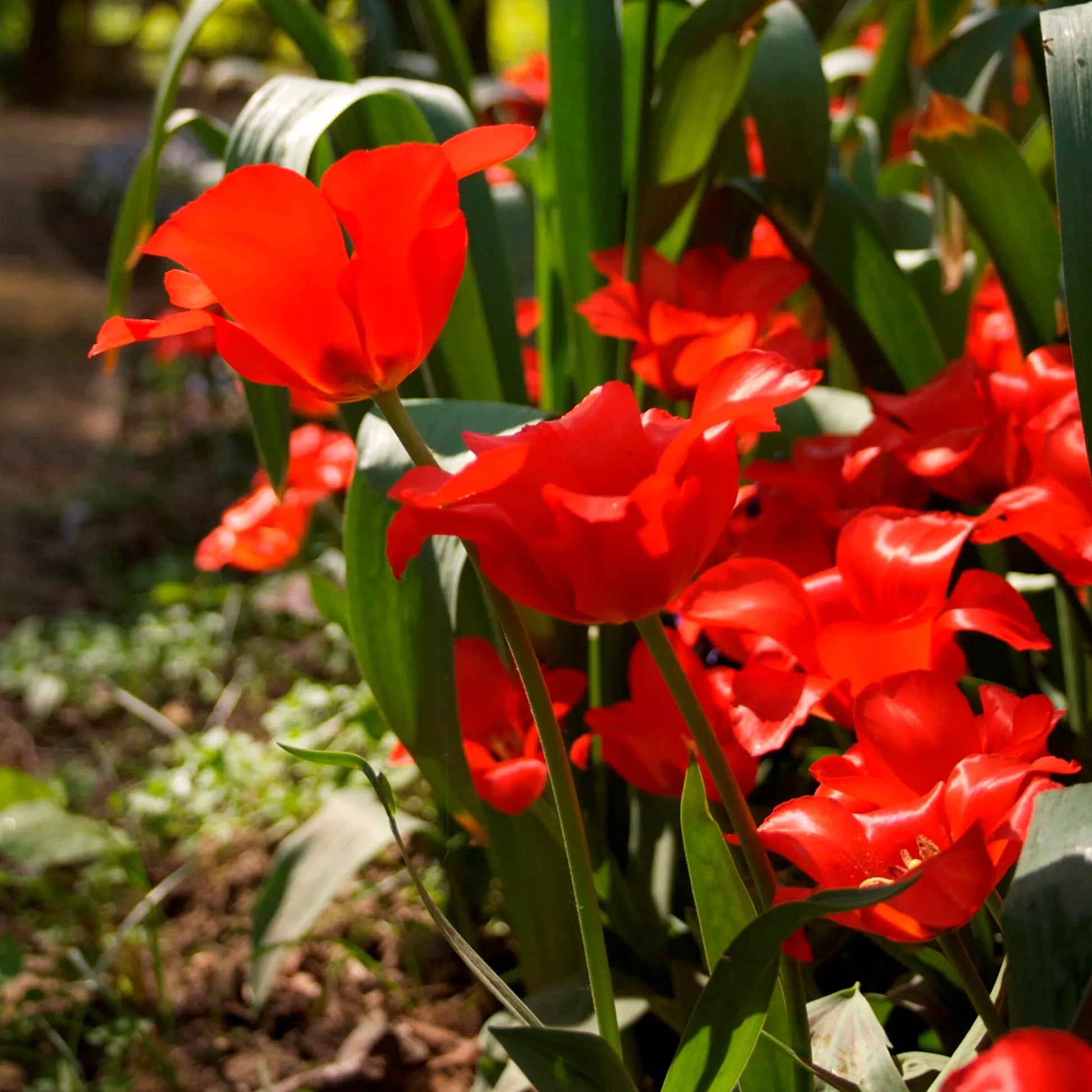 Water tulips lightly after planting to settle the soil. Once they begin to grow, water regularly but avoid soggy conditions. Reduce watering once the flowers begin to fade, allowing the foliage to die back naturally.