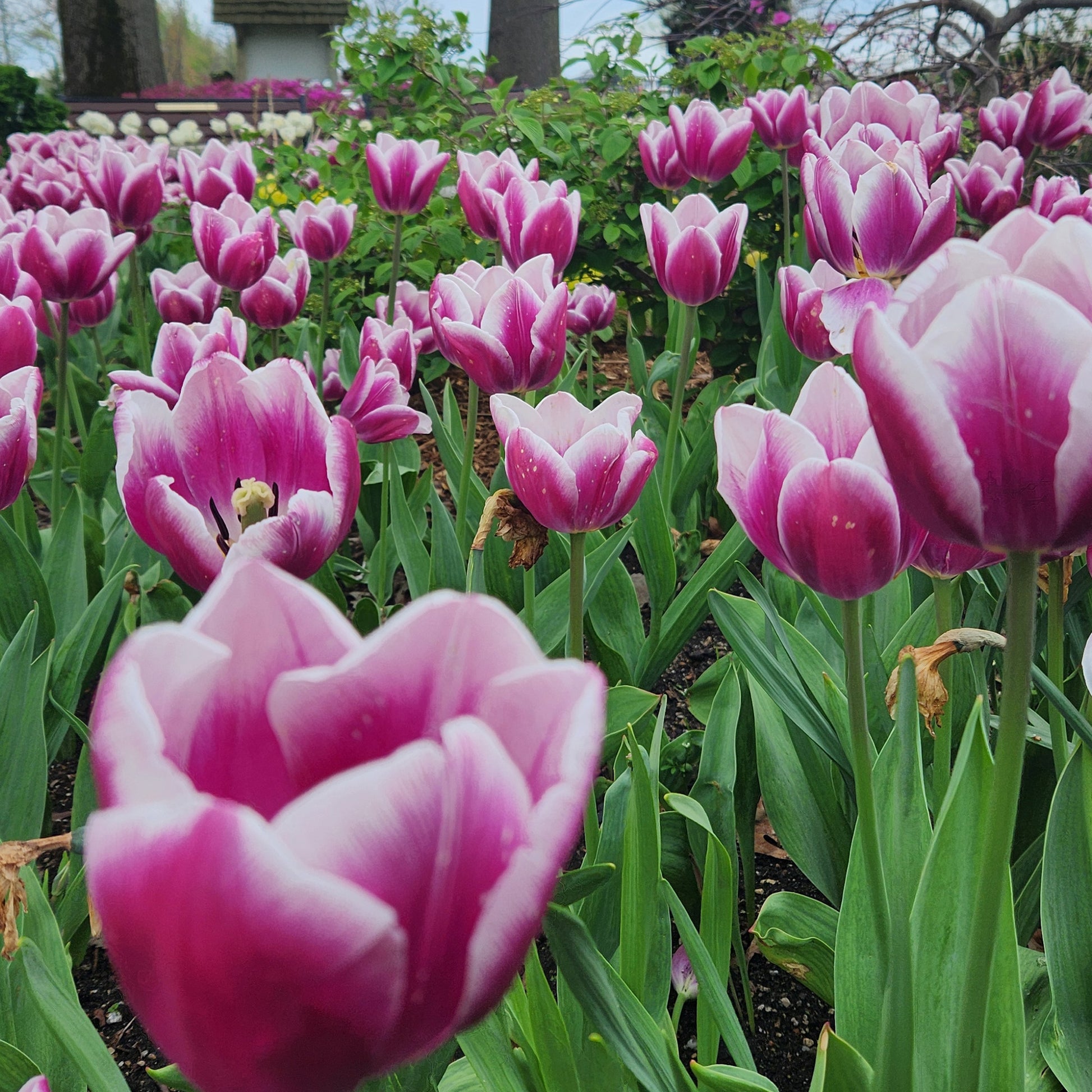 To extend bloom time, deadhead tulips after flowering and let the foliage die back naturally to nourish the bulbs for next year.