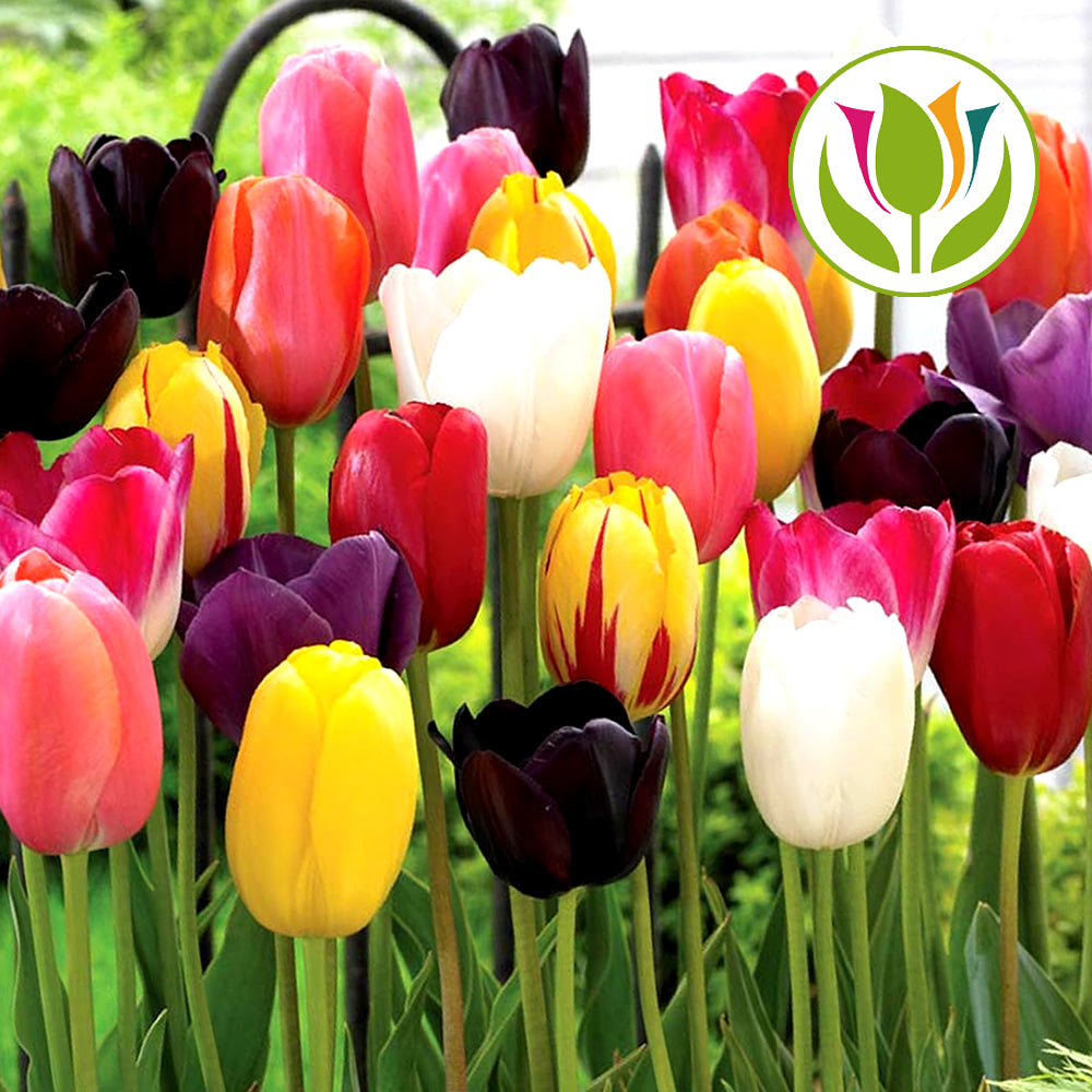 Sturdy and colourful, these magnificent tulips begin to bloom in early April, and with superb weather resistance they will continue for longer than most garden varieties. The bold colours and strong upright stems make this mix particularly good for cutting.
