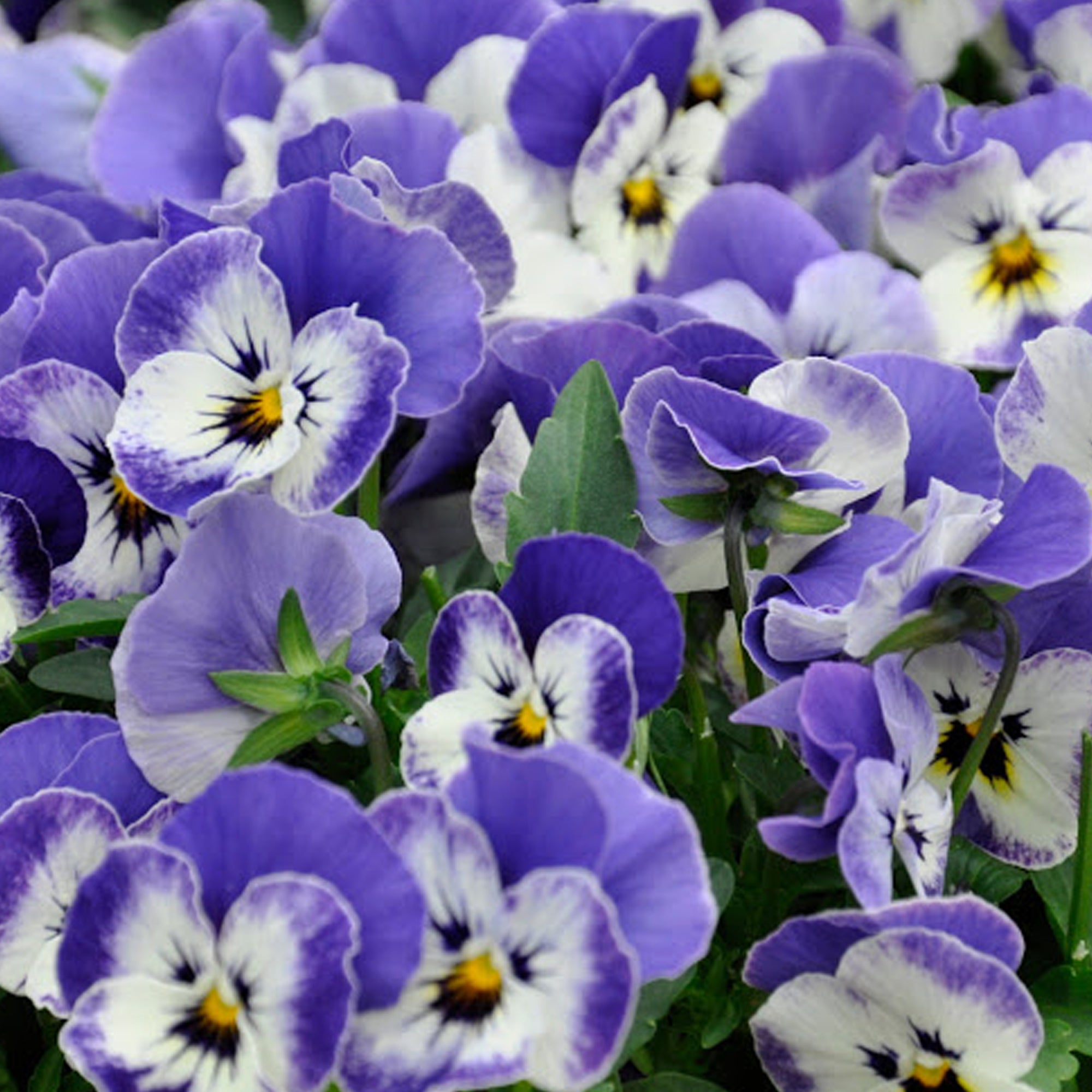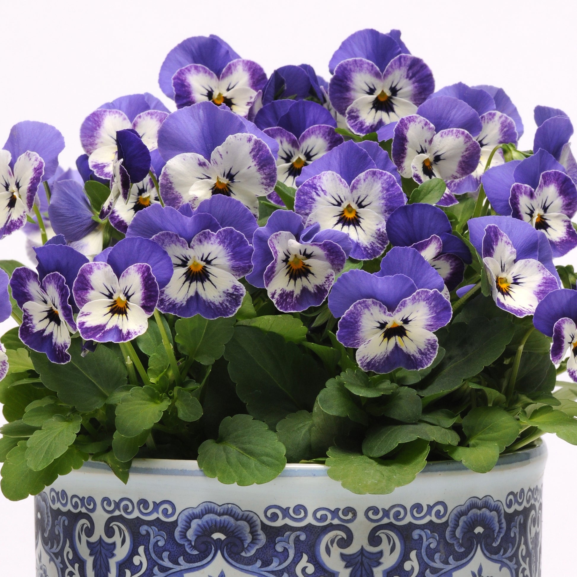 This six pack of Viola Delft Blue bedding plants have a gorgeous design within their petals, making them standout in flower beds and plant displays. A bright yellow bud features in the centre of the flower, with a slight black feature dispersing out from that, before white and purple fill out the rest of the flower to create a stunning, eye-catching look. These plants will flourish above lush, green foliage when they bloom in Autumn, right through to Spring. They can be planted straight from the tray upon arrival, flourishing with ease when given the correct care.