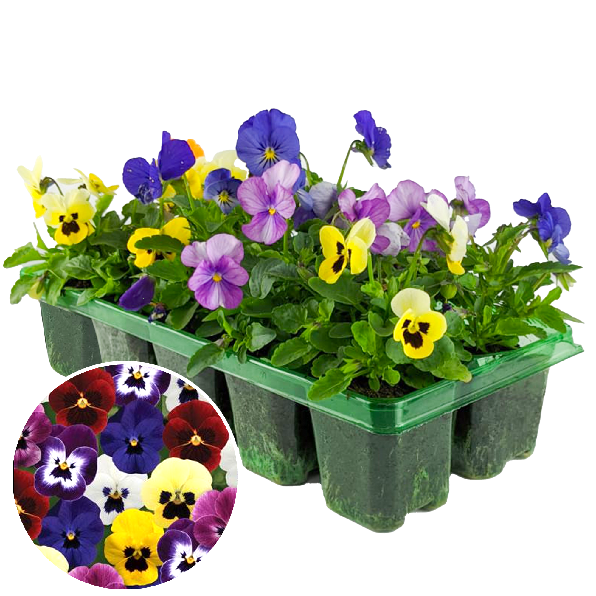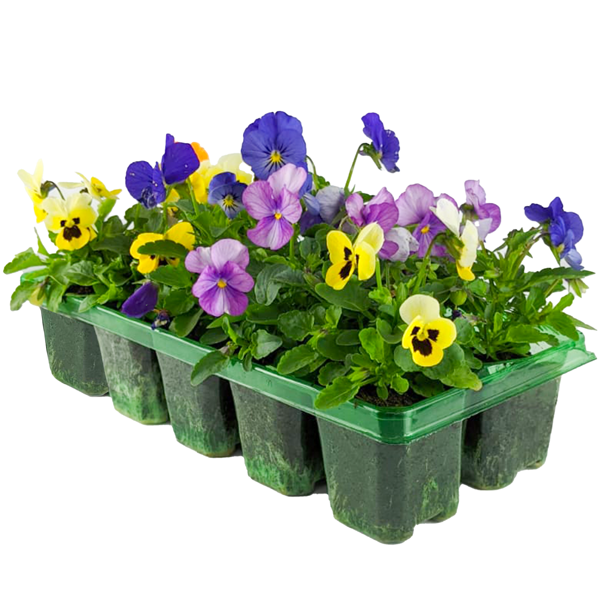 Plant Viola bedding plants in moist, well-drained soil in full sun or partial shade. These compact and free-flowering plants are ideal for borders, containers, and seasonal displays. Space plants 15–20cm apart to create a dense, colourful carpet of blooms.