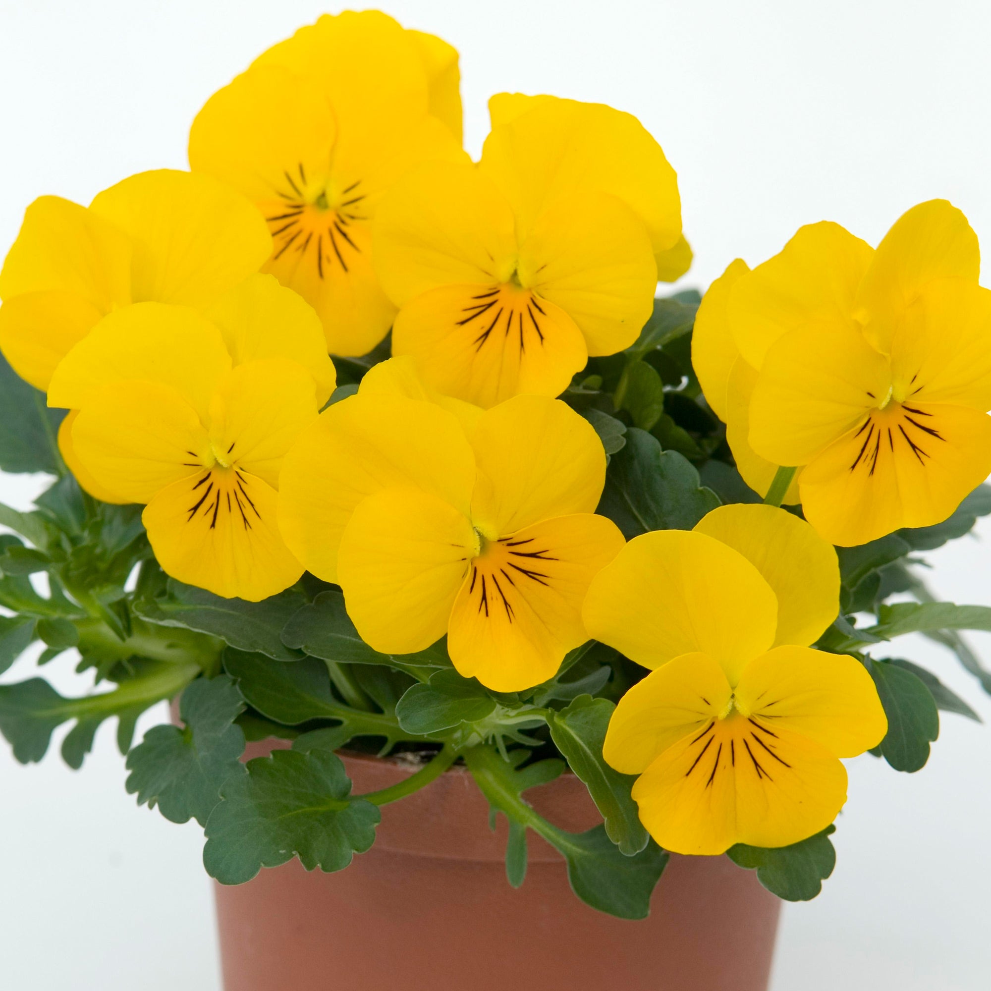 This six pack of Viola Yellow bedding plants feature a solitary yellow colour throughout their petals. This vibrant shade, and the lush, green foliage below, ensures that the plant remains eye-catching and appealing to visitors, neighbours and passers-by throughout the growing season of these Violas. They will begin blooming in Spring, carrying that through to Autumn, with the potential to flower in Winter as the plants have tremendous hardiness. They can be planted straight from the tray upon arrival, flourishing with ease when given the correct care.