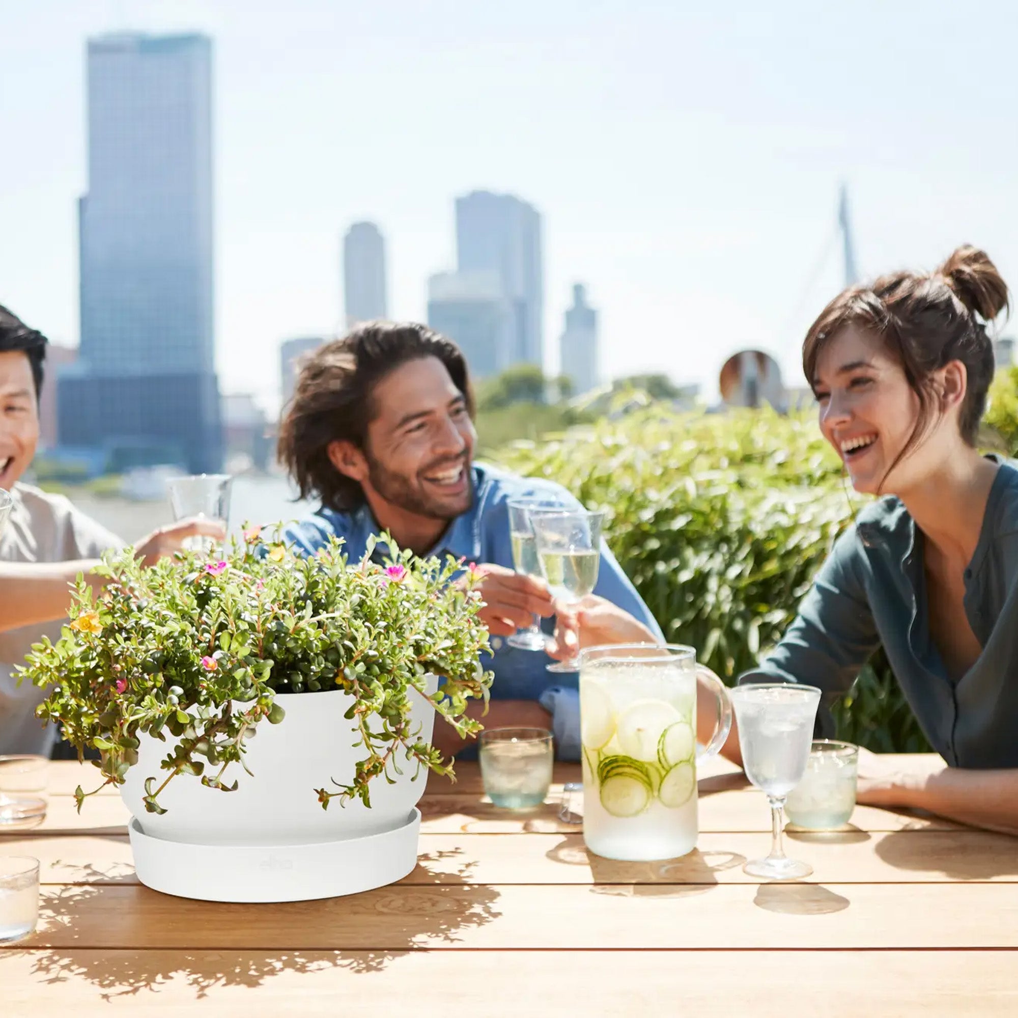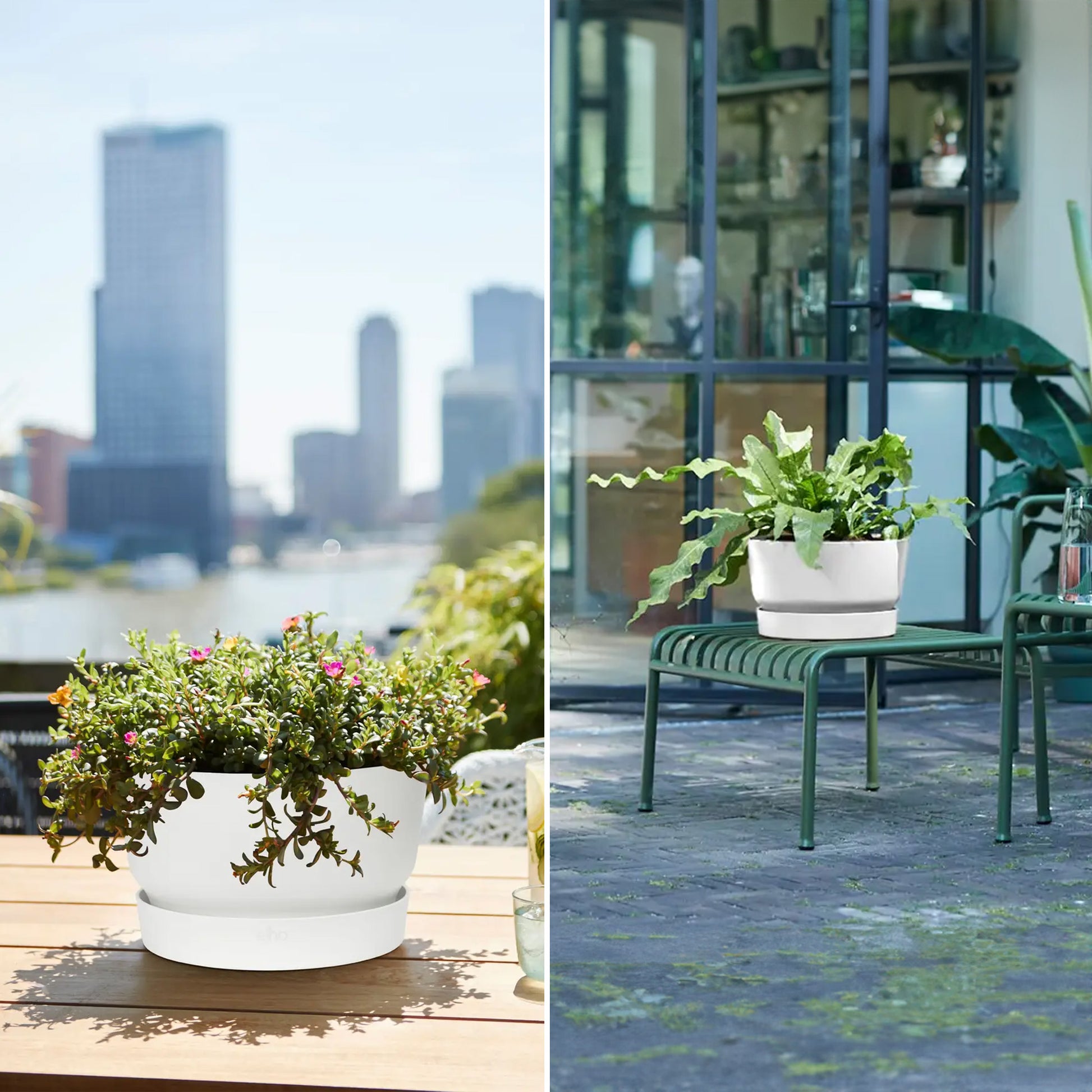 The White Elho Greenville Bowl Pot is a great option for planting many varieties of outdoor plants in and around your garden. Coming in an array of sizes, you'll have plenty to choose from to fit your displays. The bowl-like shape of the pot is ideal for the most popular shrubs, perennials and herbs that gardeners grow. It will add colour and character to your outdoor space, as well as a simple, modern look to patios, pathways and more.
