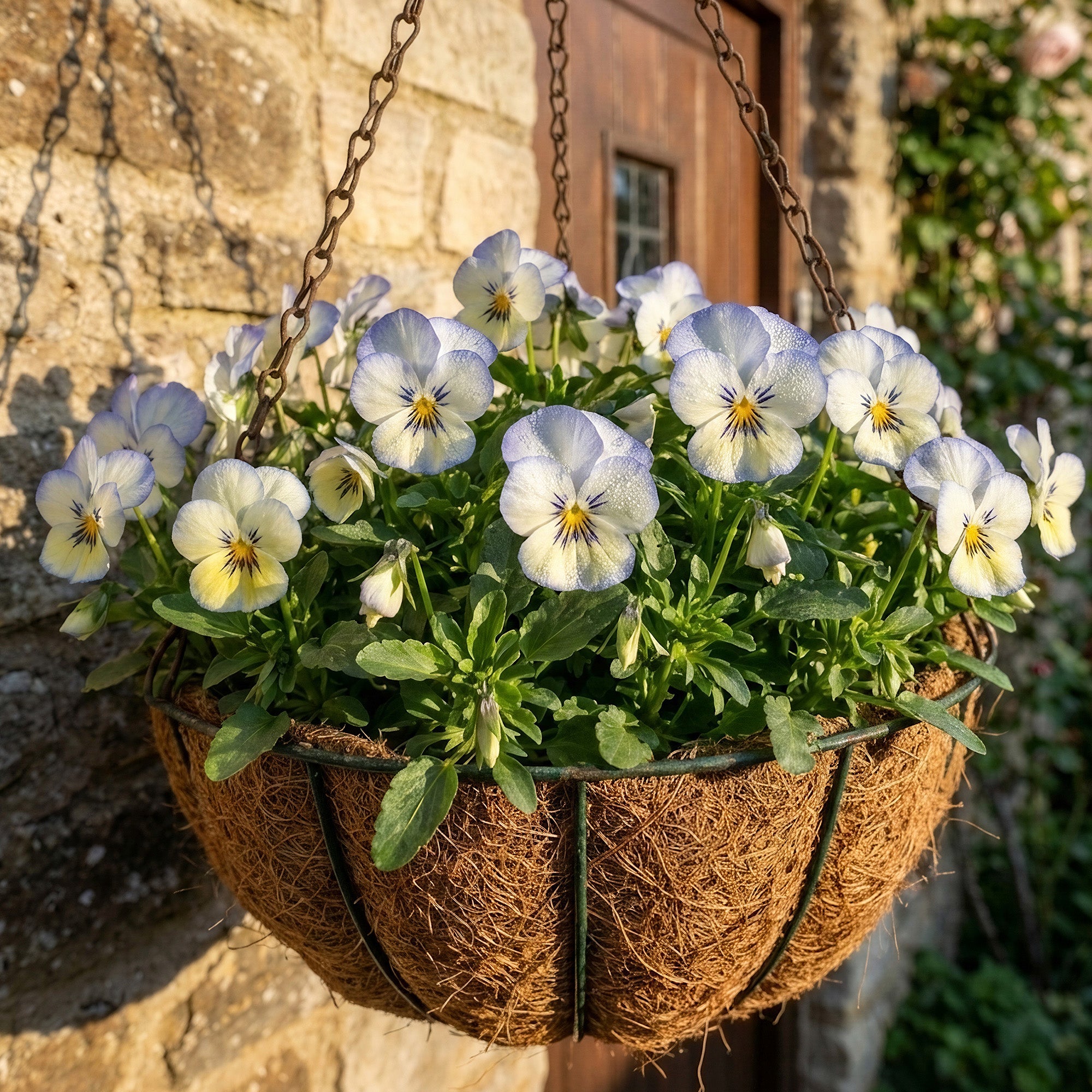 Plant Violas directly into borders, containers, or hanging baskets, spacing them evenly to allow for growth. Firm the soil gently around the roots, water well after planting, and position in full sun or partial shade for the best display.