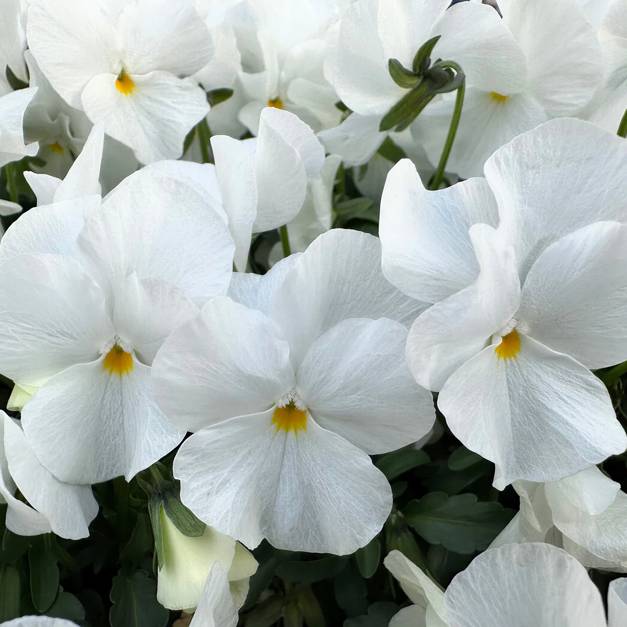 Pair Violas with small evergreen plants (like Ivy or Dwarf Conifers) to give structure and contrast, making the flowers stand out more.
