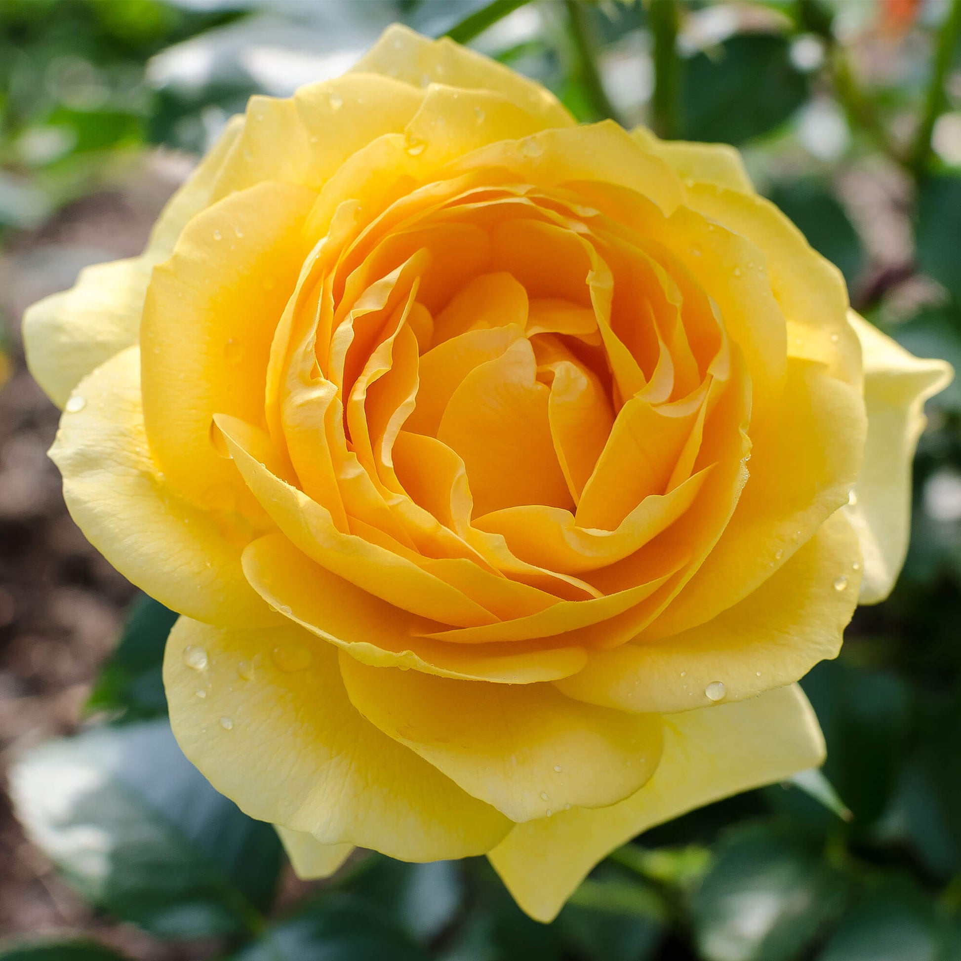 When caring for this gorgeous evergreen, ensuring the soil is kept moist for the majority of the time will allow for greater long term health of our Roses. Drier spells of the year, where rainautumn is not as regular, should see the plant watered thoroughly to maintain that stunning yellow colour. You should then look to apply a general or Rose fertiliser in Spring in order to help the plant flourish, with this being done again in Summer; if growth of the Rose appears to be slow.