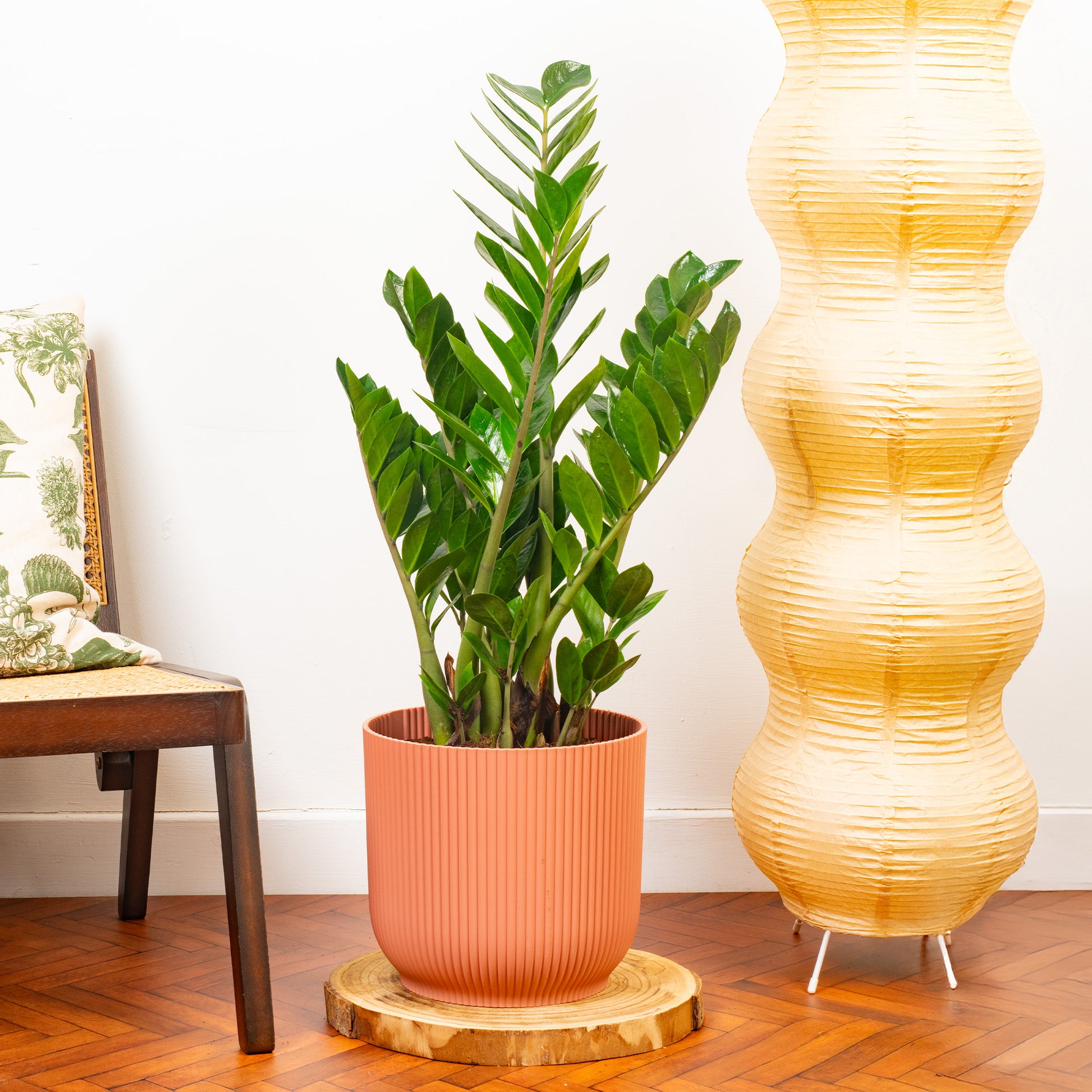 Bring a touch of nature to your home with our Zamioculcas Zamiifolia plant. This stylish and hardy indoor plant is known for its glossy, deep green leaves and distinctive, fleshy stems. This low-maintenance plant thrives in bright, indirect light and low humidity, making it an ideal choice for rooms with limited natural light. With its ability to purify the air and improve indoor air quality, the Zamioculcas Zamiifolia is not only attractive but also beneficial for your health. This plant is easy to care for, requiring occasional watering and well-draining soil to thrive. So, add this beautiful piece of greenery to your home today and enjoy the natural beauty it brings!