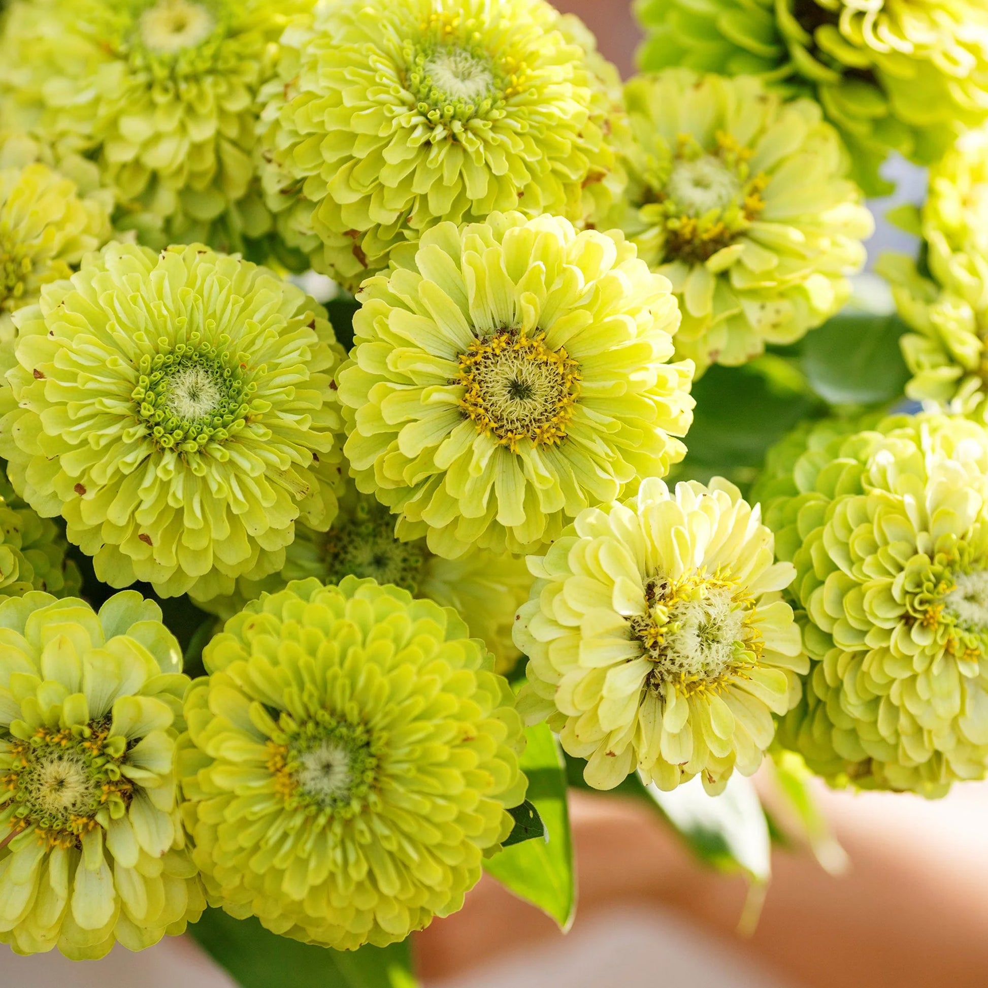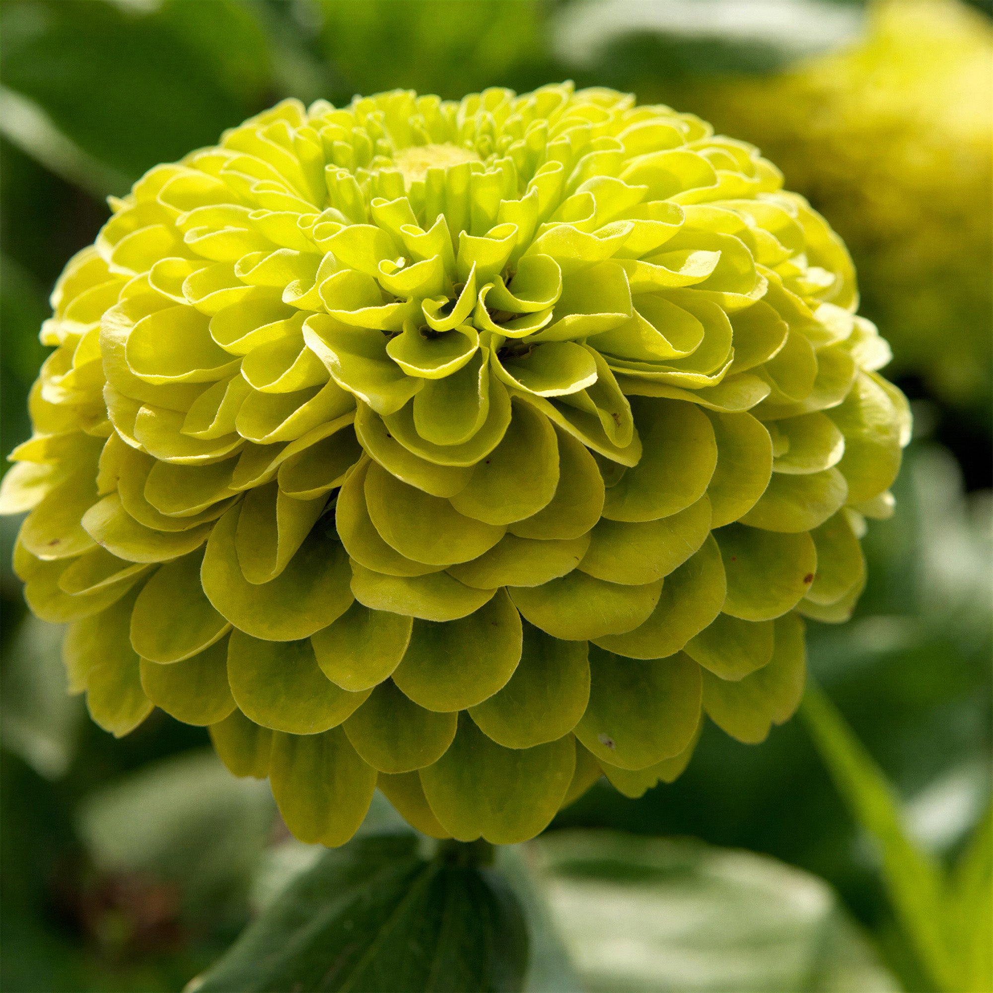 Zinnia 'Envy' is a spectacular and highly unusual half-hardy annual, prized by gardeners and florists for its extraordinary flower colour. This upright, bushy plant produces a profusion of large, semi-double, dahlia-like blooms in a stunning shade of chartreuse-green. 'Envy' is an outstanding and long-lasting cut flower that adds a unique touch to arrangements, and its blooms are also a favourite of butterflies and other pollinating insects.