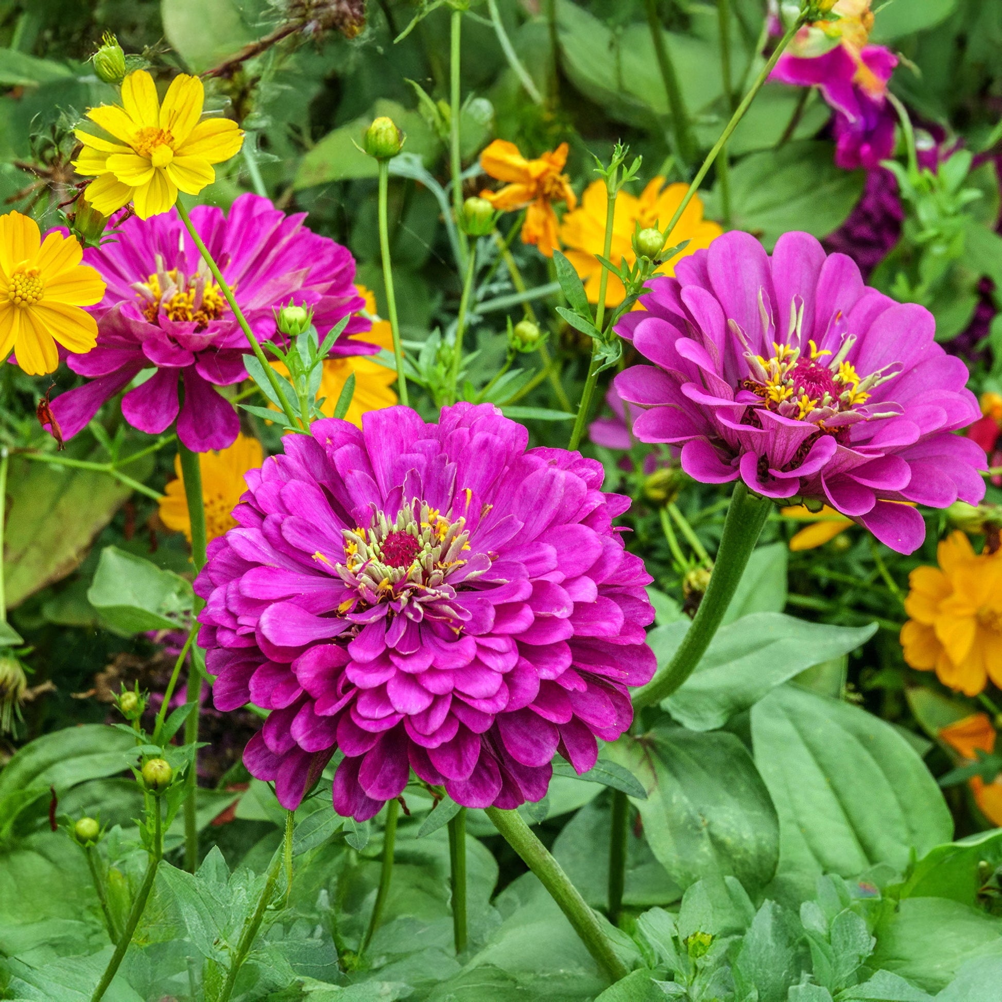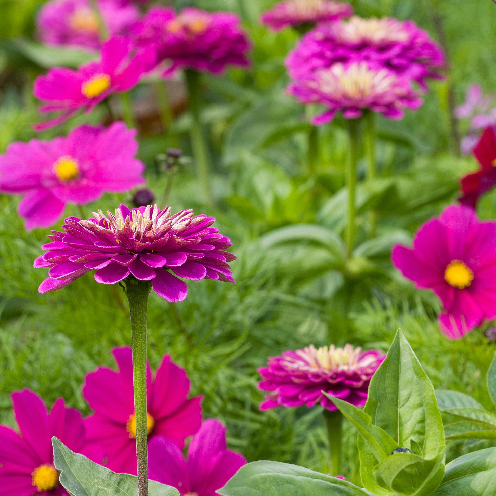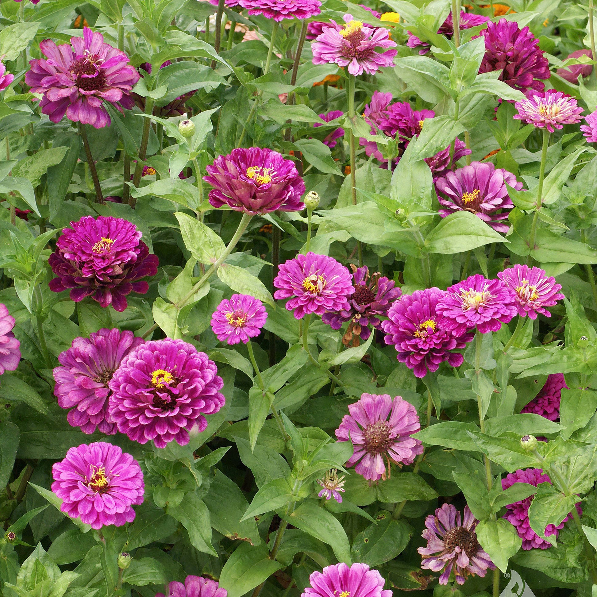 Zinnia 'Purple Prince' is a magnificent half-hardy annual, grown for its truly spectacular and regal blooms. This tall, upright plant produces enormous, fully double, dahlia-like flowers in a stunning and intense shade of rich magenta-purple. A real showstopper in any sunny border, it is also a first-class cut flower with a long vase life and is highly attractive to butterflies and other pollinators.